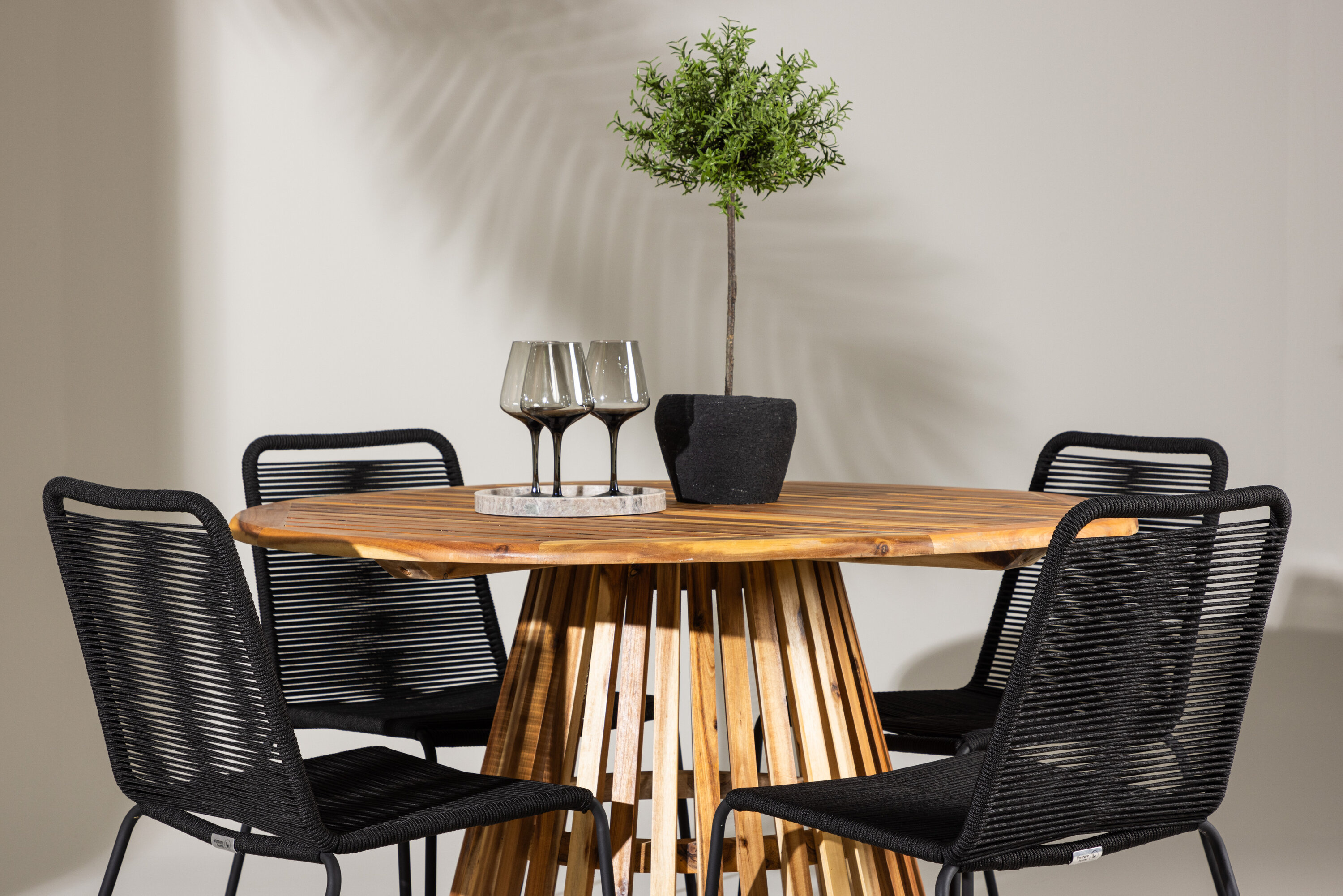 Meie elegantse Lumpuri laua ja stiilsete Lindose toolidega avastage oma väliruumi ülim söögikomplekt. Muljetavaldava, 120 cm läbimõõduga laud Lumpur pakub rohkelt ruumi perekondlikeks õhtusöökideks ja mõnusaks koosviibimiseks lageda taeva all.