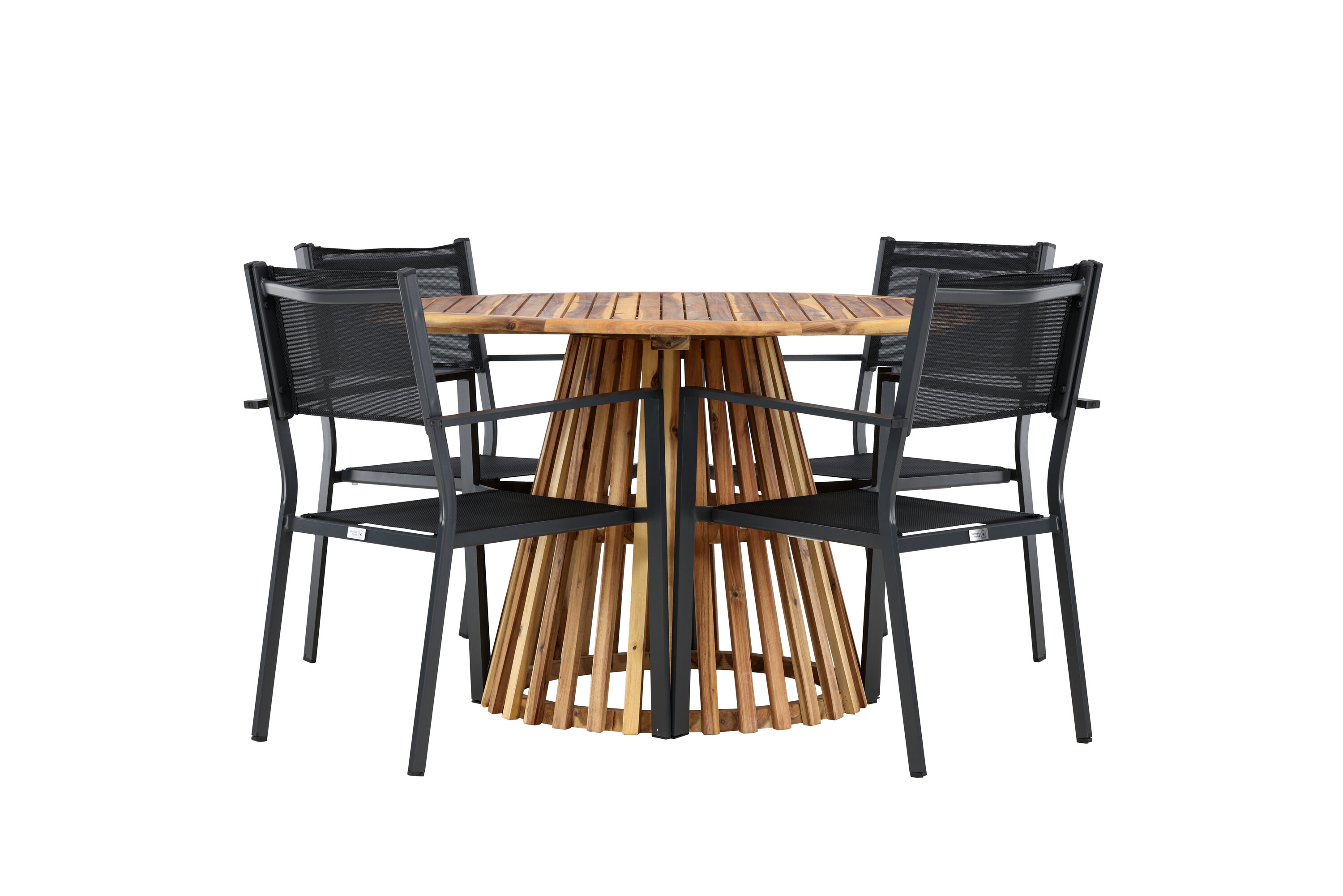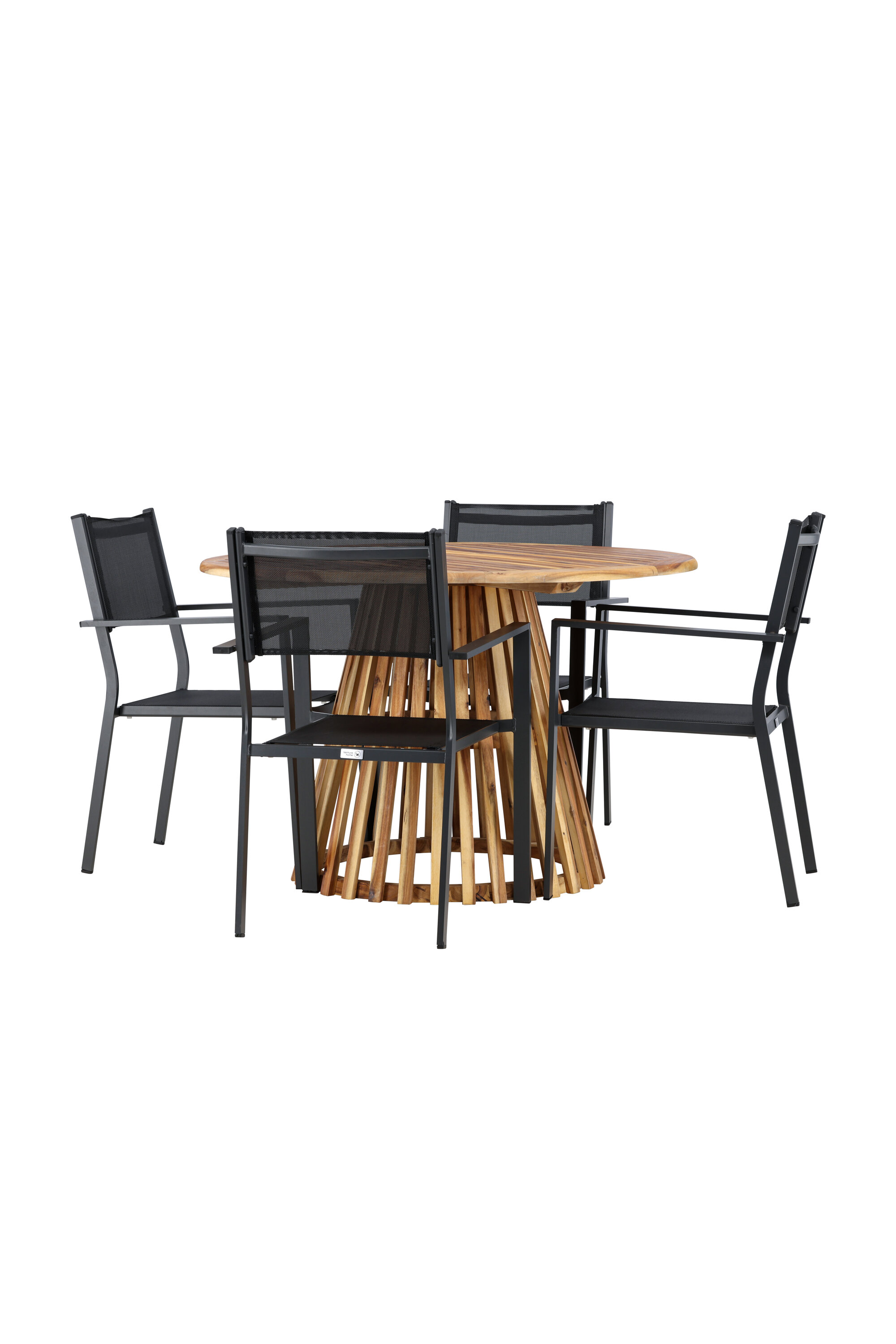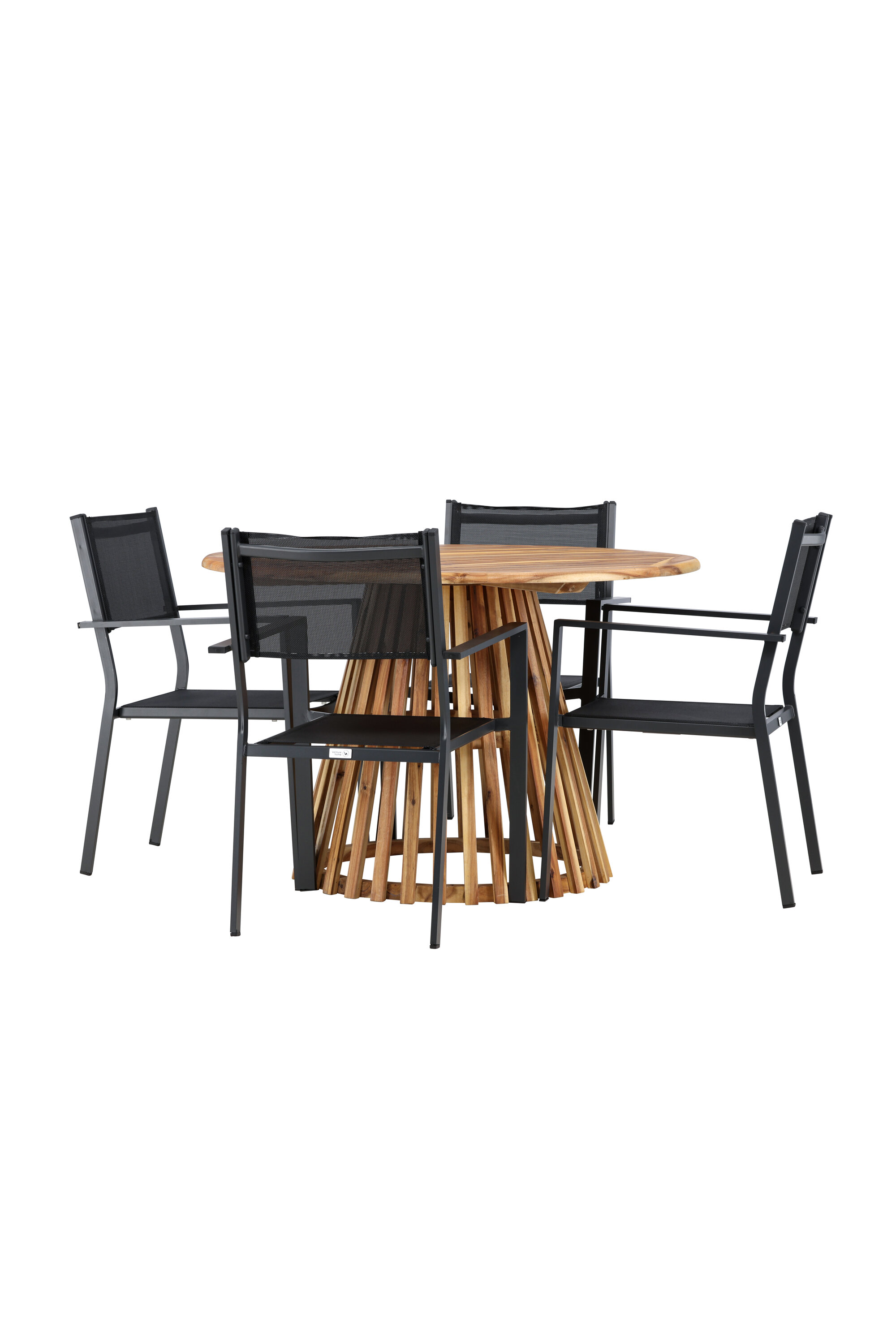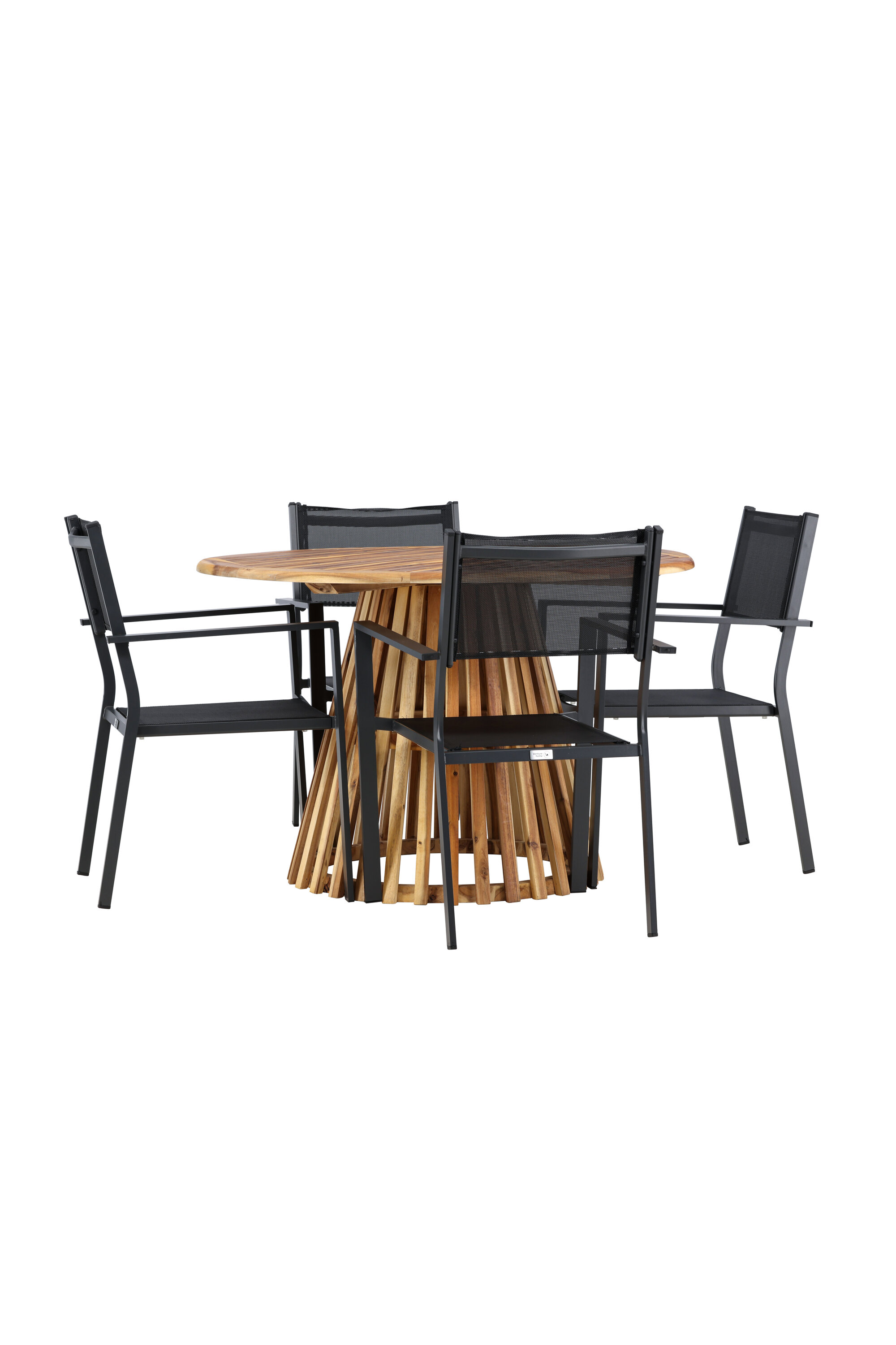 Avastage oma koju ideaalne söögikomplekt Lumpuri laua ja Copacabana toolidega. 120 cm läbimõõduga laud Lumpur pakub rohkelt ruumi perekondlike õhtusöökide ja sõpradega koosviibimiseks. Säästvast akaatsiapuidust valmistatud laud loob teie söögituppa või terrassile loomuliku tunde.