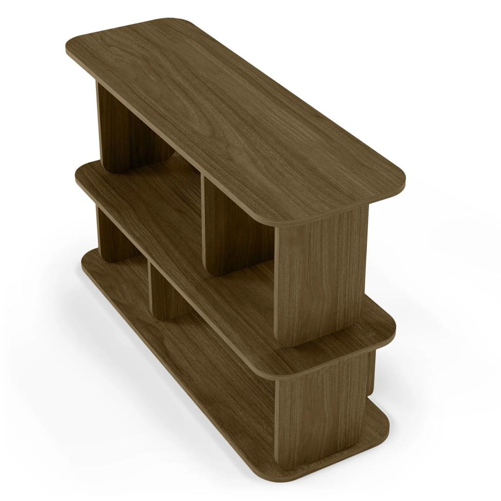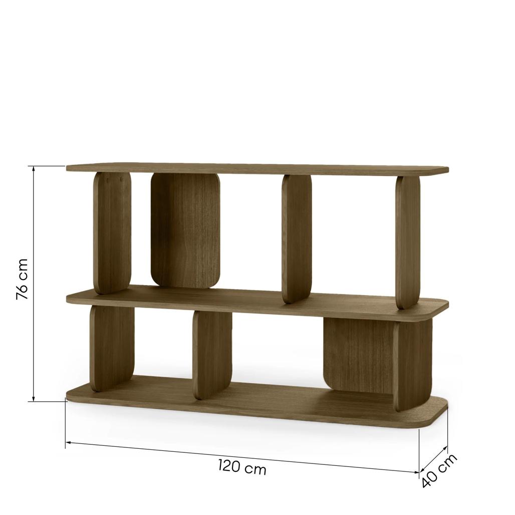 SALA riiul köidab juba esmapilgul. Selle moodne disain põhineb ümaratel joontel ja geomeetrilisel harmoonial köites tähelepanu tasakaalustatud kompositsiooni ja esteetilise atraktiivsusega. Kolmetasandiline struktuur millel on erinevates mustrites paigutatud vertikaalsed vaheseinad mitte ainult ei loo intrigeerivat visuaalset efekti vaid tagab ka stabiilsuse ja praktilise funktsionaalsuse. SALA on loodud neile kes hindavad head disaini ja organiseeritud ruume kaasaegses stiilis. Iga riiul pakub ruumi teie lemmikraamatute sisustuse või igapäevaste oluliste asjade – puhtalt ja stiilselt – esitlemiseks. See sobib ideaalselt elutuppa kodukontorisse või magamistuppa lisades teie interjöörile elegantse aktsendi ja visuaalse kerguse. Omadused: Villa Walnut viimistlus Kolmetasandiline struktuur praktiliste vaheseintega Lihtne geomeetriline vorm ümarate servadega Seinale kinnitatav disain Mõõtmed: Kõrgus: 76 cm Laius: 120 cm Sügavus: 40 cm