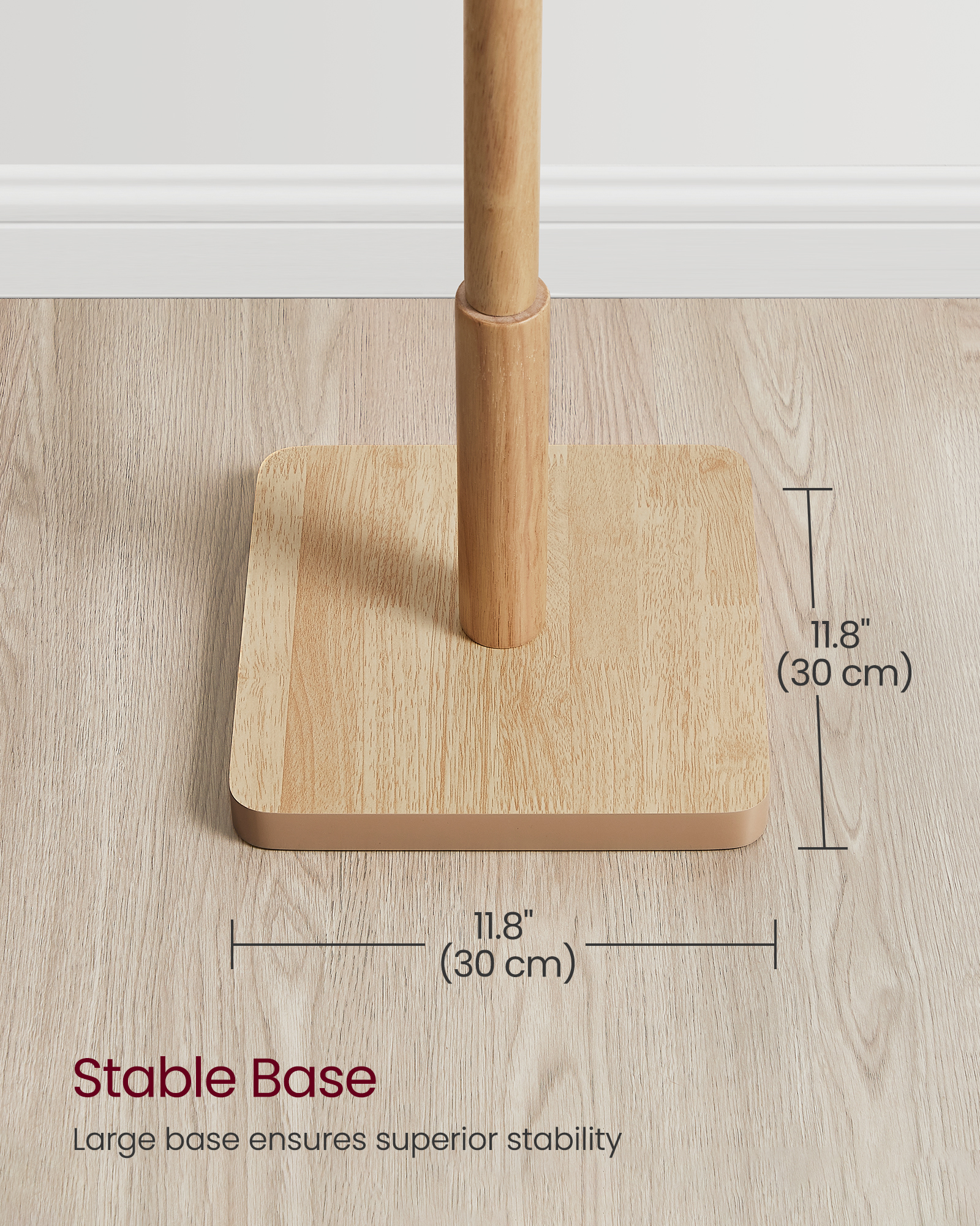 Spetsifikatsioonid: Värv: Cappuccino beež Materjal: Kummipuust konksud ja põhipost, MDF (keskmise tihedusega puitkiudplaat) Alus Toote mõõdud: 11,8″S x 11,8″L x 68,9″K (30 x 30 x 175 cm) Toote kaal: 8,6 naela (3,9 kg) Maksimaalne staatiline kandevõime: 53 naela (24 kg) Pakisisu: 1 x riidenagi 1 x tarvikute komplekt 1 x juhend
