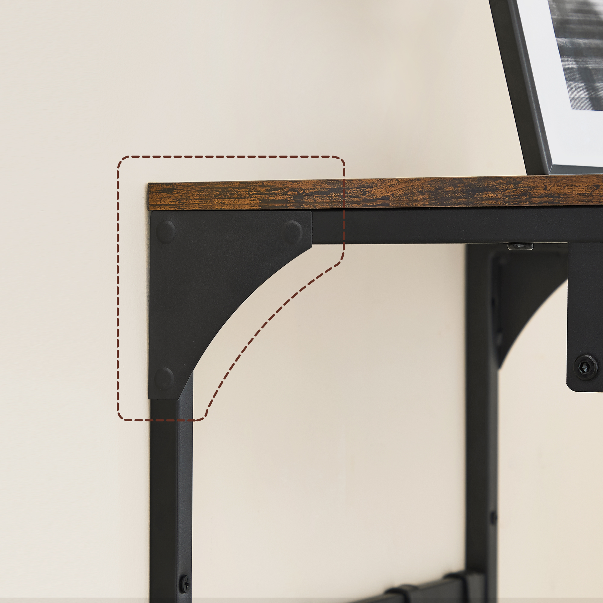 Spetsifikatsioonid: Värvus: Rustikaalne pruun, must Materjal: Puitlaastplaat, teras Toote mõõdud: 40 x 24 x 24 cm (15,7”P x 9,4”L x 9,4”K) Toote kaal: 1,6 kg (3,5 naela) Ülemise riiuli maksimaalne staatiline koormus: 15,9 kg (35 naela) Iga paksu konksu maksimaalne staatiline koormus: 2,3 kg (5,1 naela) Varda maksimaalne staatiline koormus: 9,1 kg (20,1 naela) Pakisisu: 1 x seinale kinnitatav riidenagi 1 x kokkupanekukott 1 x juhend