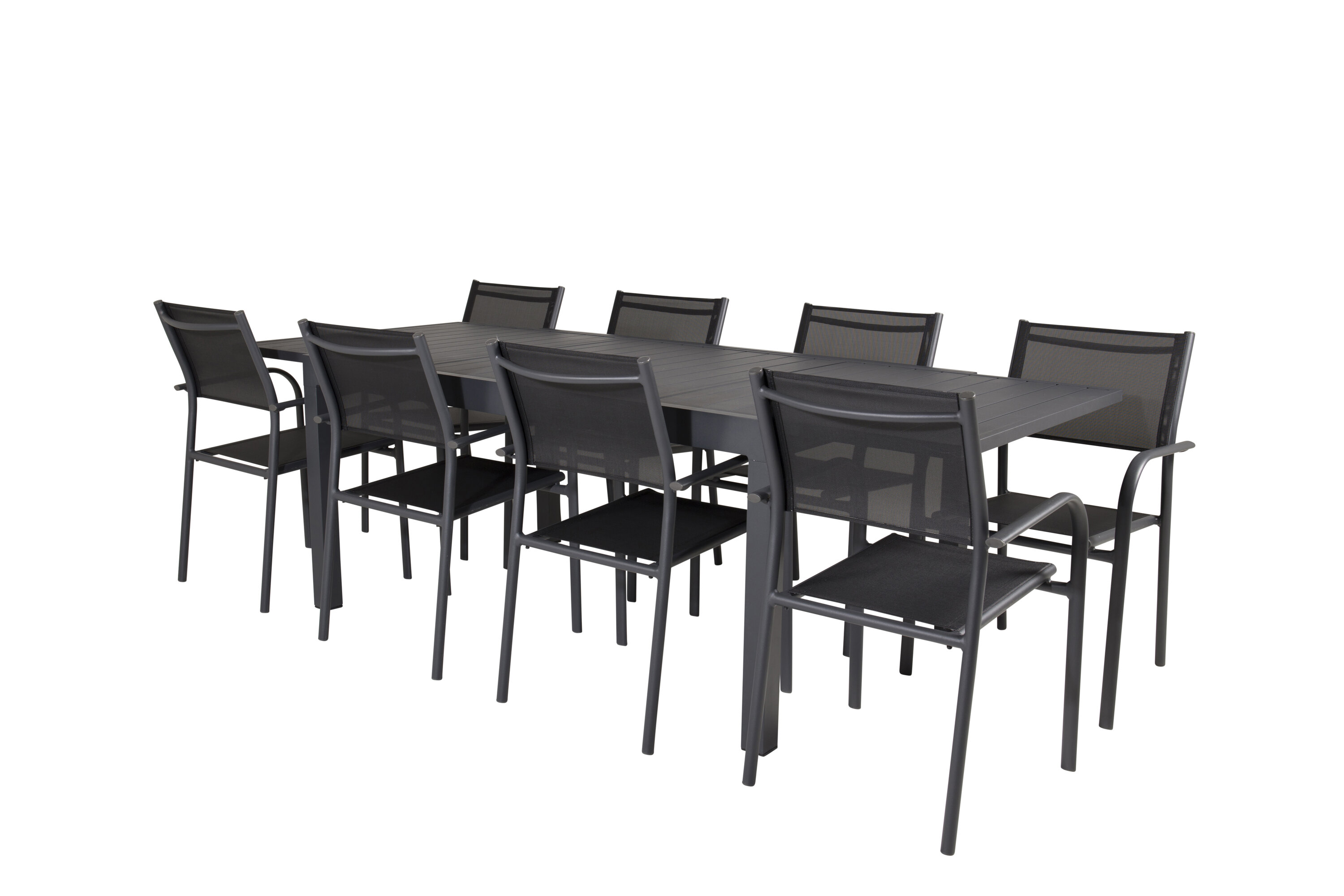 Toidugrupp läbivalt must. Siin on meie pikendatav söögilaud Marbella kombineeritud meie moodsate Santorini toidutoolidega. Igatsen meiega õuehooaega!