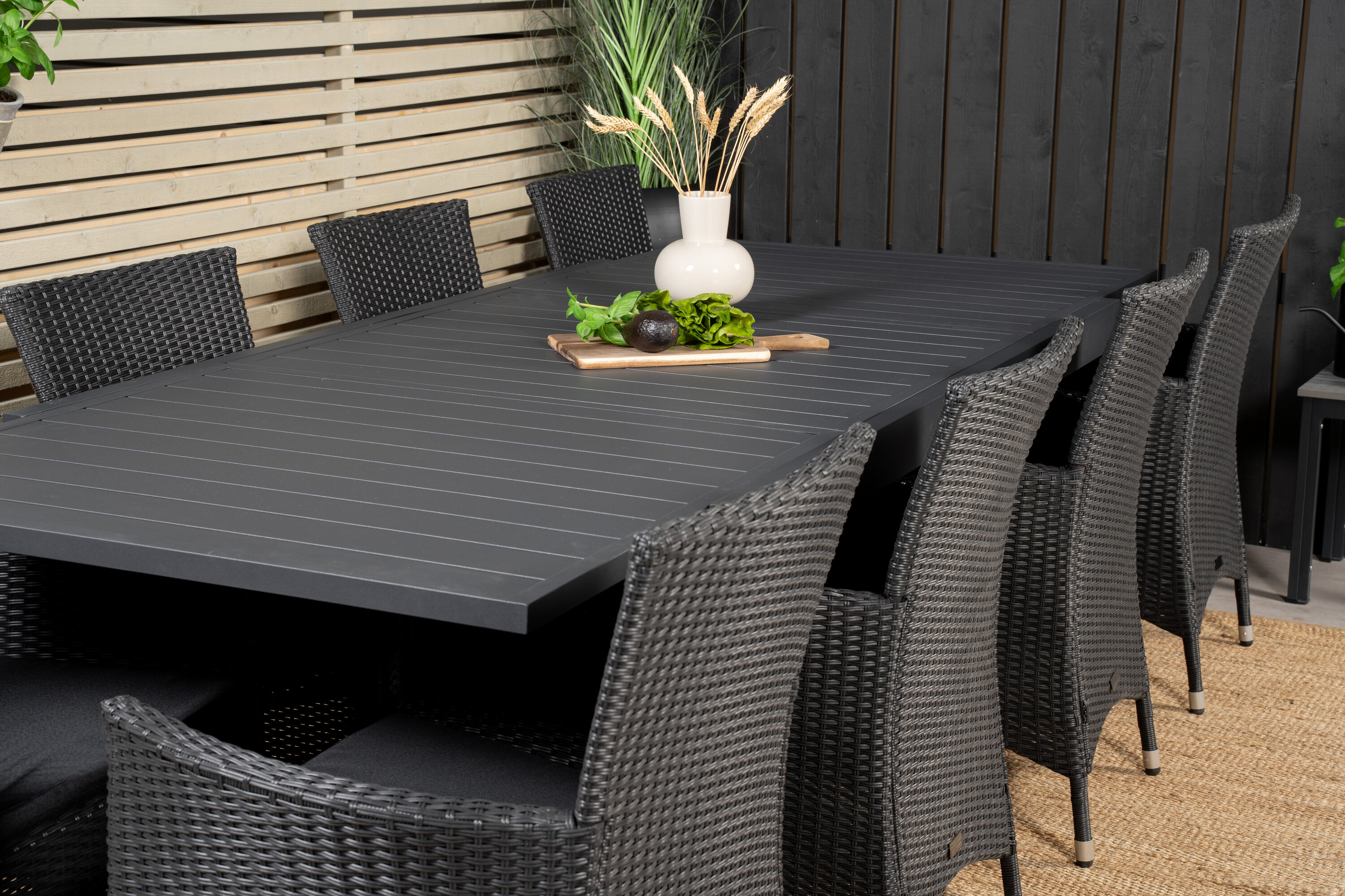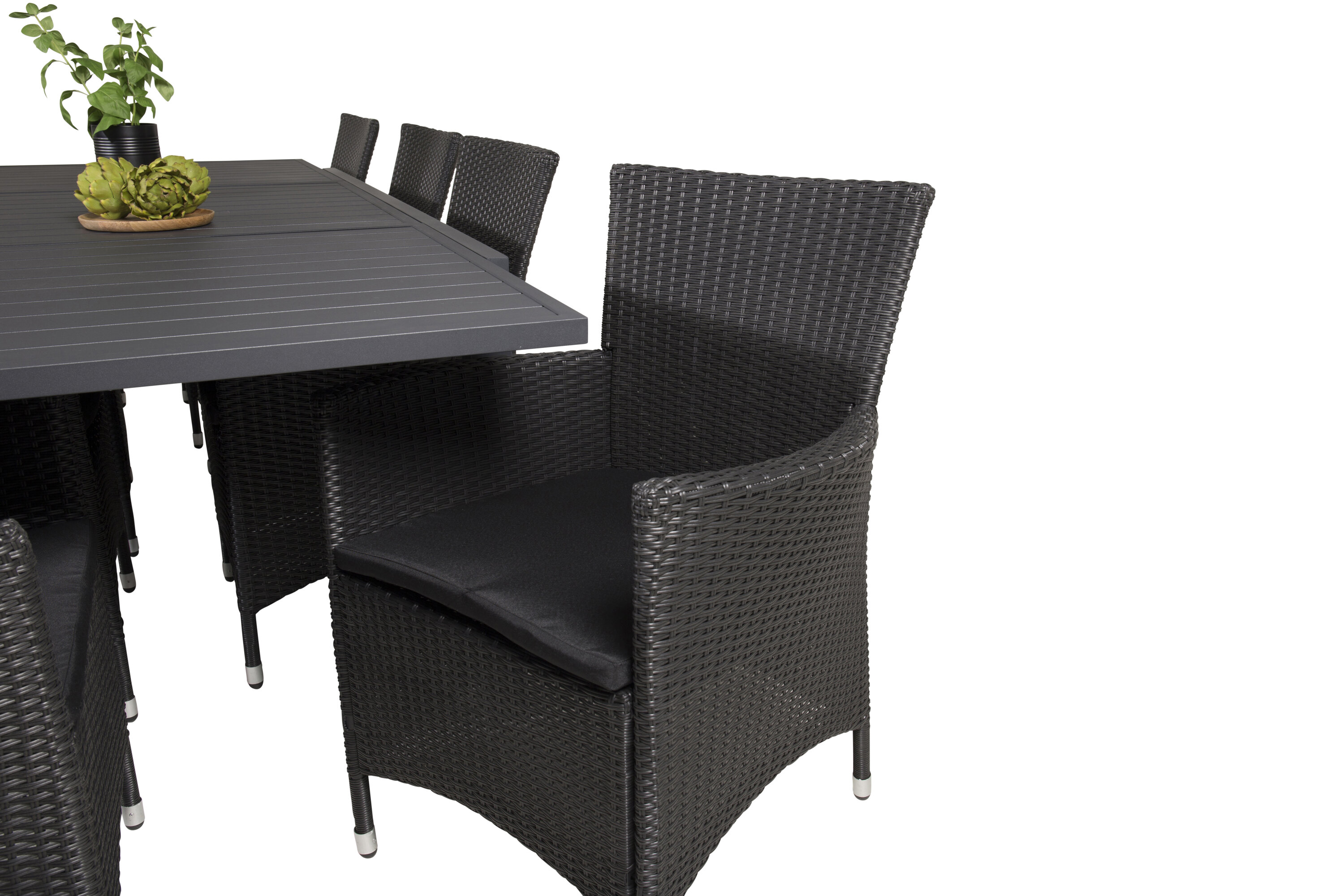 Meie esinduslik toidugrupp mahutab ruumi kõigile lähedastele! Klassikalises stiilis söögilaud täiuslikus kombinatsioonis meie mugavate söögitoolidega. Las see Pampig Designi toidugrupp kaunistab teie terrassi ja pikendab selle suve nauditavat õhtusööki.