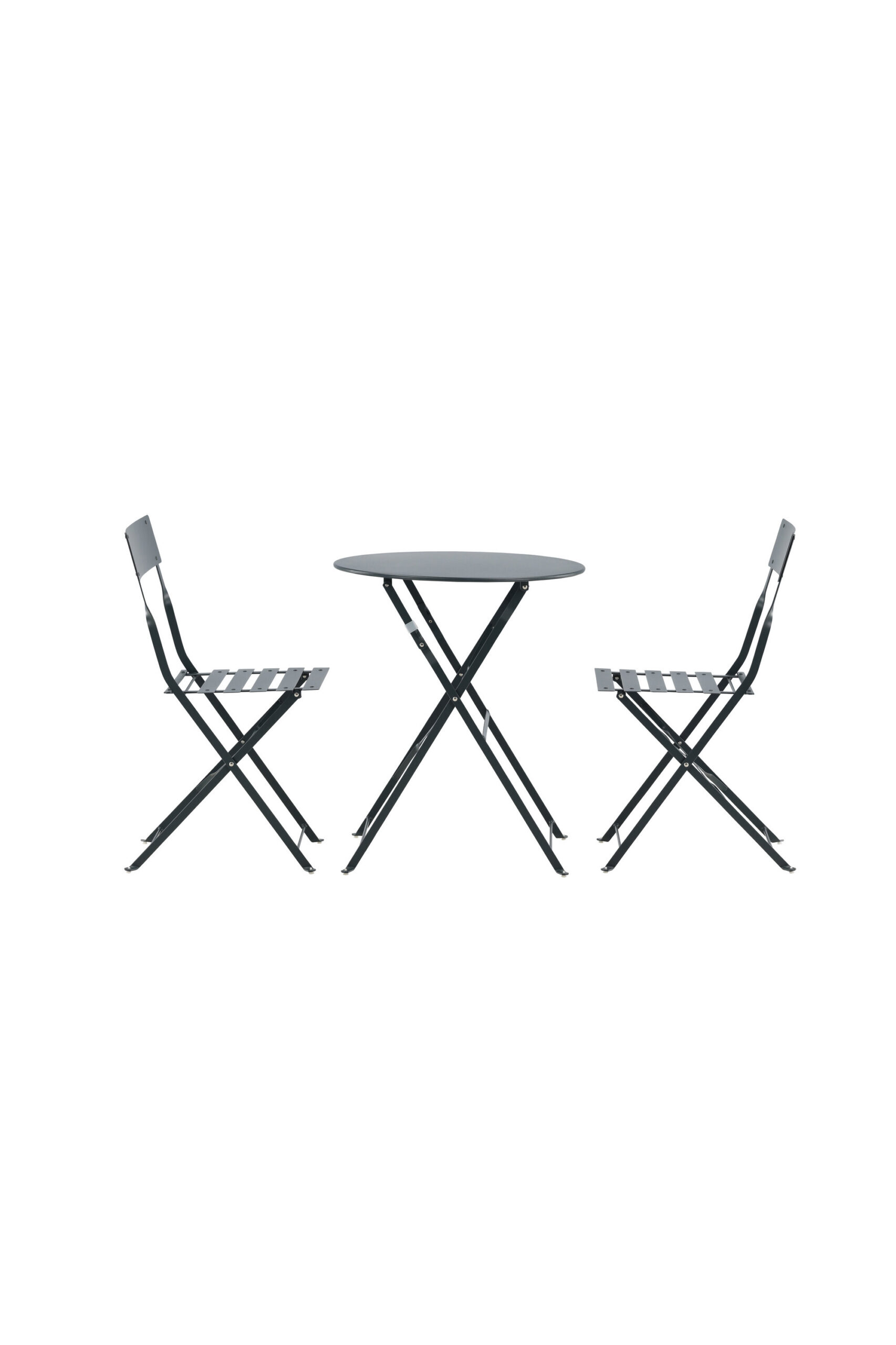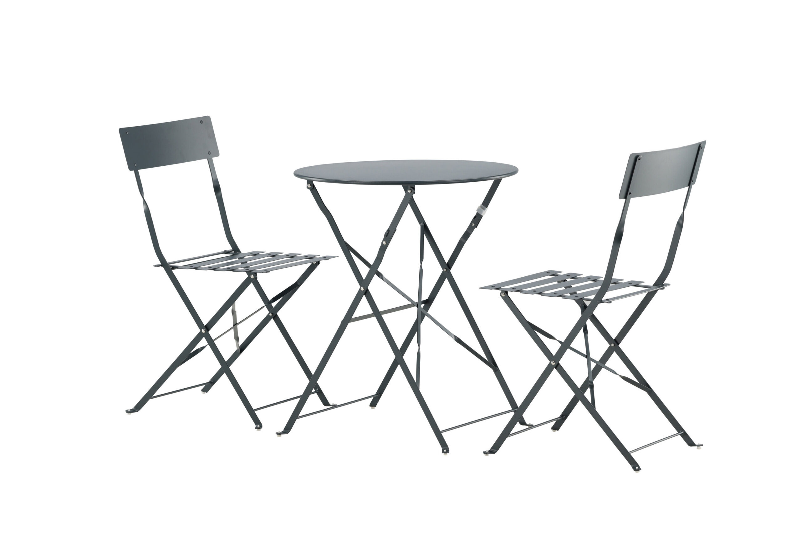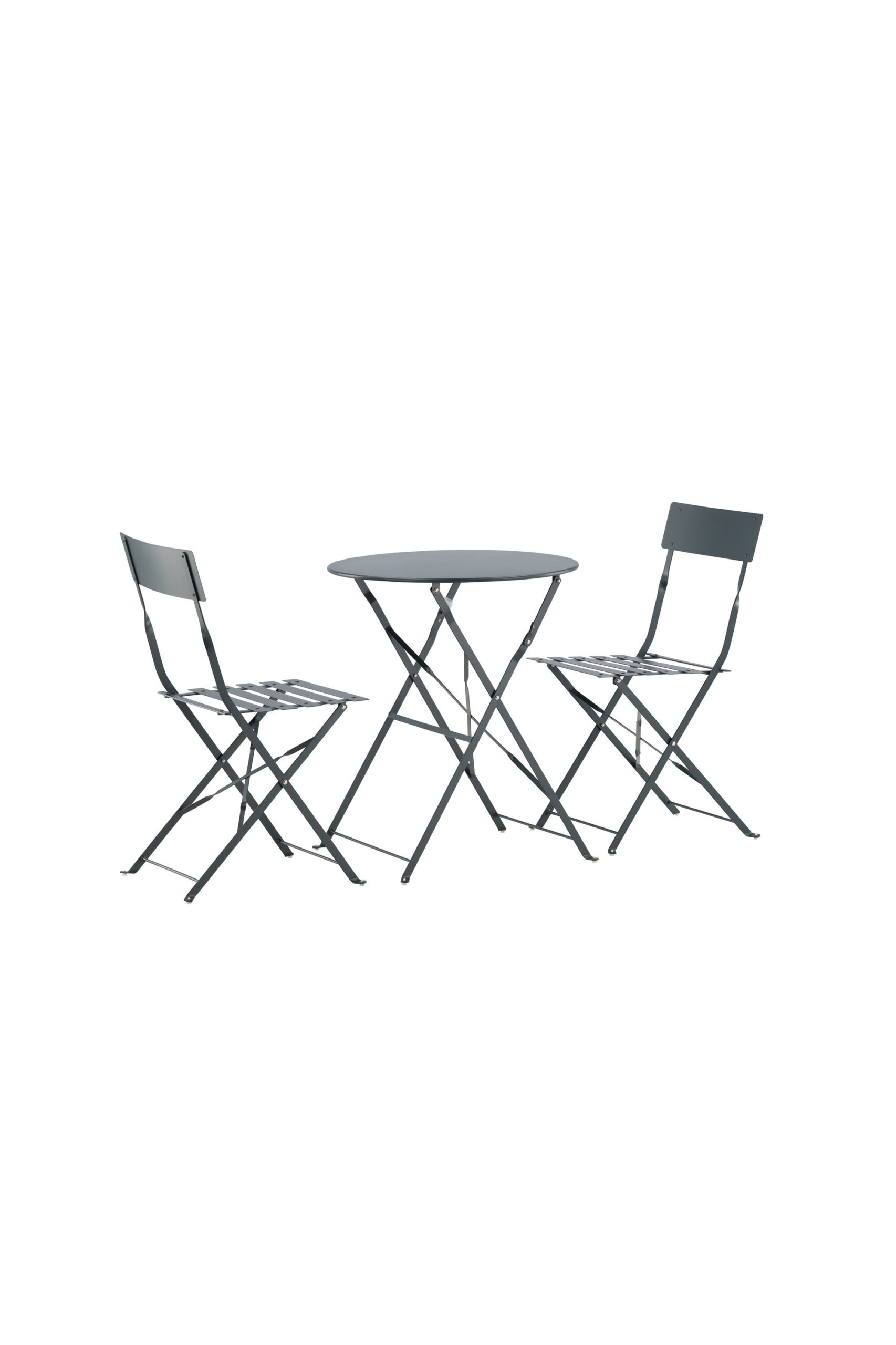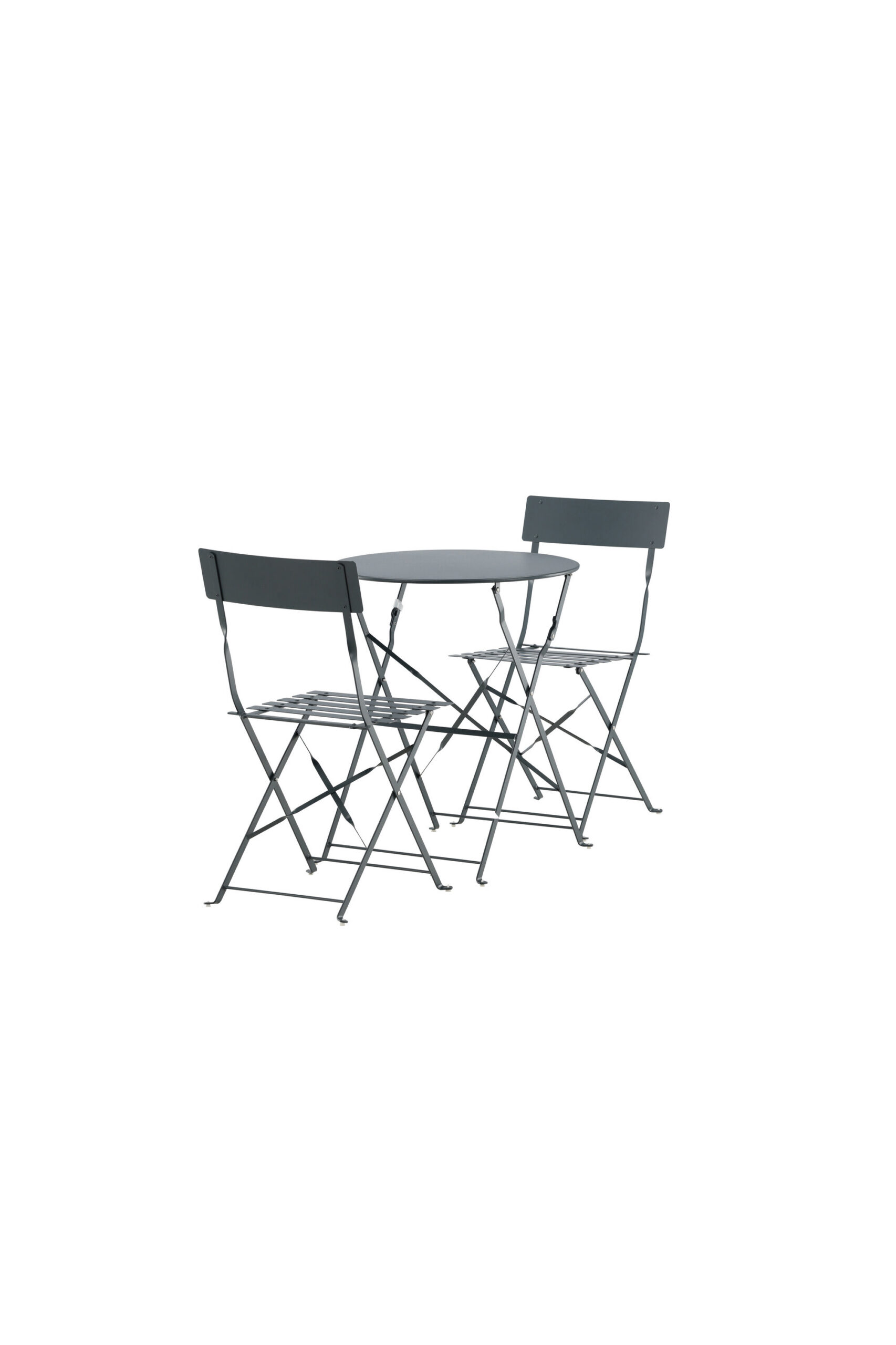 Korralik ja sile bistroosett tumehallis, mida saab kergesti kokku voltida. Nii stiilne kui ka praktiline, et mahuksid muude asjade külge, kui mööblit ei kasutata. Joo tass kohvi ja naudi siin kevadest sügiseni!