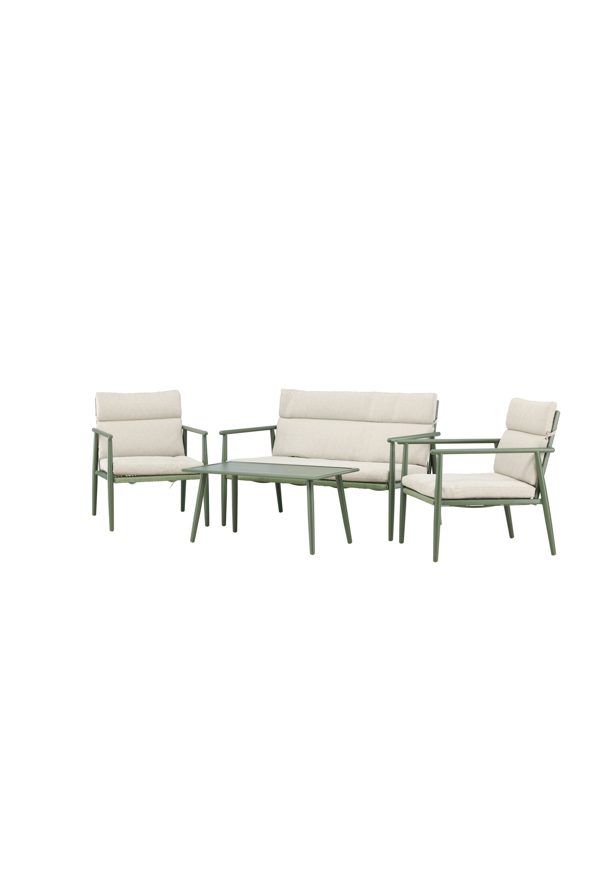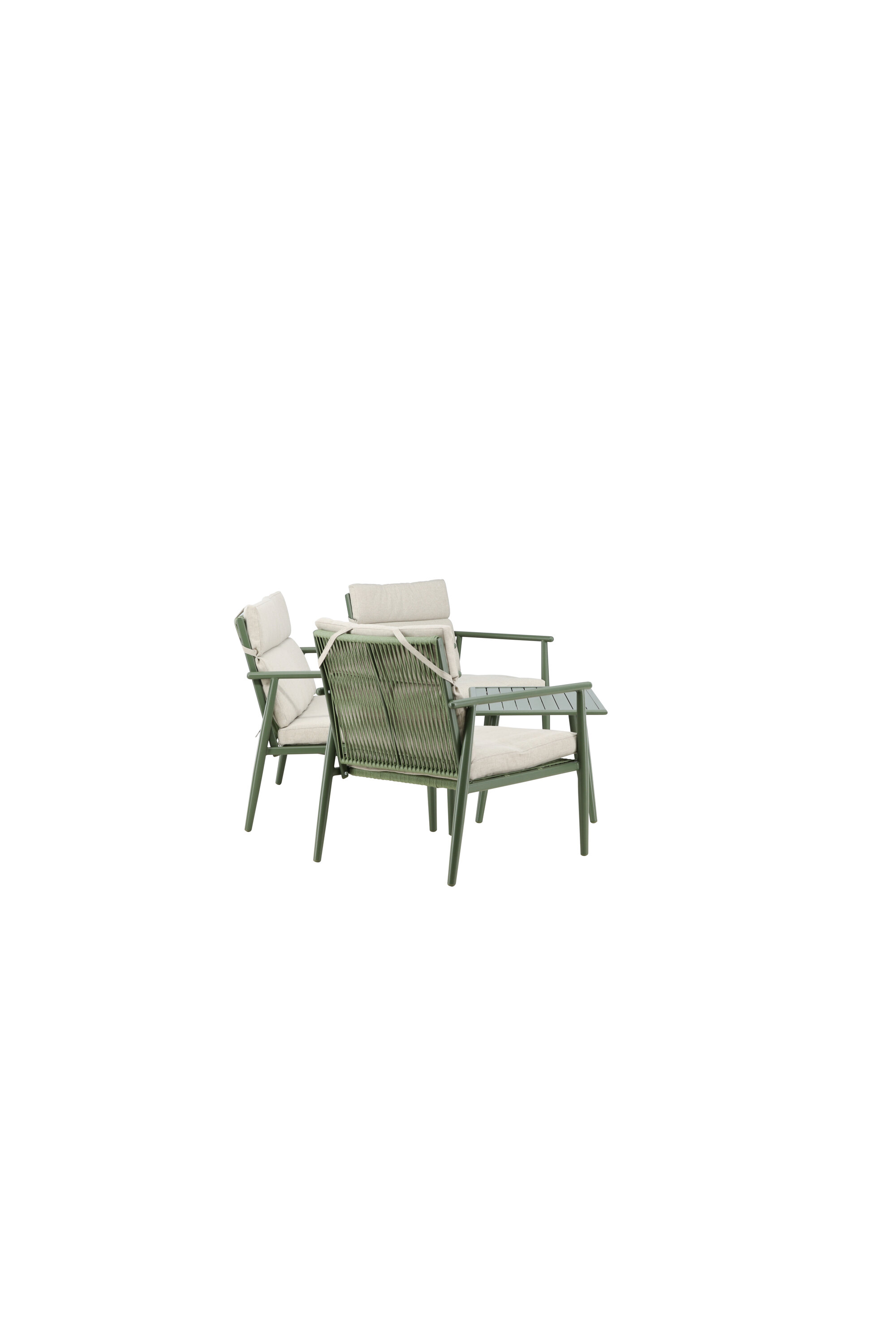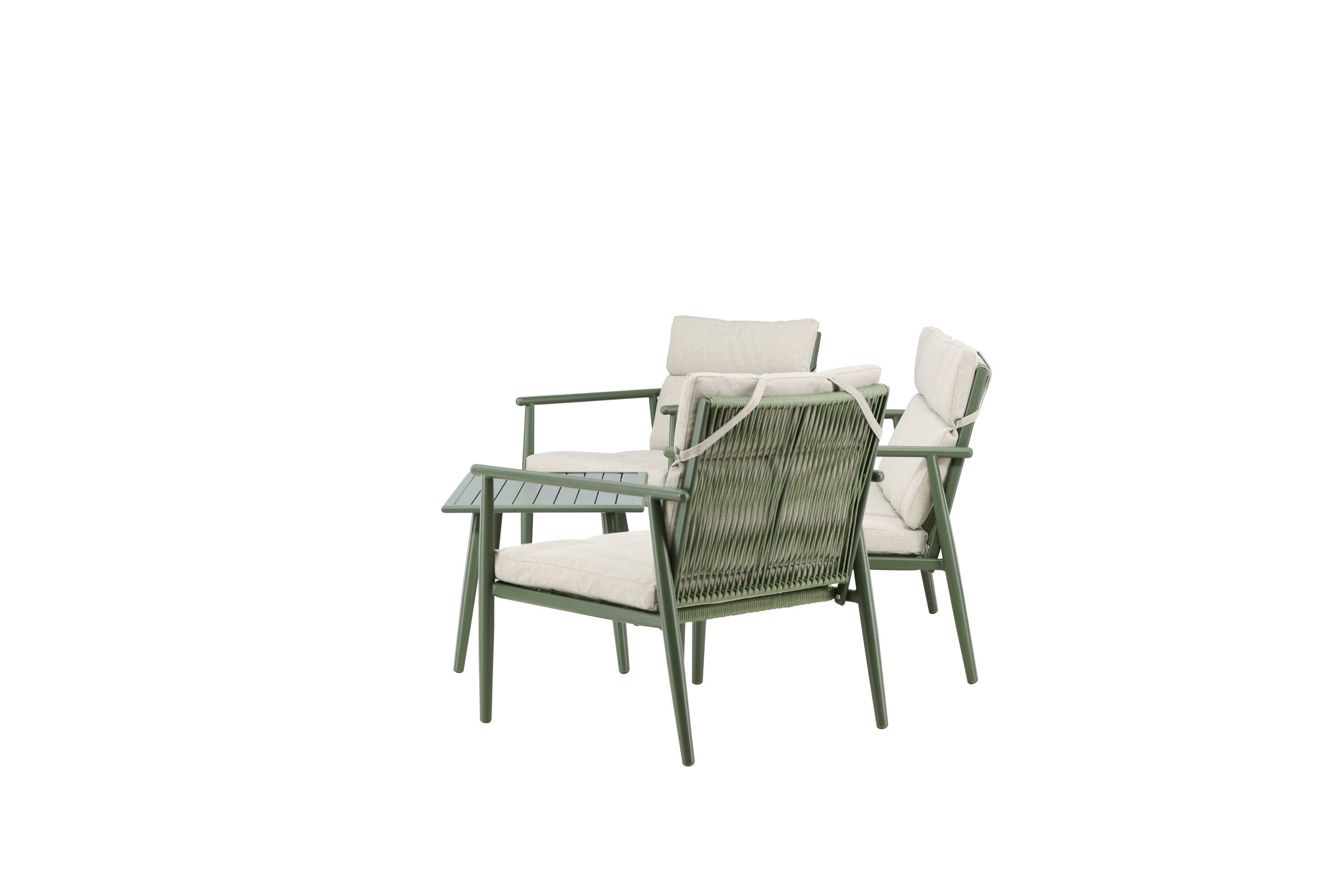 Polüesterkangast beežid padjad annavad rohelisele raamile pehme kontrasti ja täiustavad elegantset muljet. Mazzaro sobib ühtviisi hästi nii lõõgastavaks kohvipausiks kui ka pidulikeks sündmusteks suveõhtutel. See kompaktne komplekt sulandub hõlpsalt teie väliskeskkonda ja ühendab disaini funktsionaalsusega. Looge Mazzaro diivanikomplektiga kutsuv atmosfäär – kus elegants ja mugavus kohtuvad täiuslikus tasakaalus.