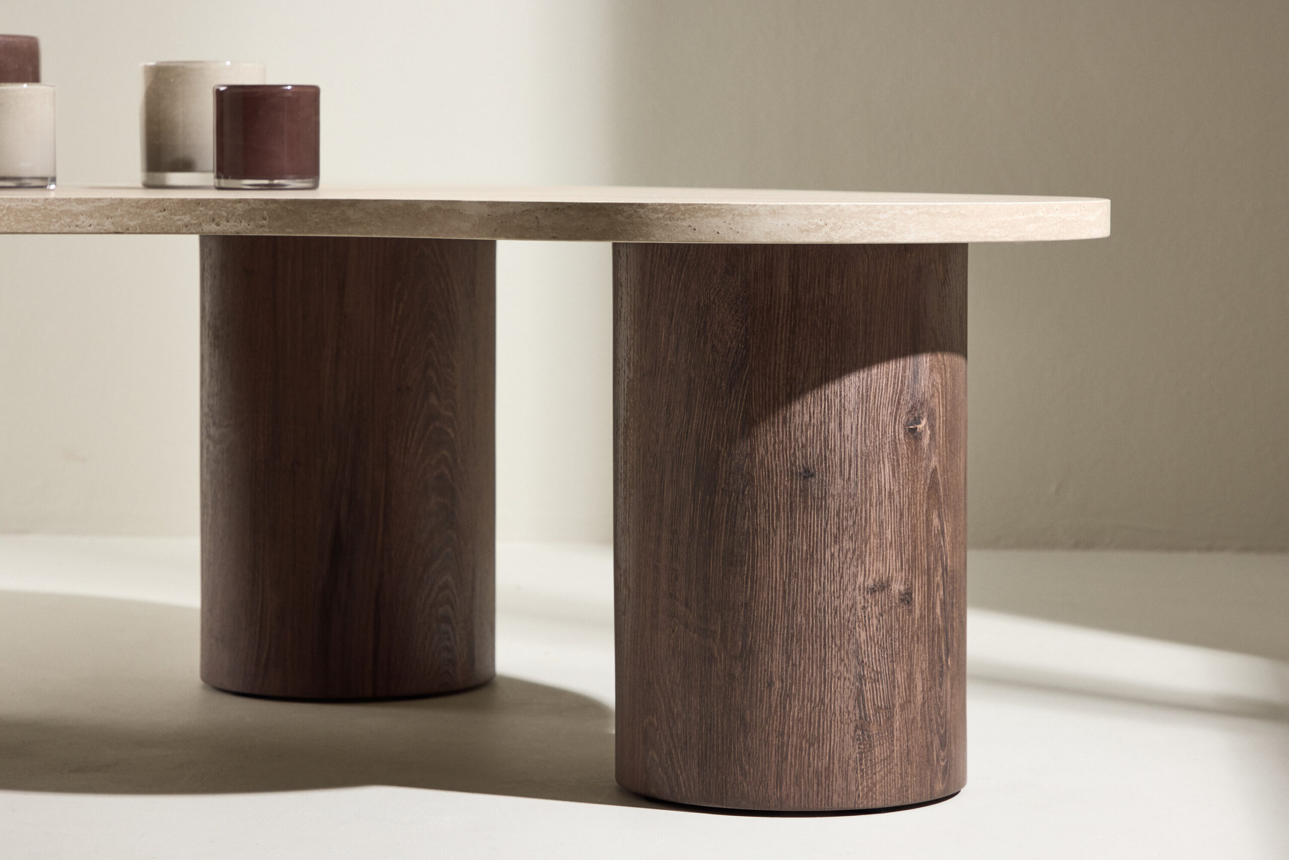 Ovaalne kuju ja pehmed jooned loovad sooja ja kutsuva esteetika, samas kui laua suur suurus pakub palju ruumi igapäevaste asjade jaoks – alates kohvist ja ajakirjadest kuni dekoratiivsete aktsentideni.