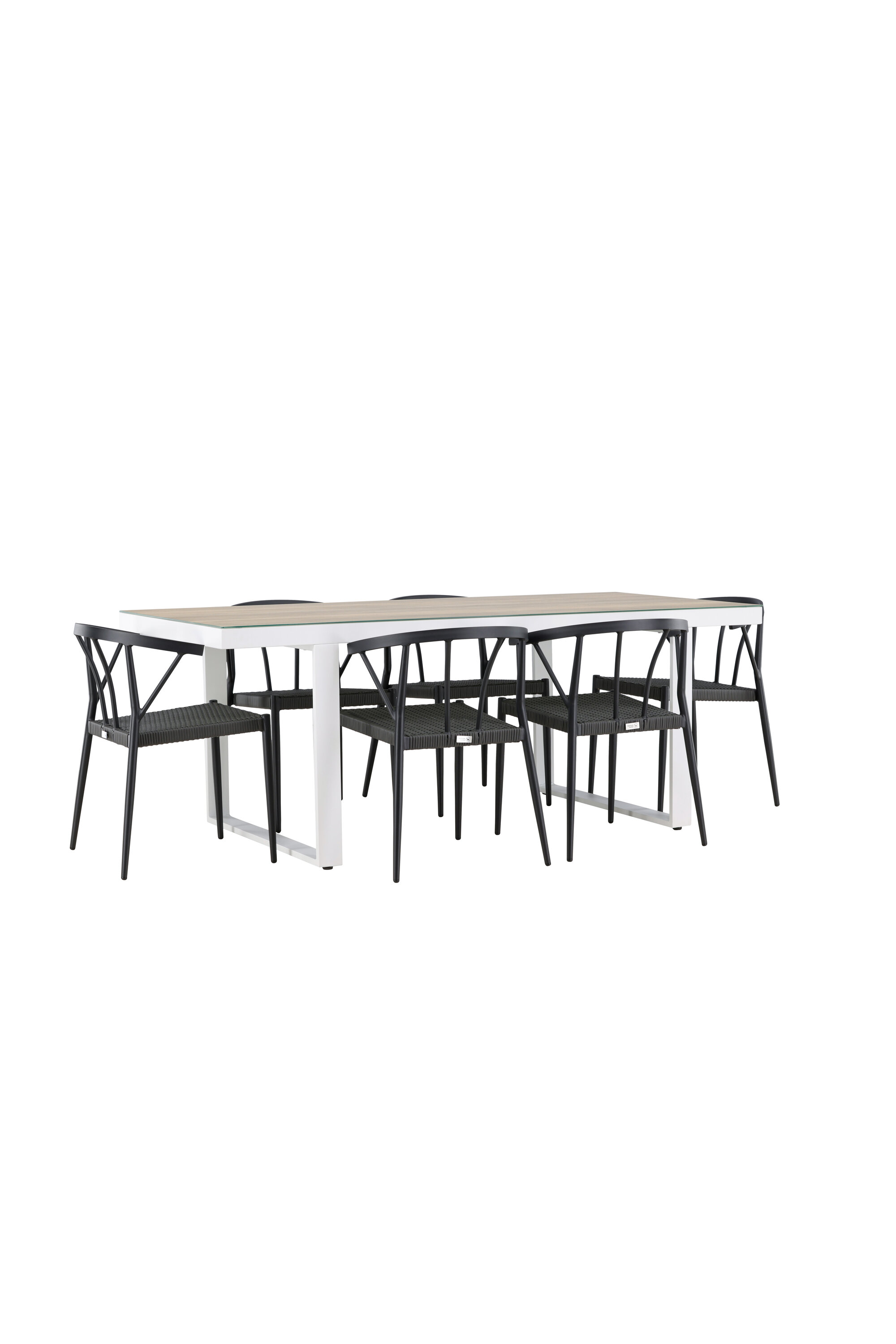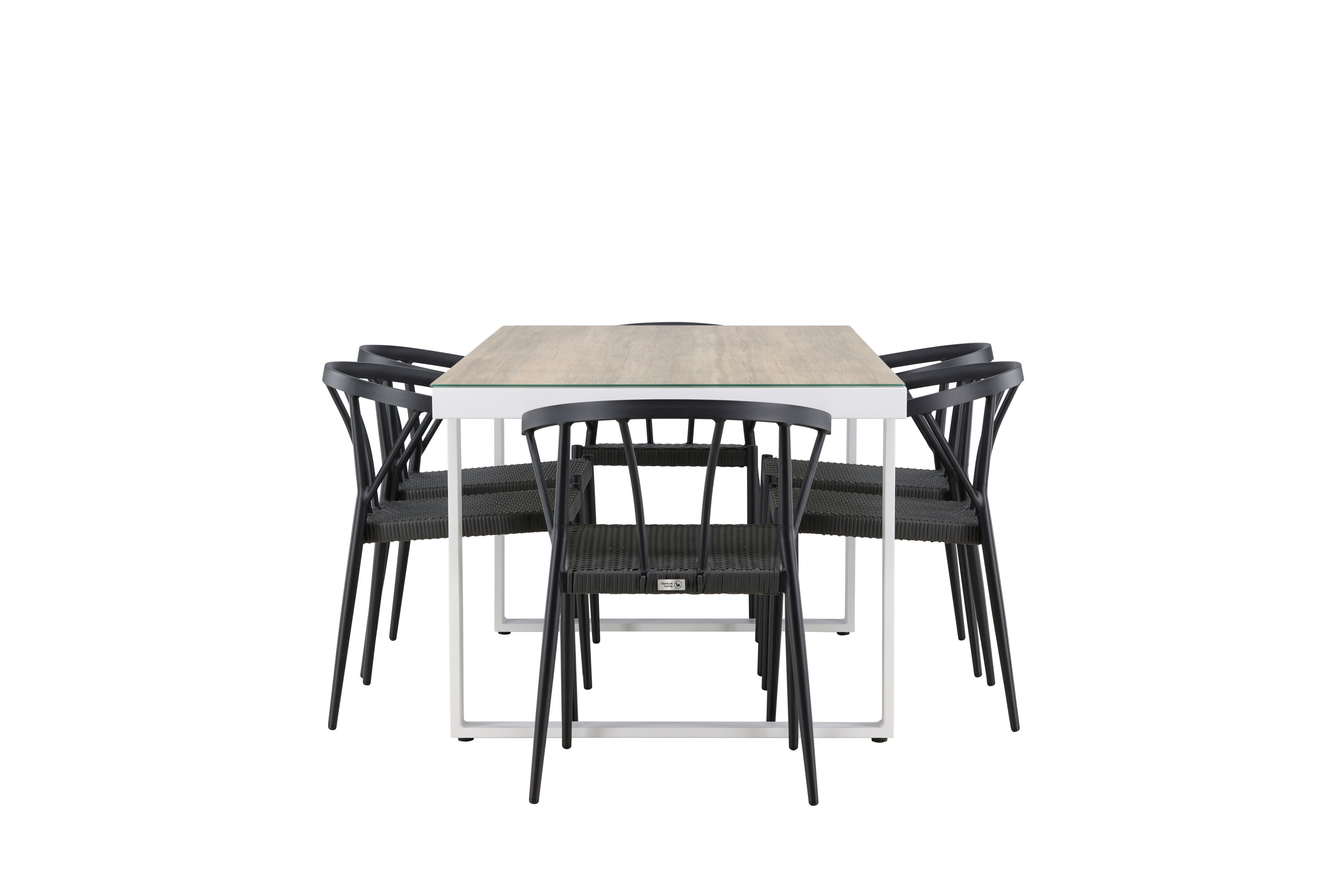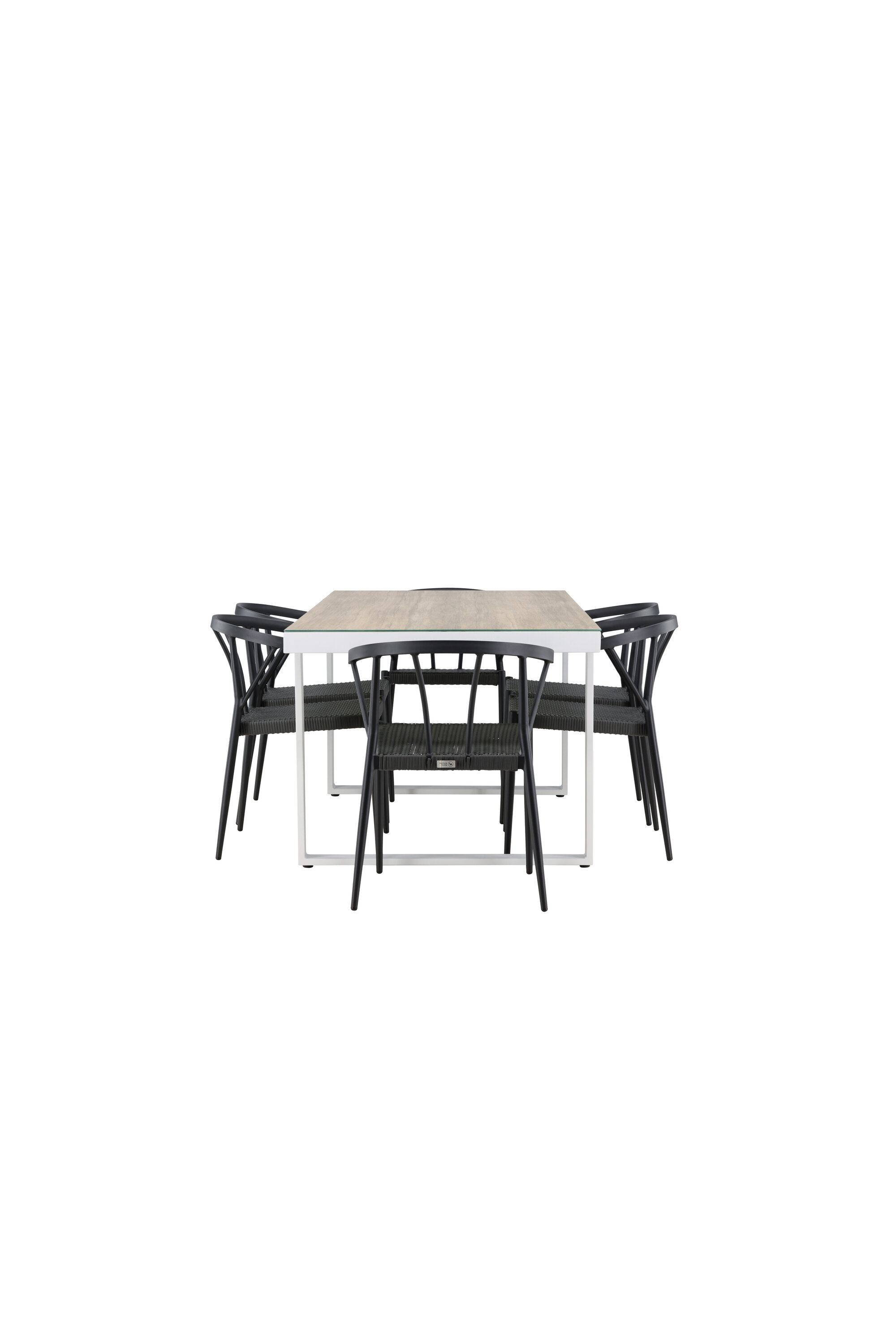 Avastage moodsa elegantsi ja ajatu lihtsuse täiuslikku kombinatsiooni meie söögikomplektiga, mis koosneb kuuest Stina toolist ja elegantsest Merlo lauast. See muljetavaldav ansambel on parim valik stiilse atmosfääri loomiseks koosviibimisteks sõprade ja perega.