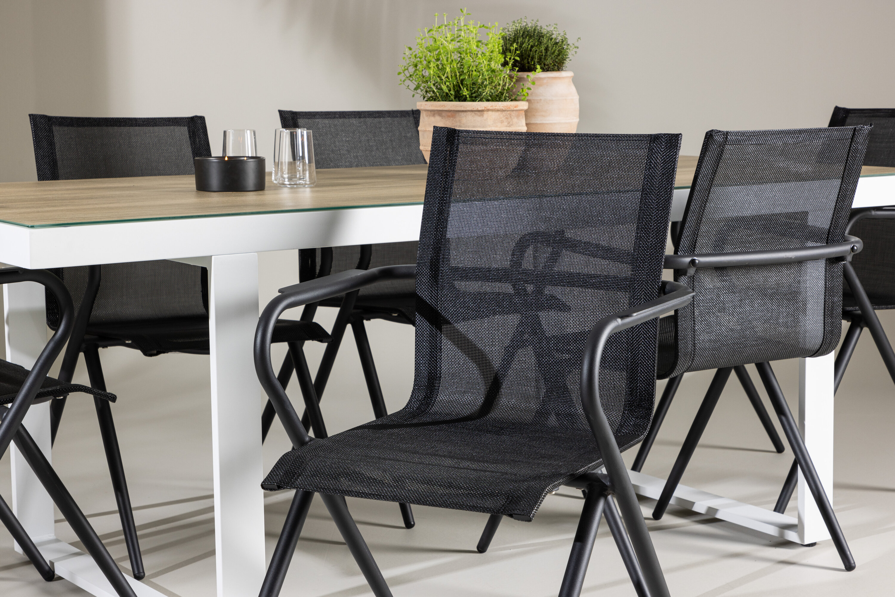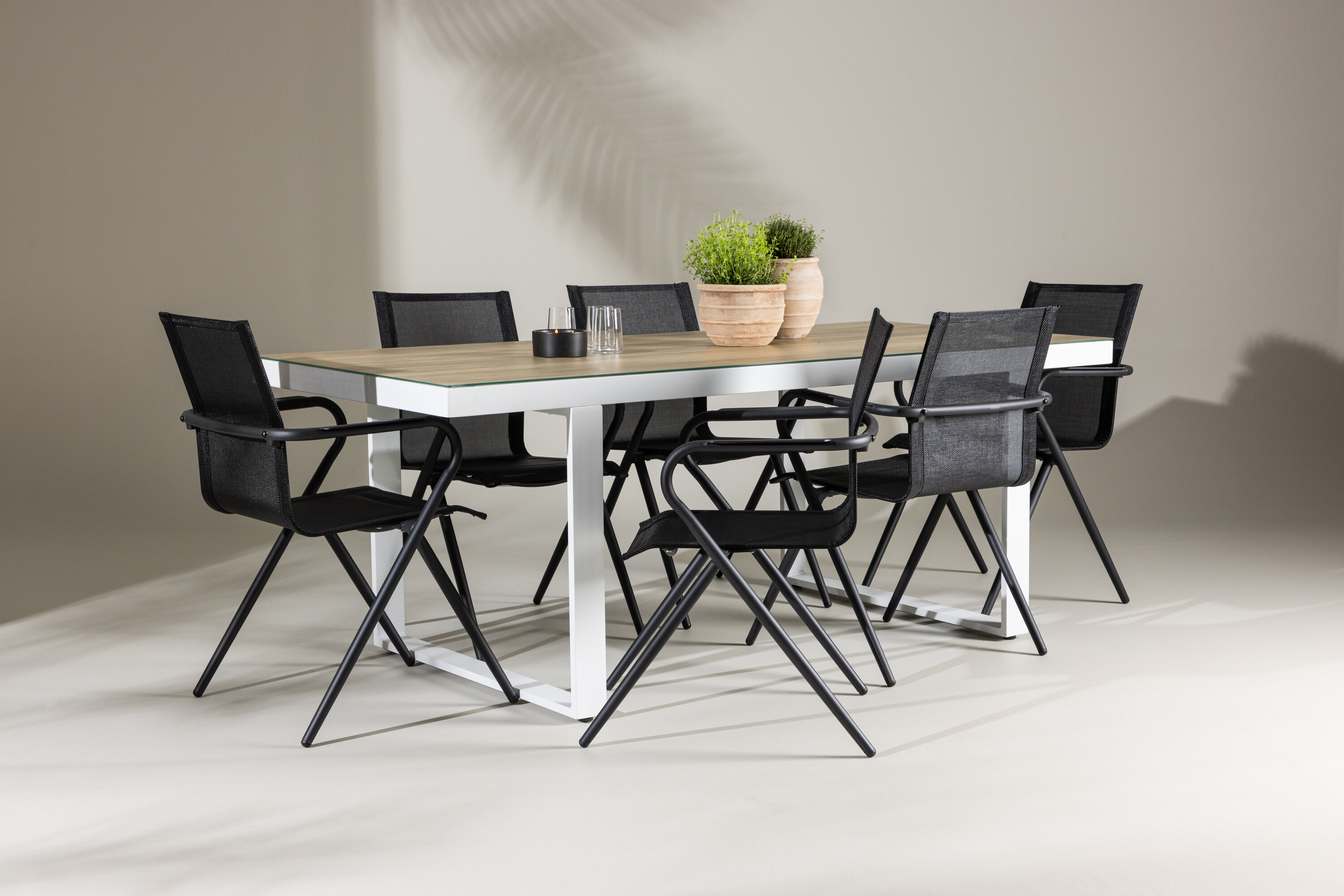 Olgu tegemist juhusliku koosviibimise või piduliku õhtusöögiga, Alina ja Merlo söögikomplekt täiustab teie väliskeskkonda oma sooja õhkkonna ja ajatu elegantsiga. Looge meeldejäävaid koosolemise hetki ja nautige stiilset atmosfääri, mida see söögikomplekt pakub.