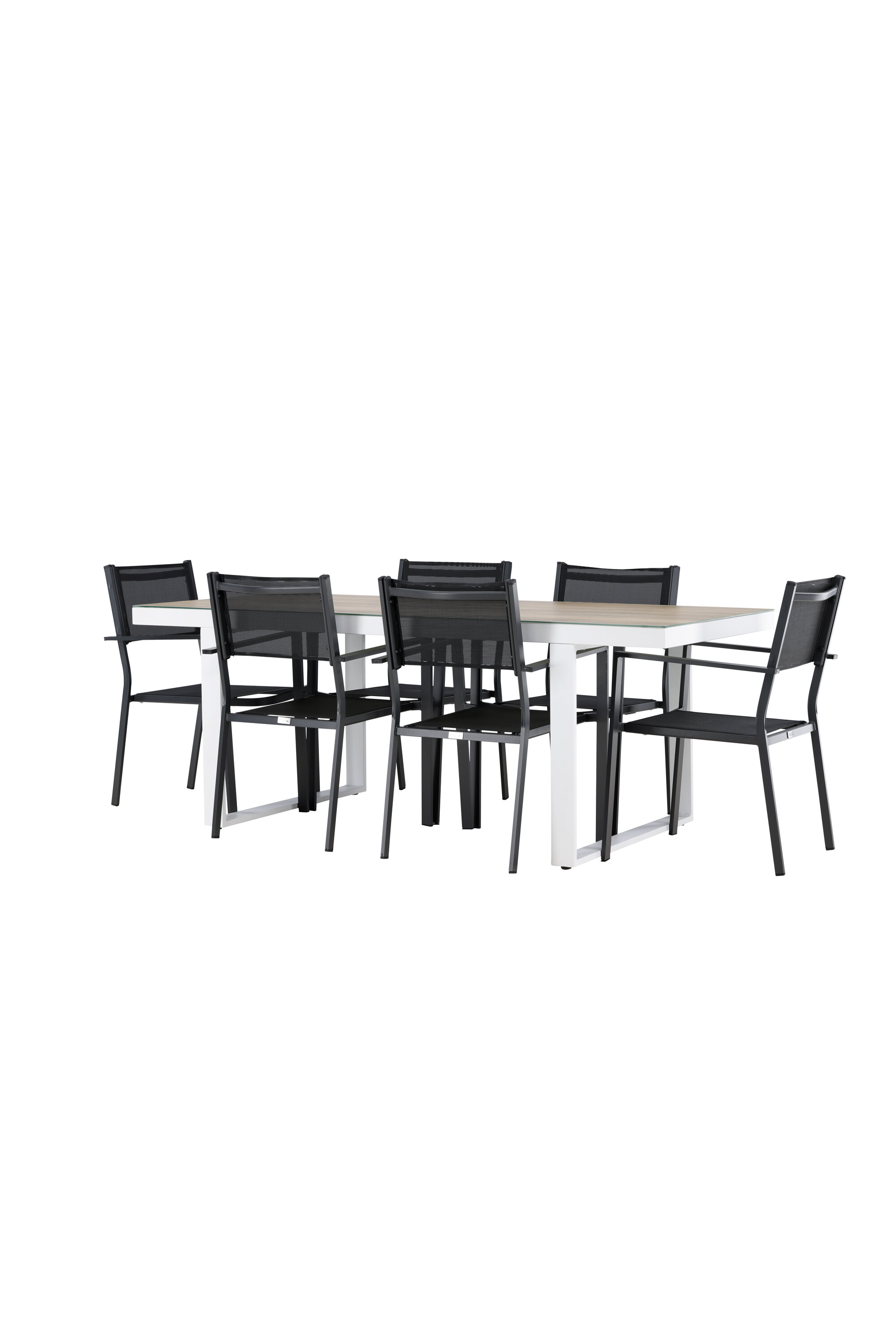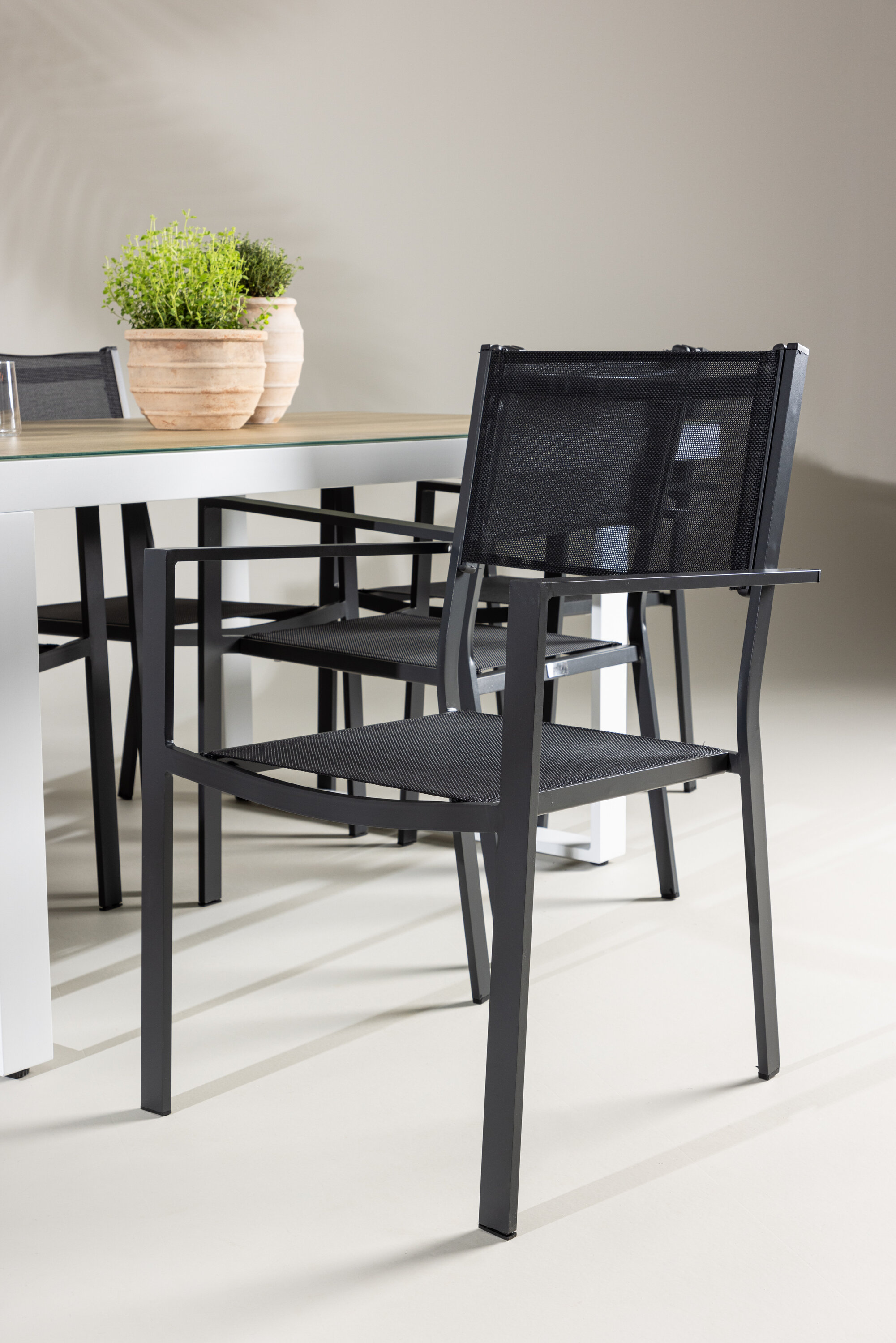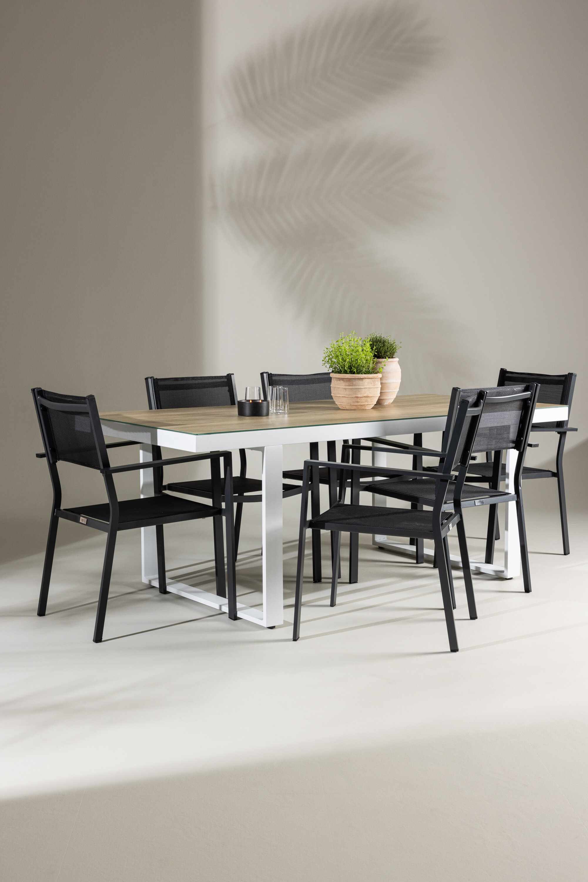 Avastage meie elegantse Merlo laua ja stiilsete Copacabana toolidega täiuslik söögikomplekt oma väliruumi jaoks. Kaasaegse välimuse ja praktilise disainiga komplekt on suurepärane täiendus teie terrassile või aeda.