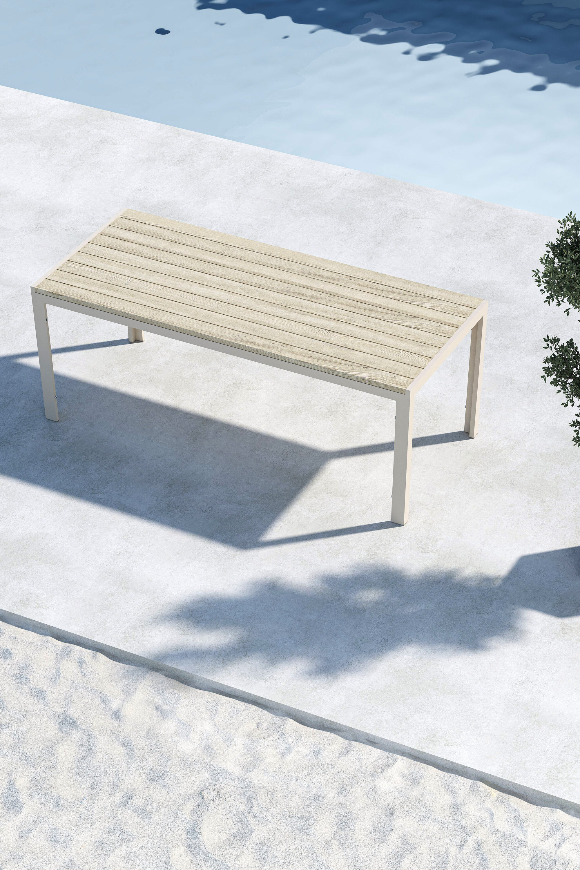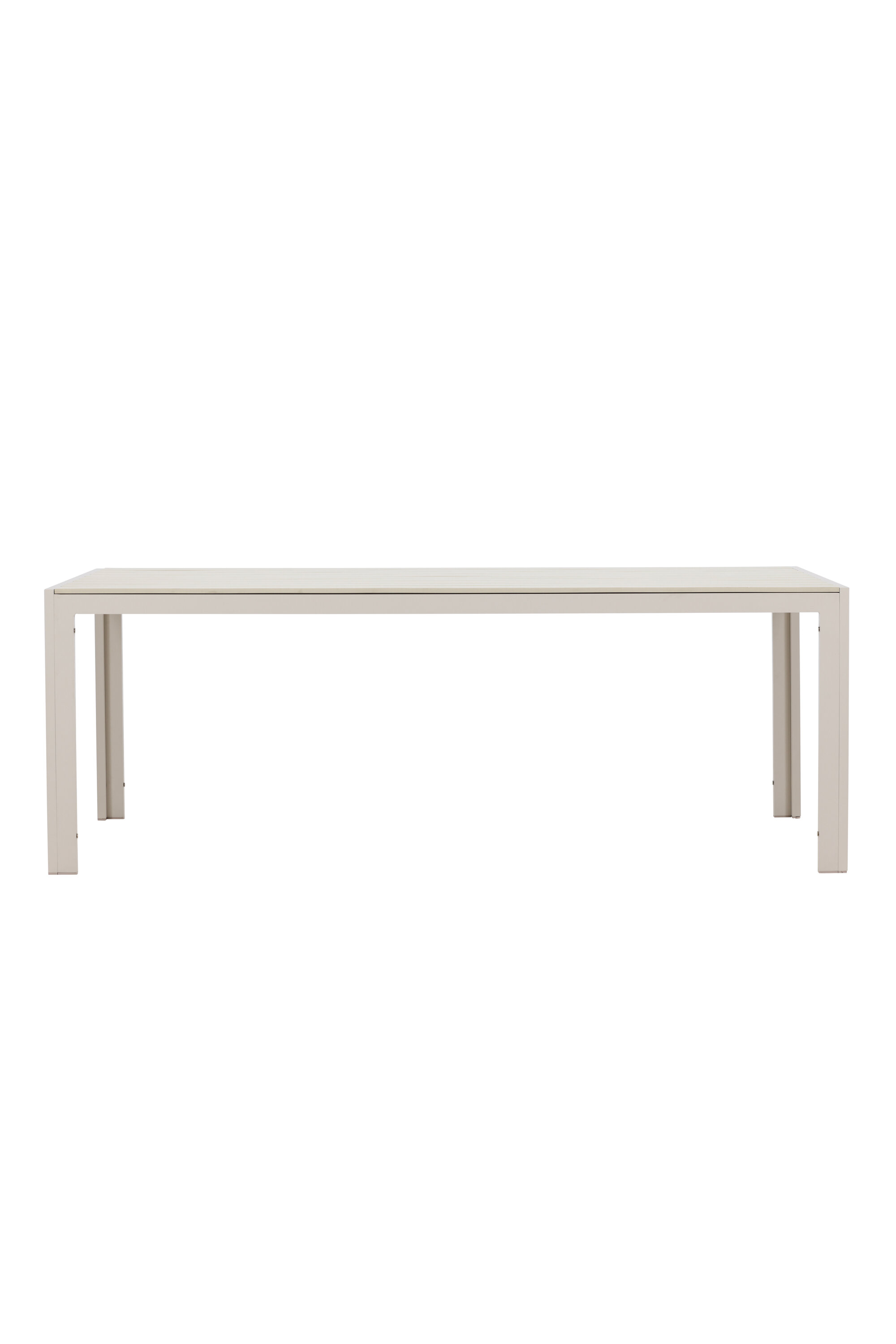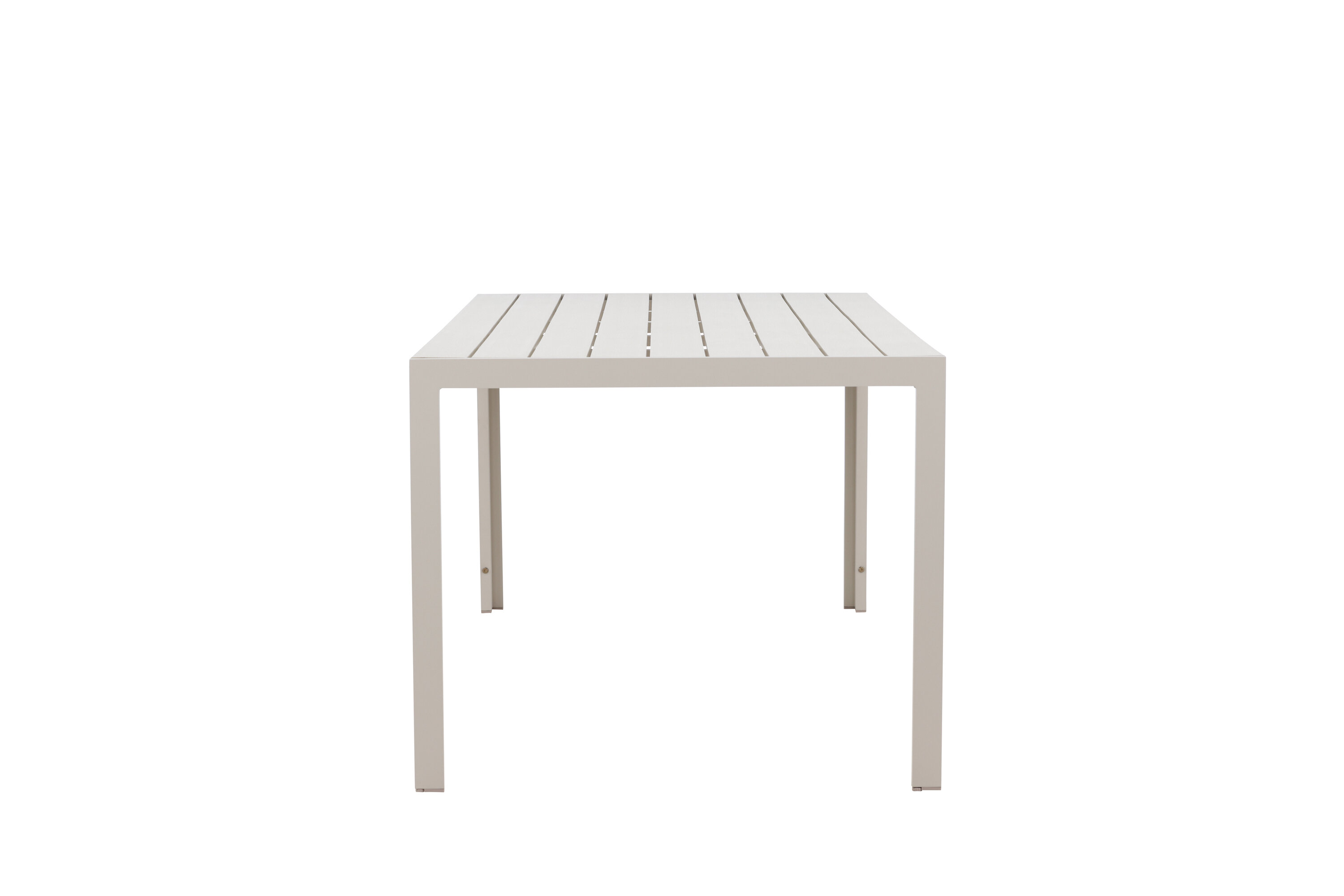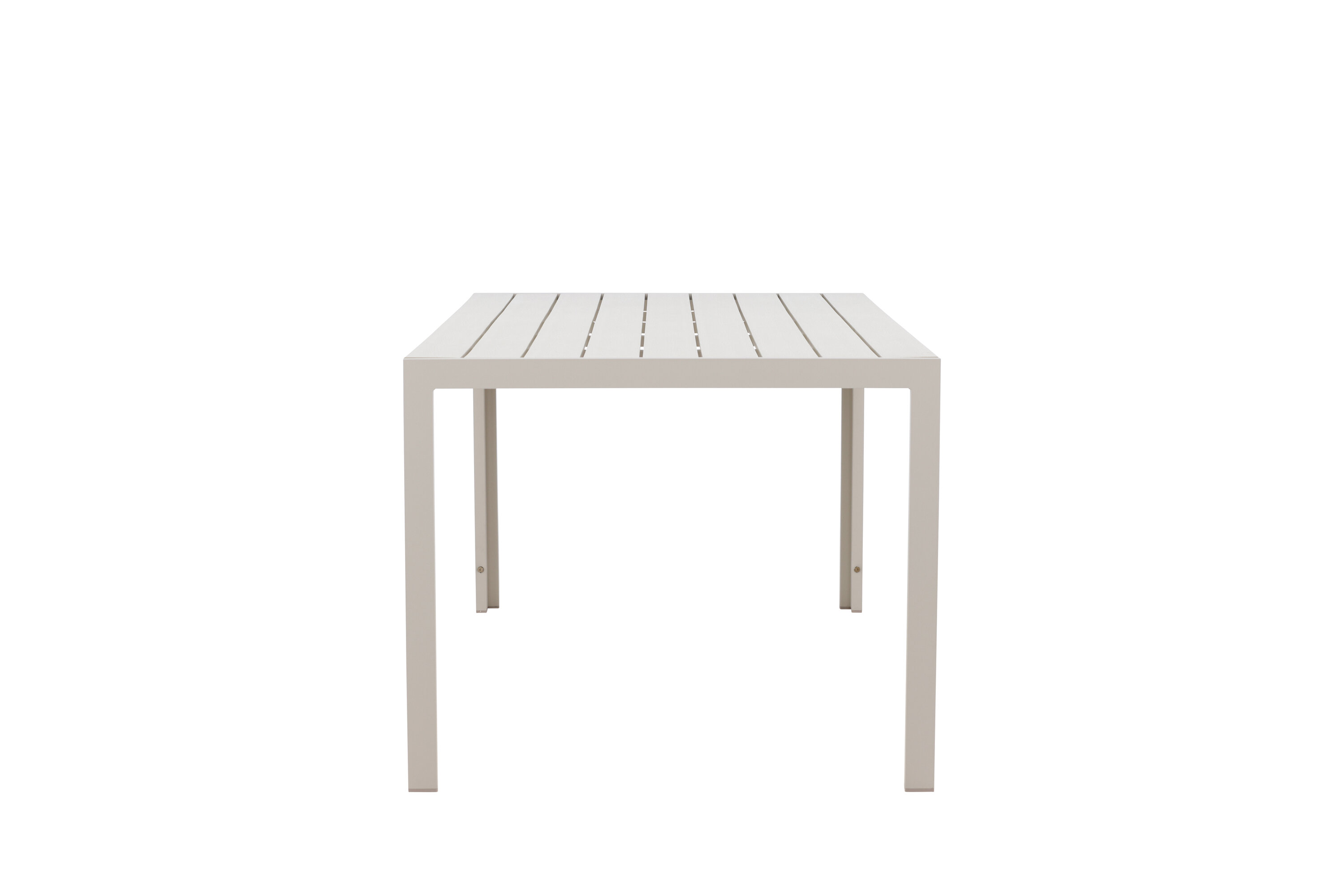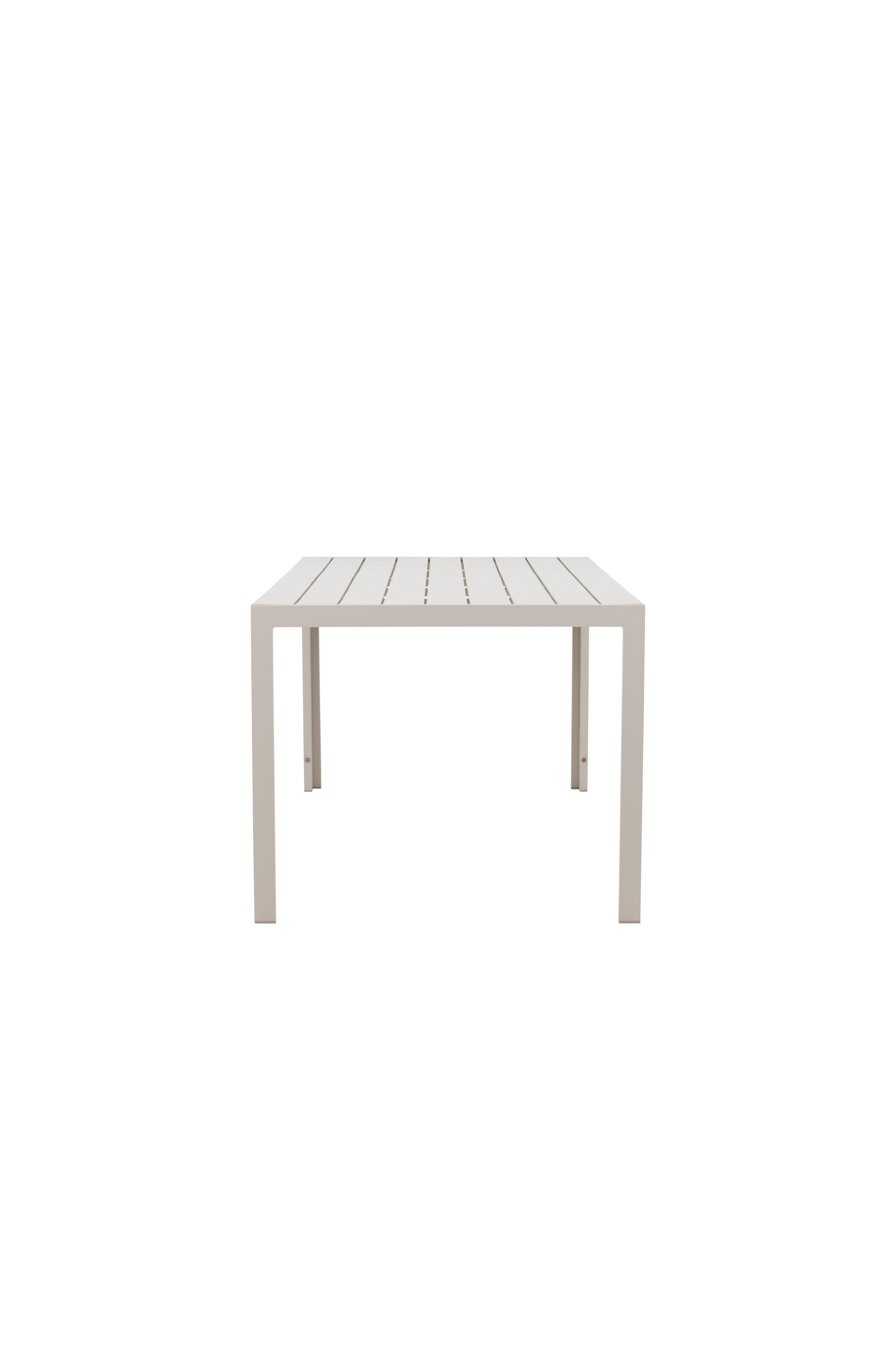 Avasta Mirko – ideaalne laud kõikidesse teie väliskeskkondadesse! Elegantse beeži värvi ja moodsa ristkülikukujulise kujuga Mirko toob teie terrassile värske ja kutsuva tunde. Laual on vastupidav ja roostekindel alumiiniumraam, mis muudab selle nii kergeks kui ka vastupidavaks, samas kui kaunis polüpuidust lauaplaat lisab loomulikku soojust ja elegantsi. Selle suur suurus muudab selle ideaalseks nii söögiks kui ka seltskondlikuks koosviibimiseks, pakkudes palju ruumi kogu rühmale. Valige Mirko stiilse ja funktsionaalse välilahenduse jaoks, mis peab vastu ajaproovile!