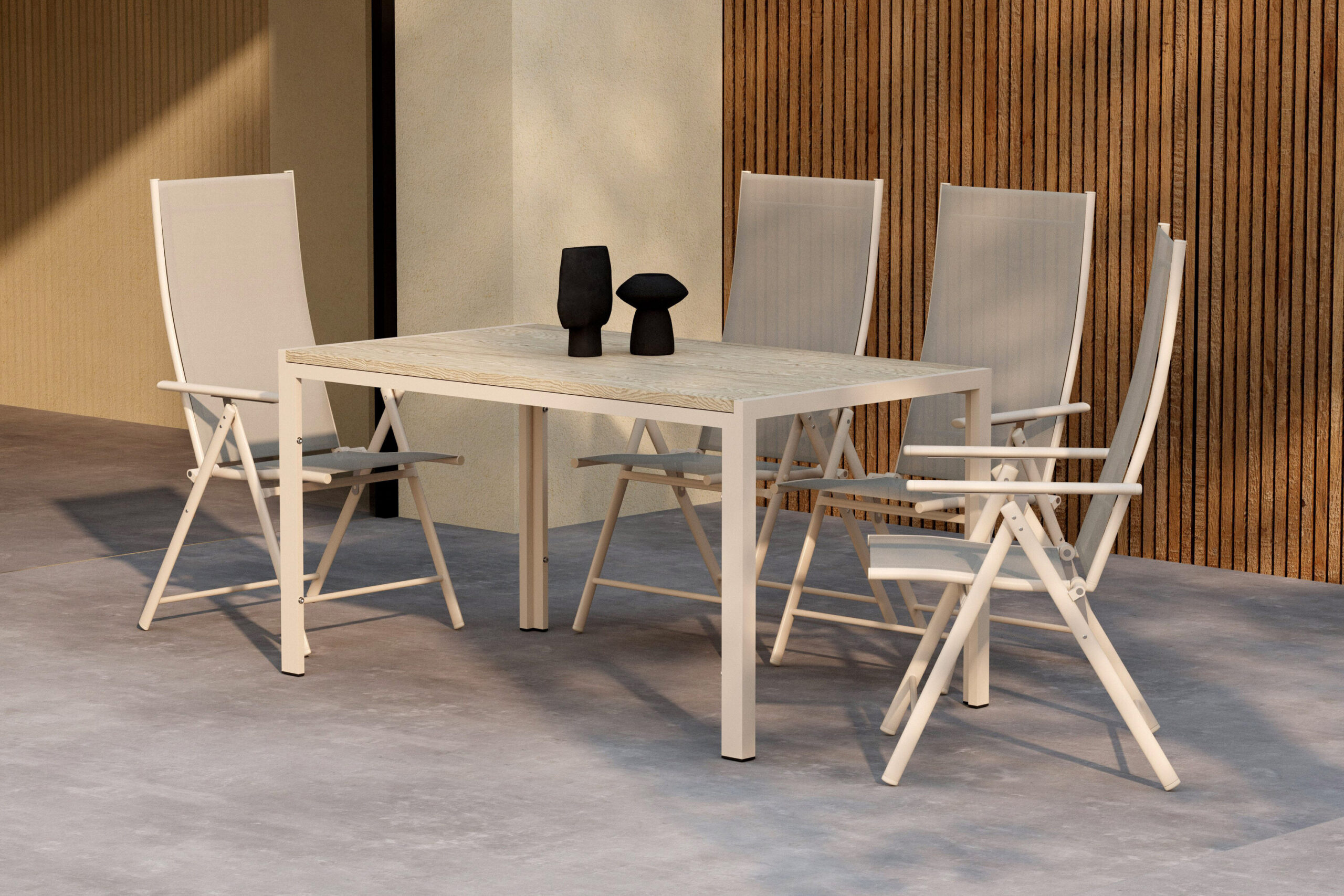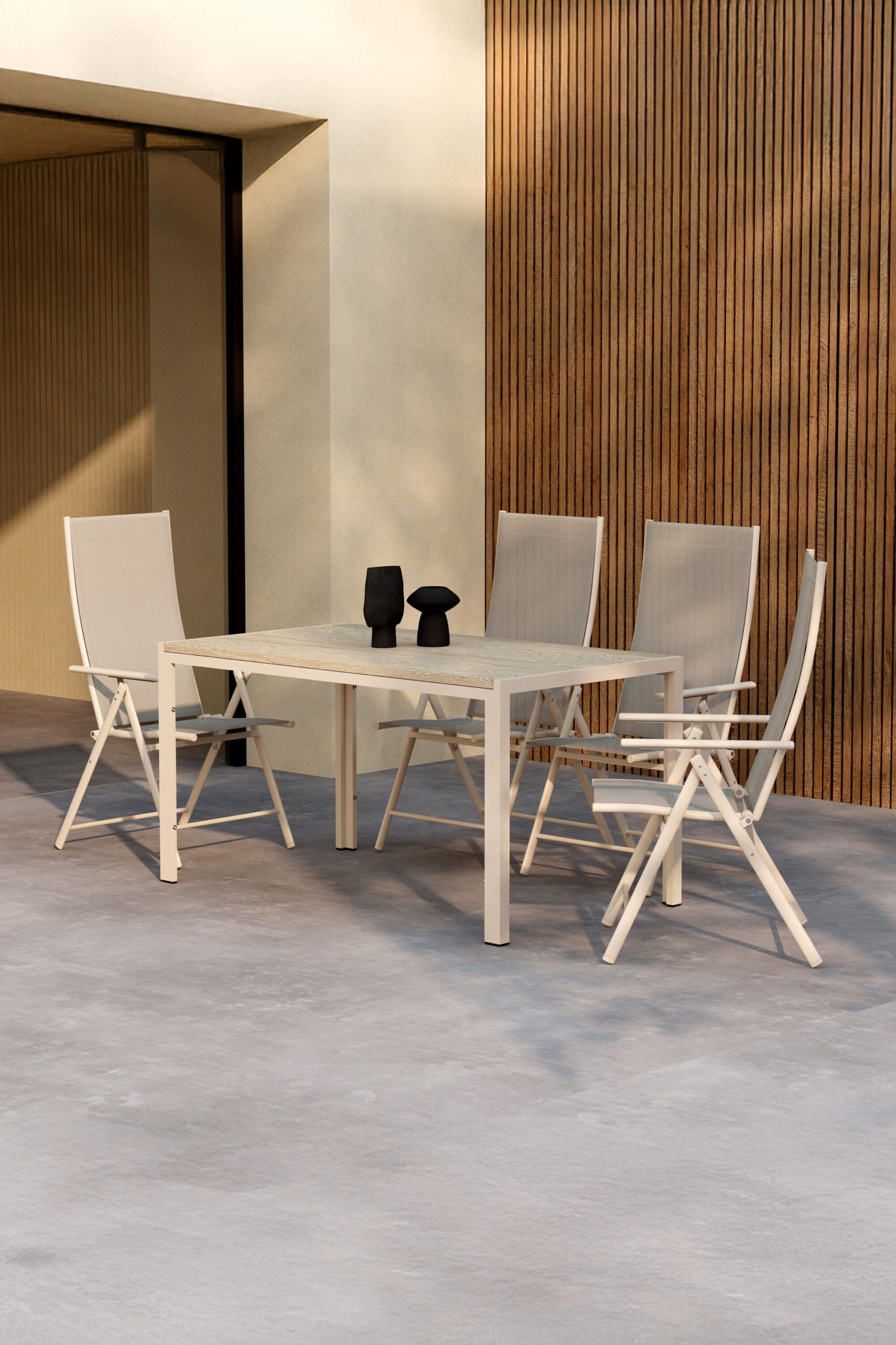 Ajatu beeži värvilahenduse ja nutika disainiga söögikomplekt Mirko on funktsionaalne, vastupidav ja elegantne valik neile, kes soovivad luua stiilse ja mugava välisöögiruumi.