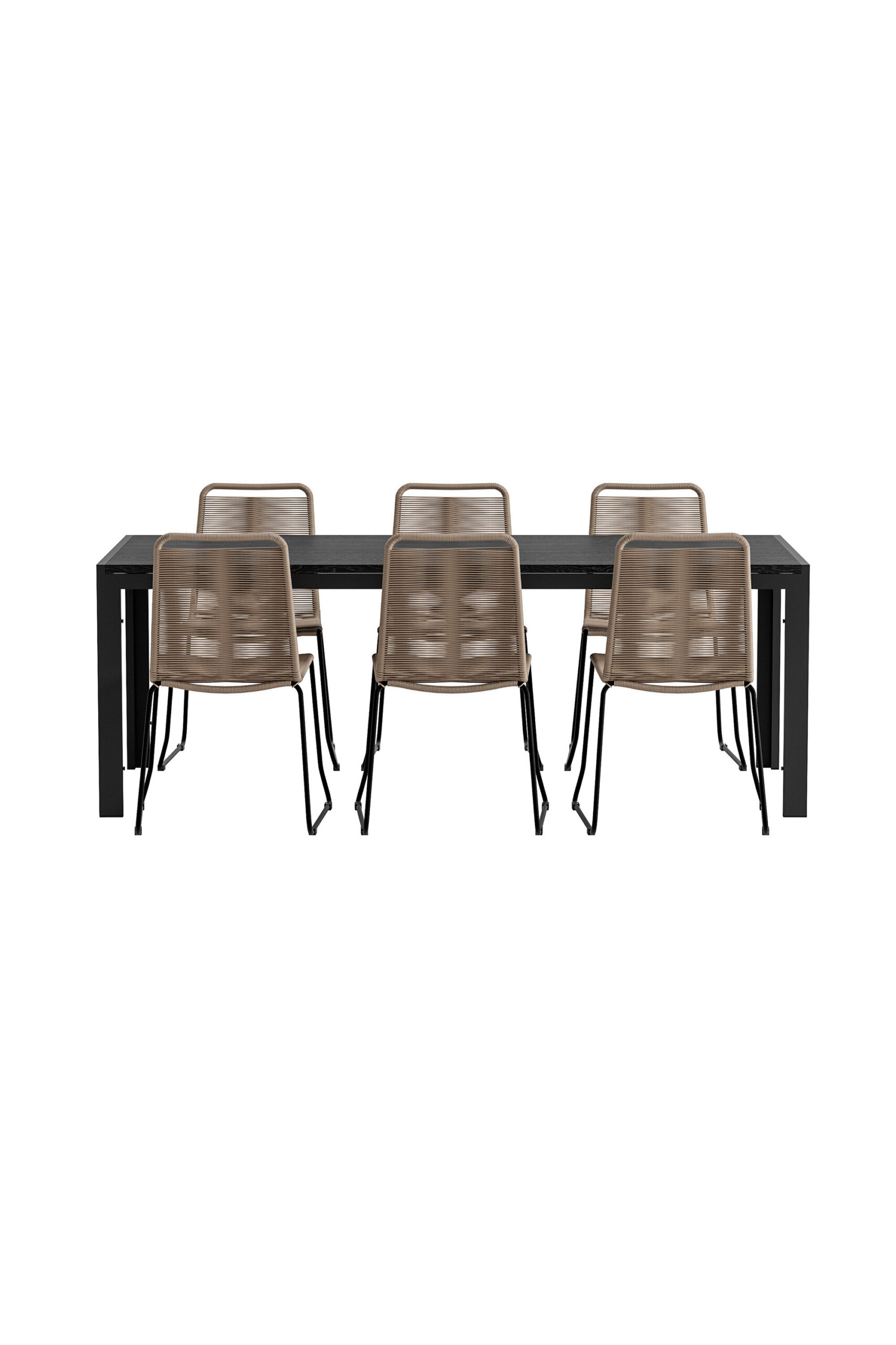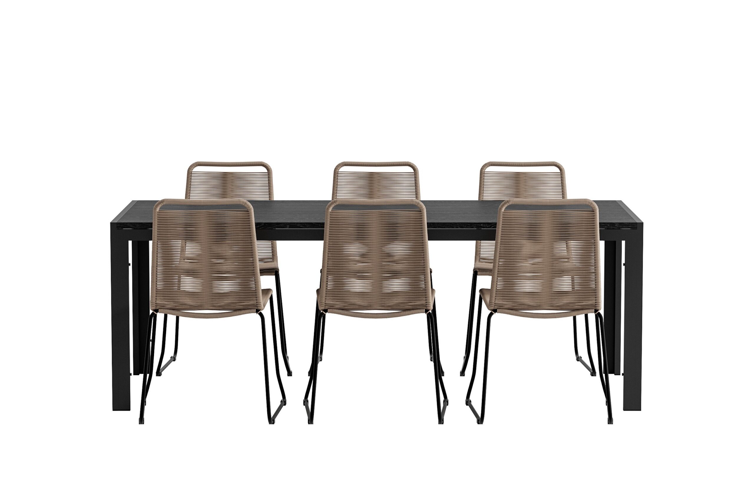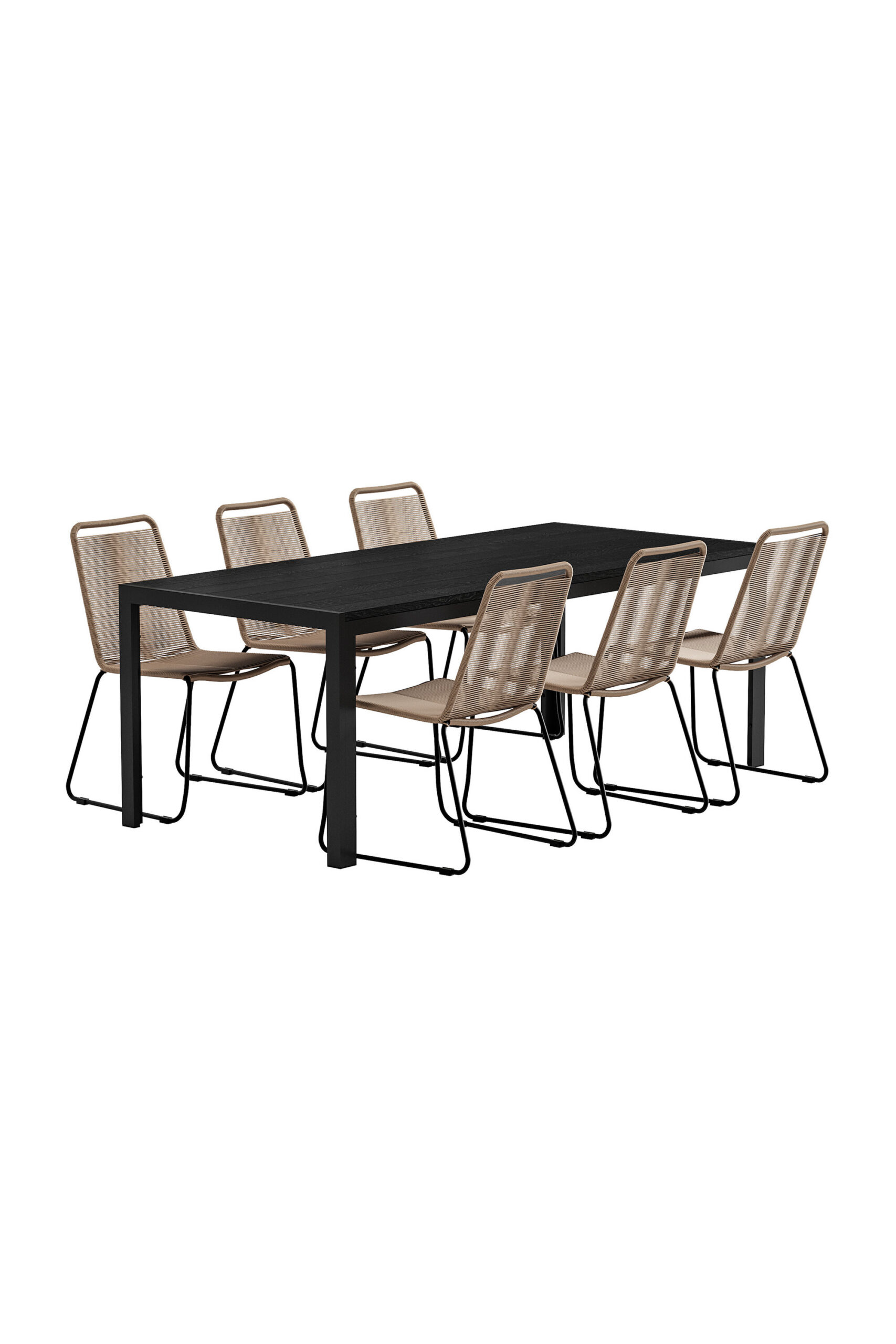 Loo harmooniline ja stiilne välisöögiala Lindos & Mirko söögikomplektiga. Loodusest inspireeritud Lindose toolidel on soe beež nööriistme ja vastupidavad materjalid, mis toovad terrassile pehme ja kutsuva tunde. Puhas disain muudab toolid hõlpsasti kombineeritavaks erinevate keskkondadega, samuti on need virnastatavad mugavaks hoiustamiseks. Elegantse musta värvi ristkülikukujuline Mirko söögilaud loob toolidele modernse ja värske kontrasti. Alumiiniumraam annab stabiilse tunde, samas kui polüpuidust lauaplaat lisab ilmele loomulikku soojust. Mahukas lauapind muudab selle ideaalseks nii igapäevaseks söömiseks kui ka seltskondlikuks koosviibimiseks. Lindose toolid ja Mirko laud moodustavad koos klanitud, avara ja kutsuva söögikomplekti – ideaalne imeliste einete ja suve hetkede jaoks õues.