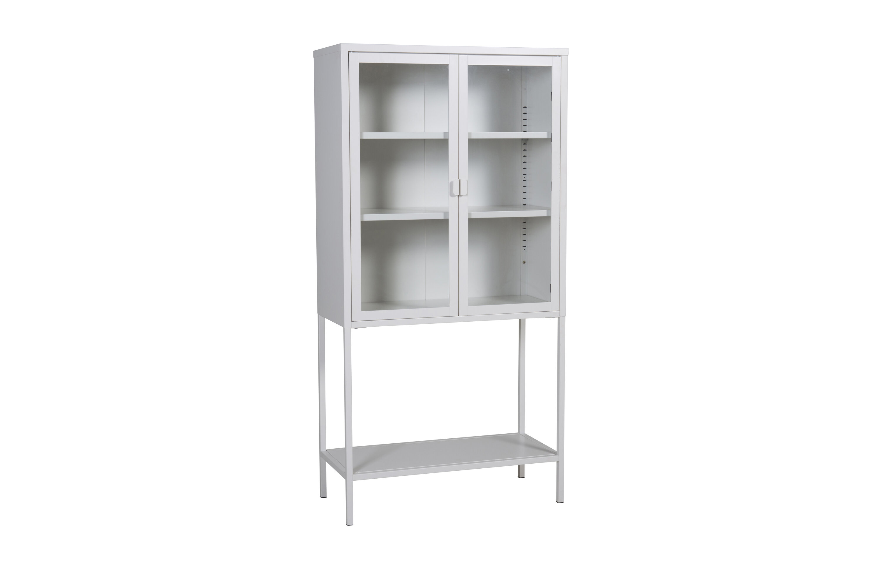 Elegantne praktilise ja stiilse disainiga panipaik! Moodsa põhjamaise disainiga ja puhaste joontega Misha on valmistatud valgest pulbervärvitud terasest kahe klaasuksega, mis lasevad sisse ilusat valgust. Kapi muljetavaldav kõrgus avab ruumi ja loob särava ja kaasaegse atmosfääri. See vitriinkapp on nii mitmekülgne kui ka elegantne – kolme riiuliga, mida saate oma maitse järgi kujundada – portselani, raamatute või dekoratiivesemetega – valik on teie! Inspiratsiooni saamiseks vaadake meie fotosid. Vajalik lihtne kokkupanek.