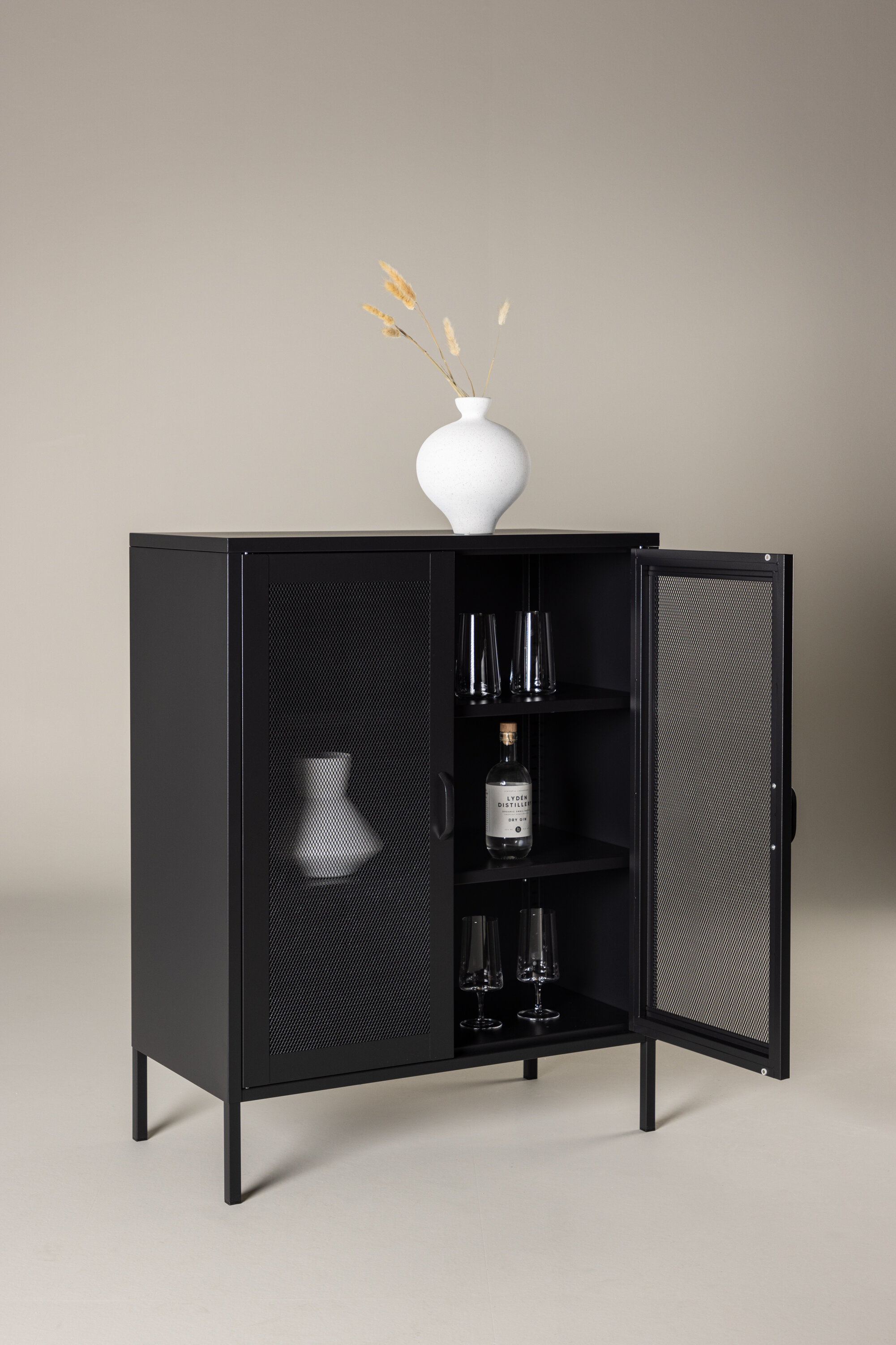 Misha eristab teistest selle uksed: valmistatud peenest perforeeritud terasvõrgust, mis nii varjab kui paljastab. Läbipaistev ruudustik loob valguse ja varju peene koosmängu, võimaldades sisu piirjooni tajuda ilma neid täielikult paljastamata. Nutikas segu esteetilisest ja funktsionaalsest ventilatsioonist.
