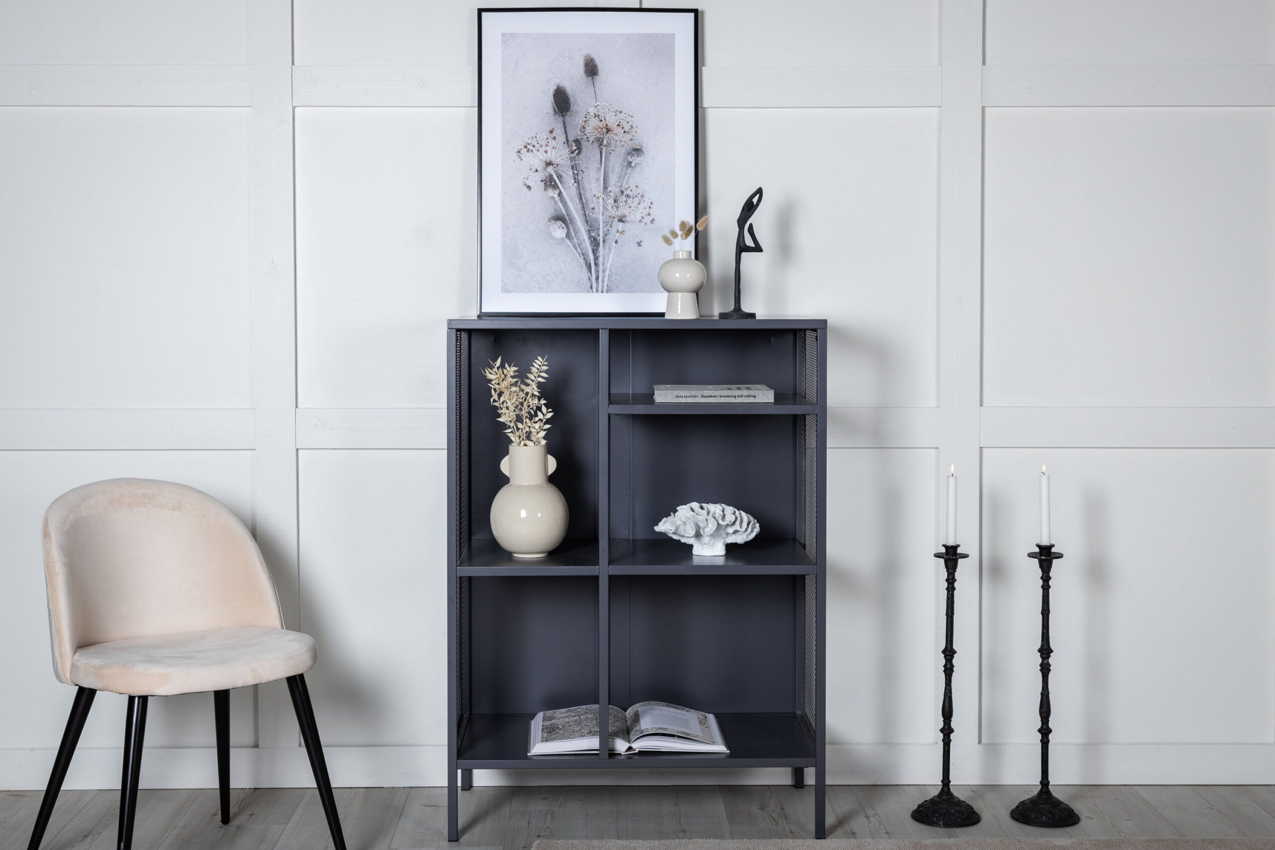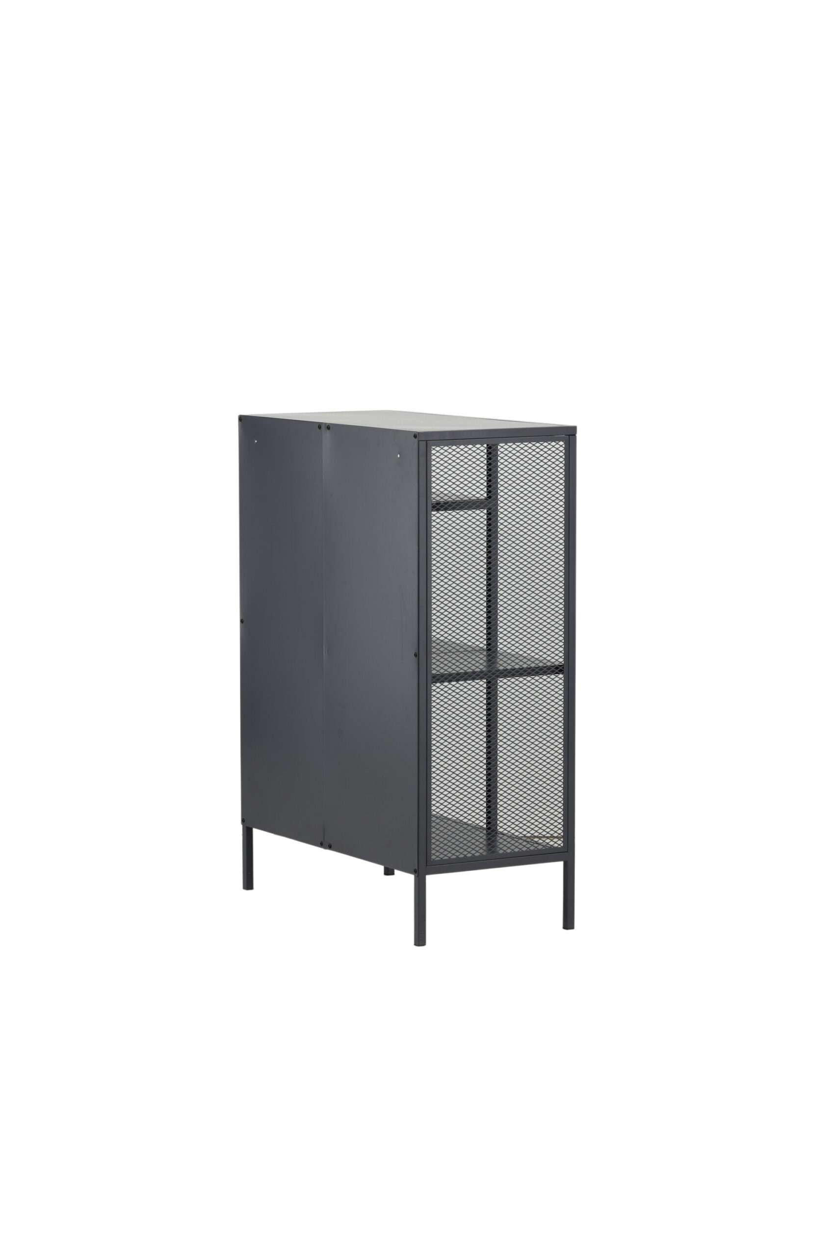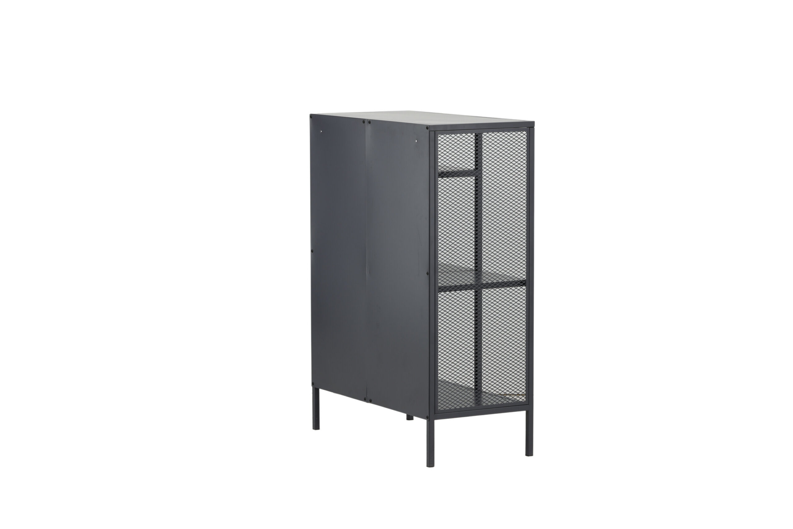 Misha, tugeva tööstusliku disainiga, valmistatud pulbervärvitud hallist terasest, kolme erineva kõrgusega reljeefpinnaga. Võrgud kapi külgedel lisapuudutuse tagamiseks, mis toetuvad neljale pulbervärvitud hallile terasest jalale. Mõõdud: pikkus: 80 cm, laius: 40 cm, kõrgus: 110 cm. Vajalik on kergem montaaž.