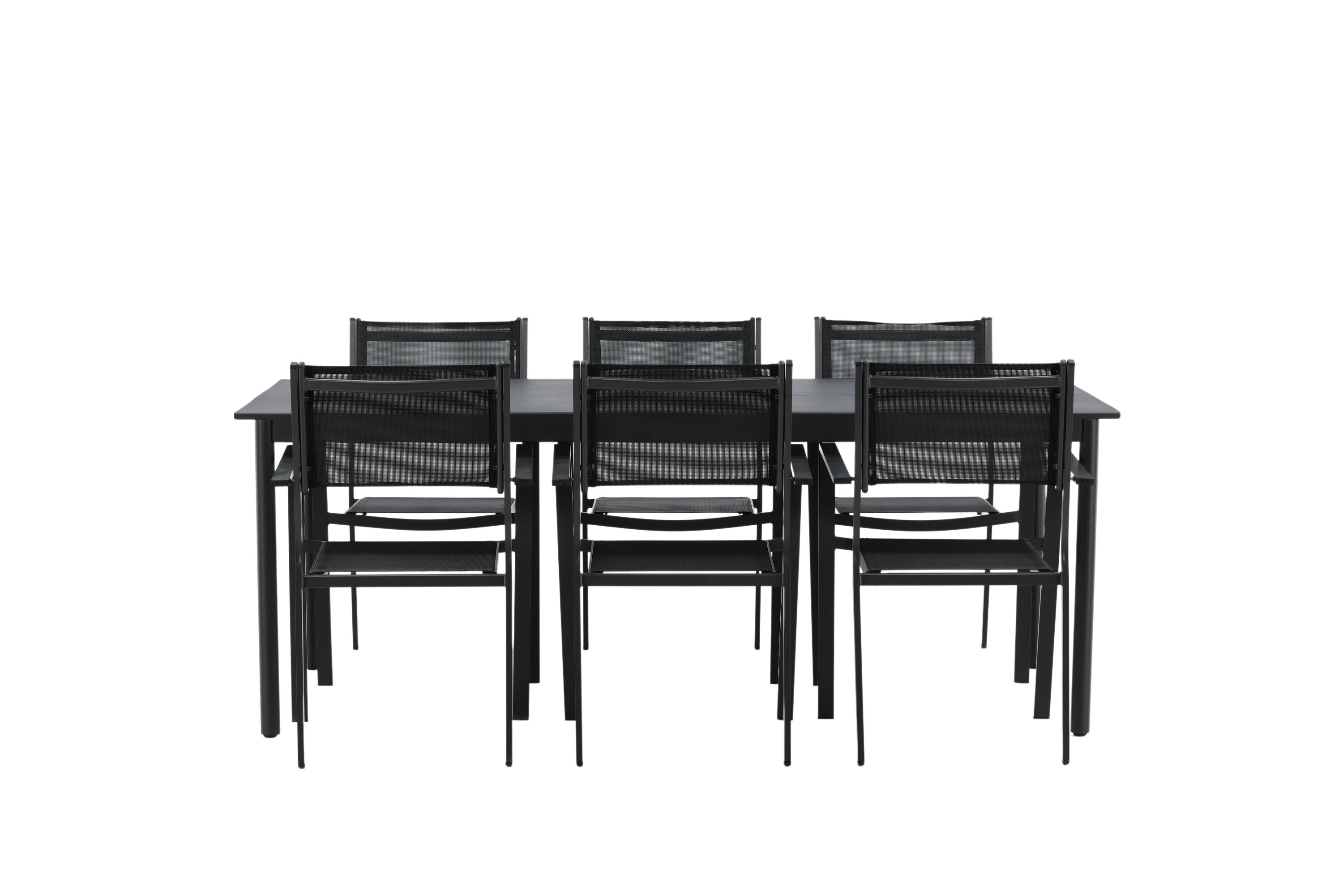 Mõnus, tark ja vastupidav toidugrupp, mis seisab üle aja! Modena on meie populaarne sirgete põhjamaiste kujudega söögilaud, mis mahutab paljusid. Laual on ristkülikukujuline mustast alumiiniumist lauaplaat ja silindrilised minimalistlikud jalad. Siin on maitsev kombinatsioon meie populaarsete musta tekstiilist Copacabana söögitoolidega. Sisusta terrass kutsuvalt ja mugavalt!