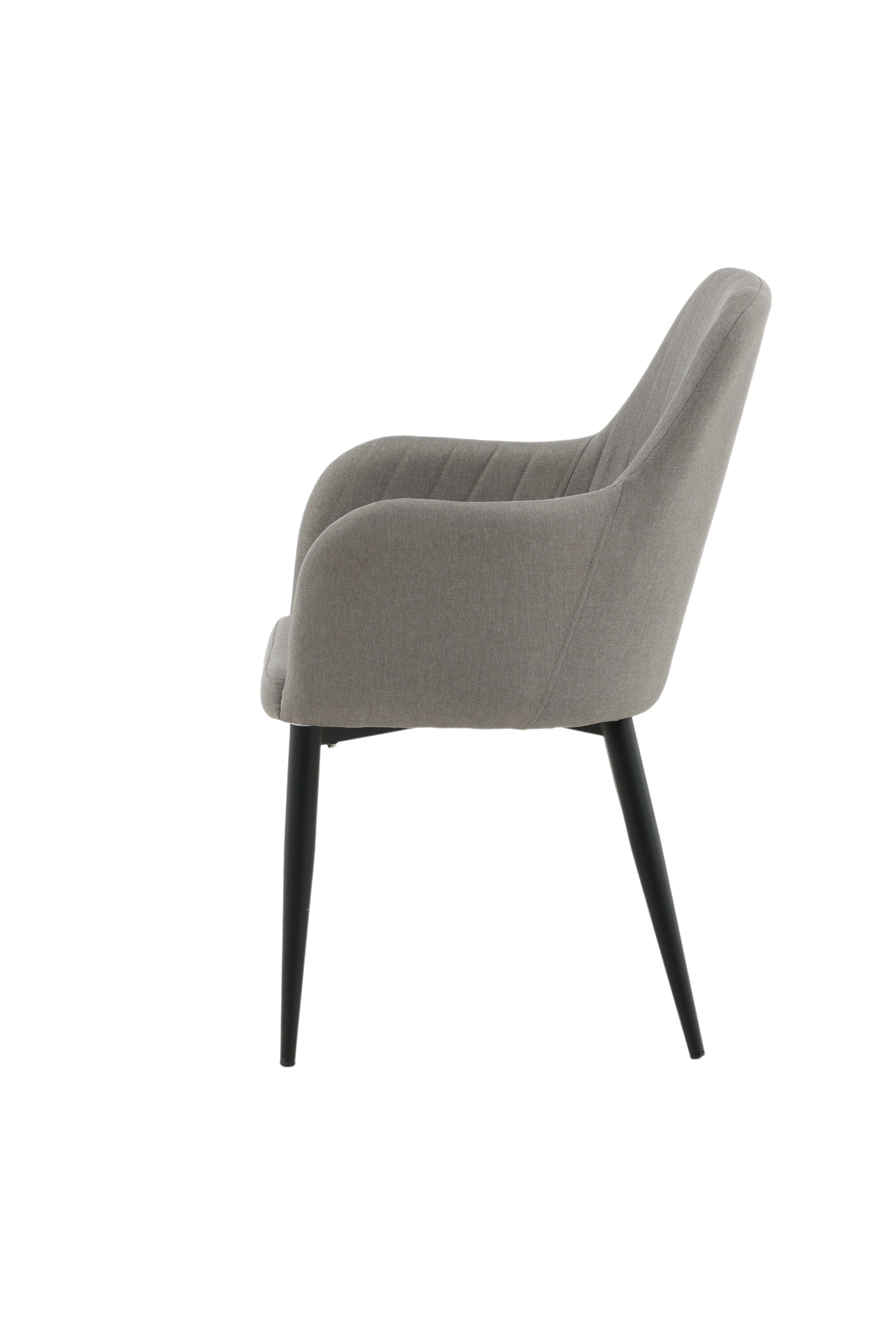 Istu mugavalt Comfort sarja söögitoolidesse! Tugeva ja täielikult riietatud disainiga raamtool musta pulbervärvitud metallist jalgadega. Hallist polüesterkangast integreeritud käetugedega selja- ja isteosa on mõnusa istumismugavuse ja mugava istmesügavusega. Kaunistavad pisted selja siseküljel ja käetugedel muutuvad kenaks detailiks. Vajalik on kergem montaaž.