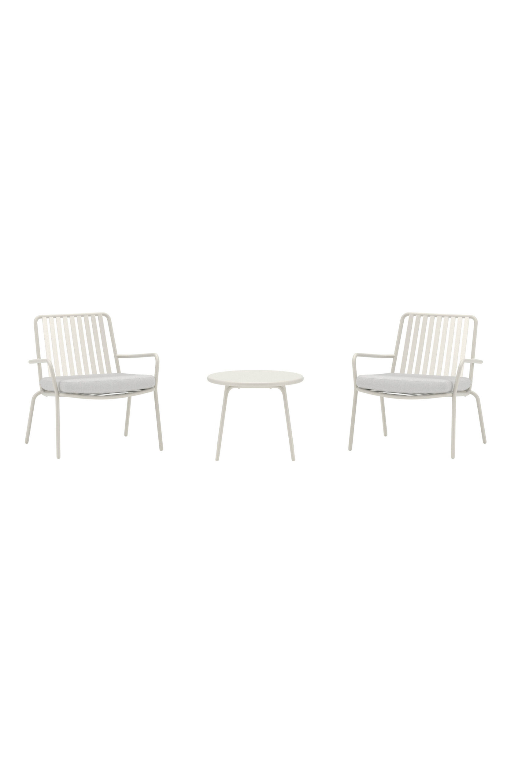 Beežis salongikomplekt Mykonos on stiilne ja kutsuv mööbligrupp, mis sobib ideaalselt terrassil, rõdul või aias lõõgastumiseks. Komplekti kuulub kaks mugavat pehmete patjadega tugitooli ja praktiline sobiva disainiga laud. Õhuline raam annab modernse ilme, neutraalsed toonid aga võimaldavad komplektil sulanduda pingevabalt erinevatesse keskkondadesse. Mykonose salongikomplekt on ilmselge valik pingevaba ja elegantse ruumi loomiseks, kus koguneda ja suve nautida.