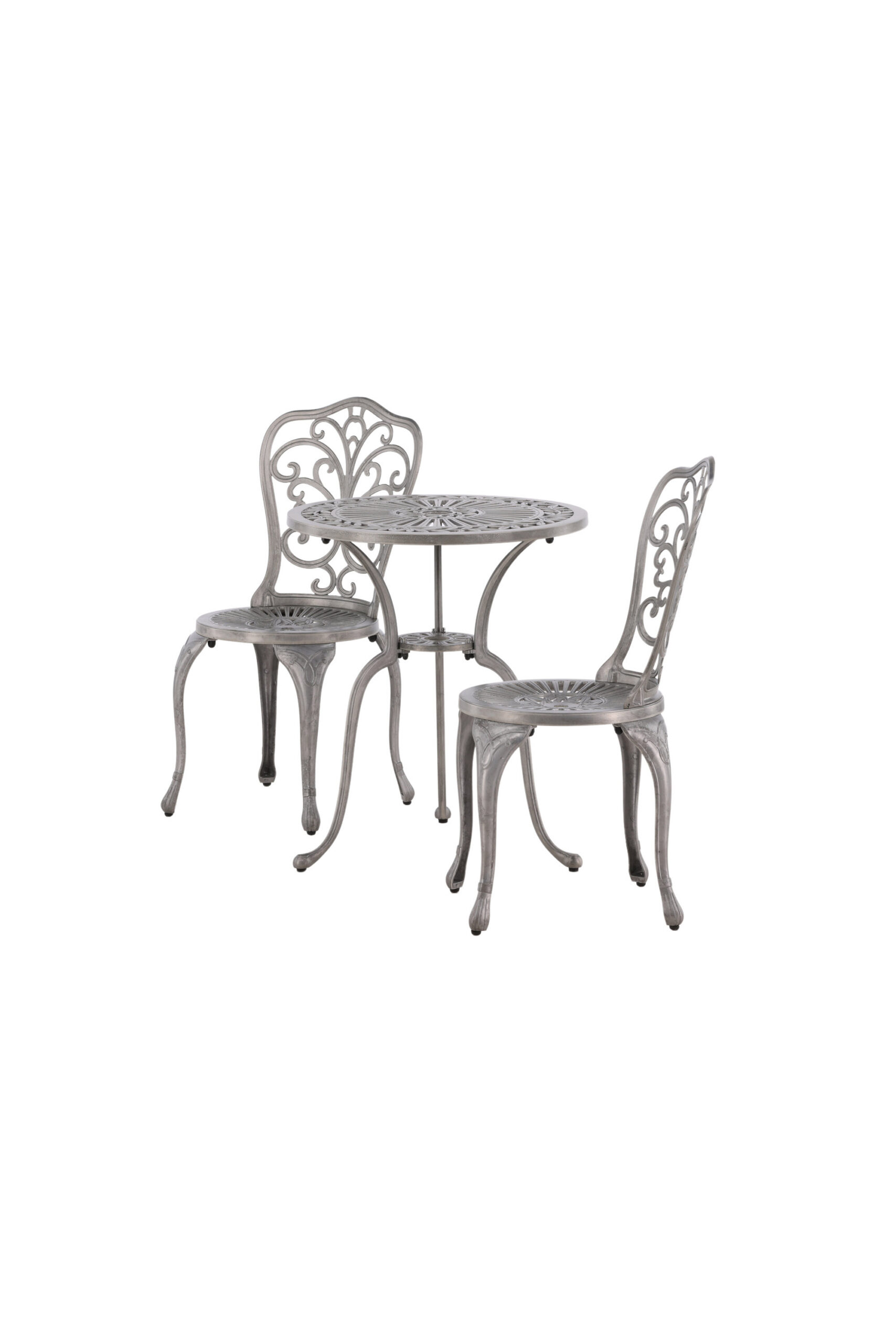 Klassikaline võluva ja nostalgilise disainiga kohvikulaud. Sellel kenal Nandini seeria laual on ümmargune mustriline plaat ja kolm keerduvat jalga on alumiiniumist. Kata sel suvel kohvilaud ja naudi lõõgastavaid hetki väljas päikese käes!