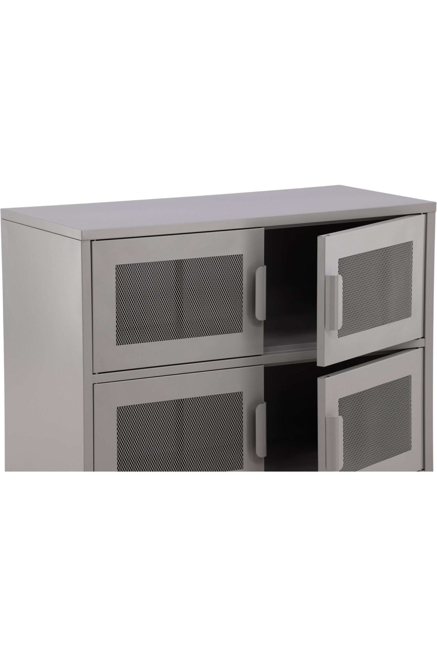 Sisustage kodu nutikalt ja korralikult praktilise hõrgu tööstusdisainiga panipaigaga sarjast Net! See kapp on valmistatud hallist terasest, millel on võrkluugid, millest saab silmale maitsekas detail. Kapil on kaks riiulit, millel on neli vahet, mis loovad palju ruumi poolkollide hoiustamiseks. Kapi sügavus jätab jõulise mulje ja sobib ideaalselt reljeefseks isegi ülemisel plaadil – kaunistustega ornament ja pilkupüüdja, mis avaldab muljet! Kitsad kõrged jalad, mis tõstavad kappi üles, loovad õhulise tunde ja hõlbustavad ka tolmuimeja tööd. Nautige nutikat mööblitükki!