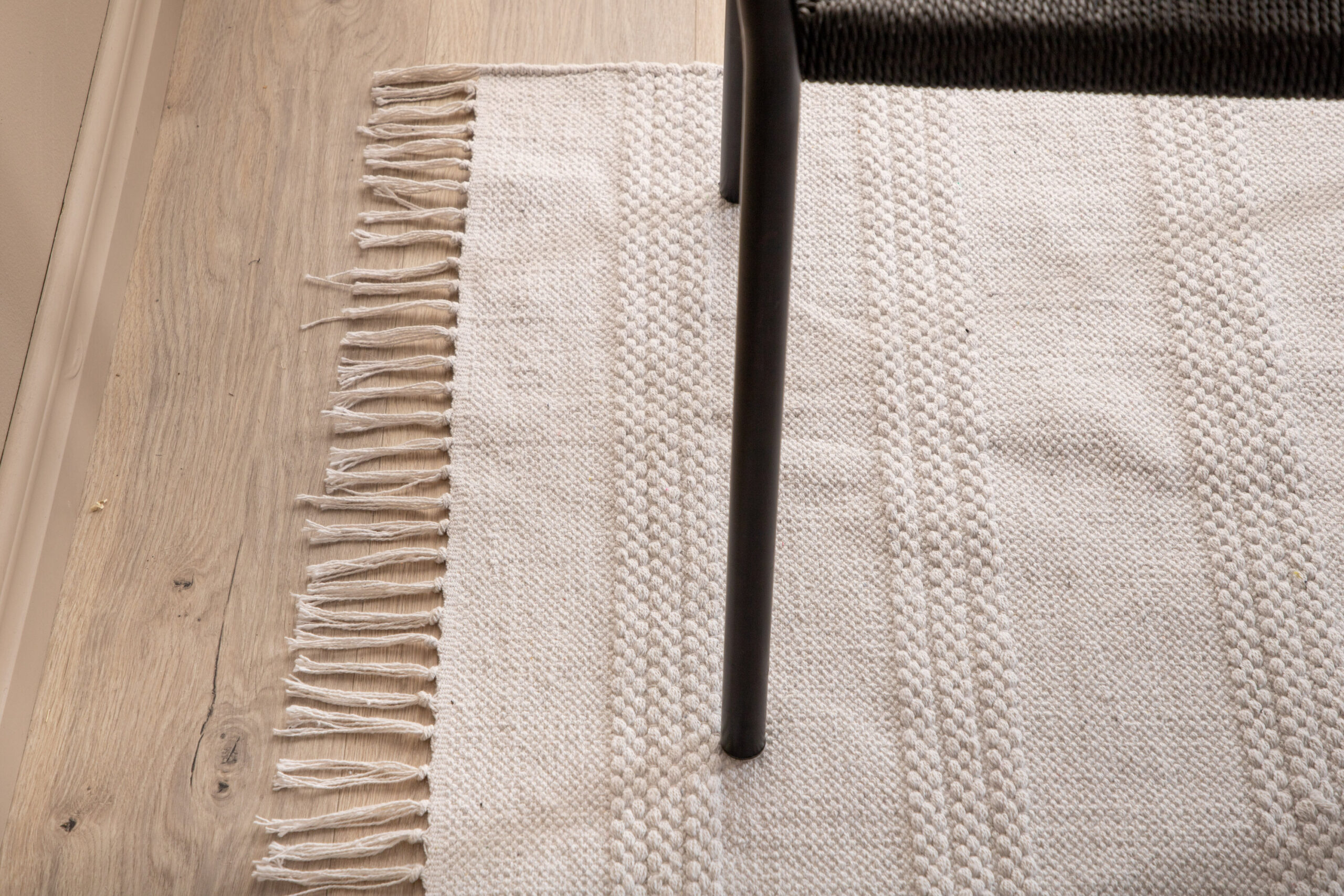 Kerge ja värske sisustusdetail maitsvate detailidega. Nico mattide sari pakub erinevates värvides ja suurustes käsitsi kootud ristkülikukujulisi vaipu. Sellel luuvalgel vaibal on põimitud detailid ja dekoratiivsed narmad lühikestel külgedel, mis annavad silmale elu ja liikumist. Aseta diivanigrupi ette või magamistuppa ja lase vaibal saada mõnus sisustusdetail, millega jalgu soojendada. Mati mõõdud: 160×230.
