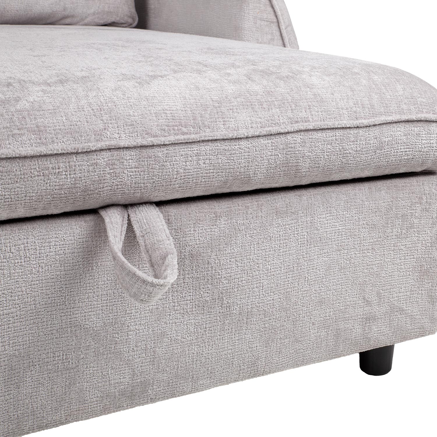 Diivani nurk on universaalne. Moodulite ja käetugede asetust saab muuta vastavalt vajadusele.