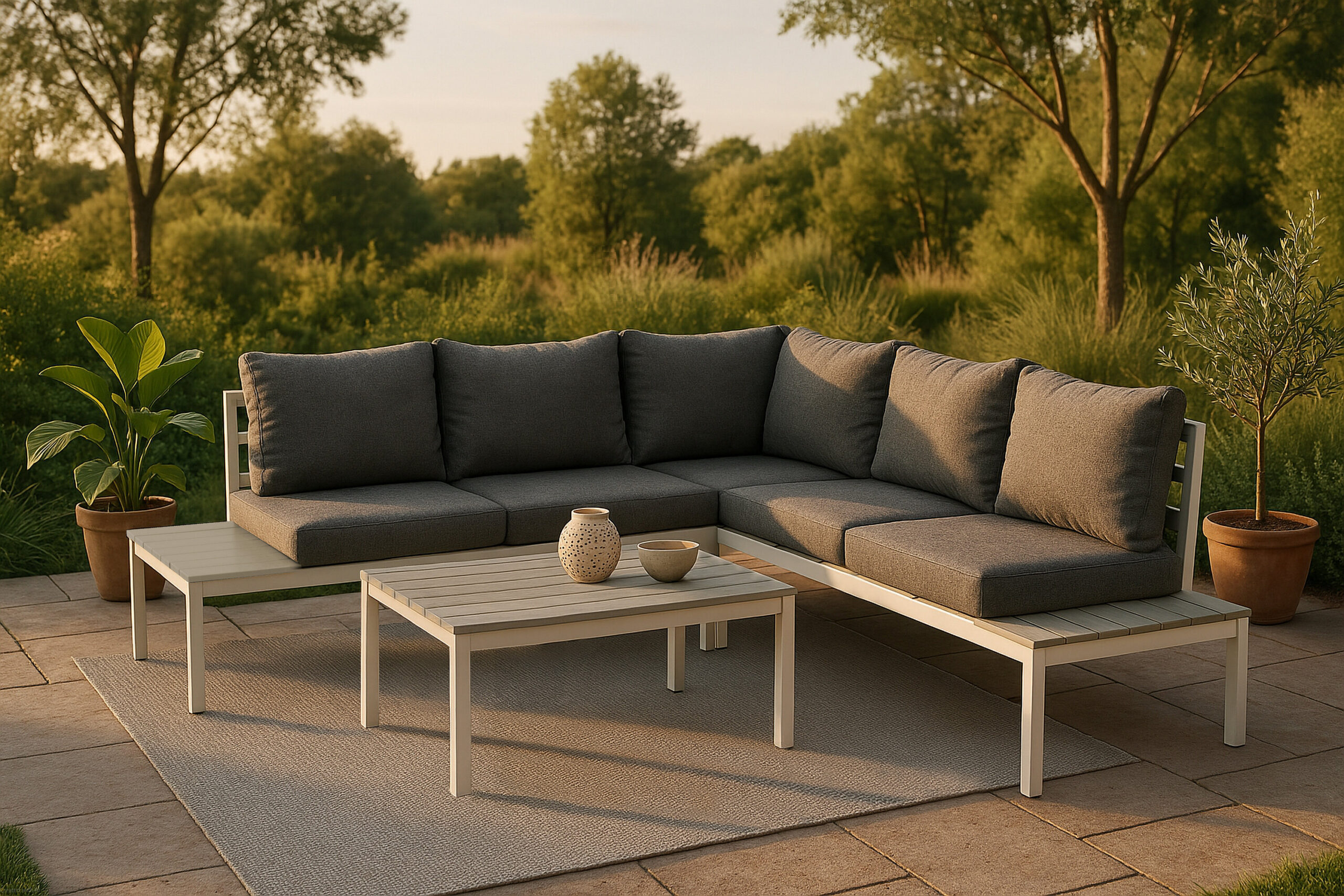 Alumiiniumist ja roostevabast terasest välimööblit tuleb regulaarselt puhastada vee ja pehme seebiga. Loputage alati põhjalikult rohke veega, mis muutub eriti oluliseks, kui mööbel asetatakse merele – lähedale, kus sool saab õhu kaudu transportida.