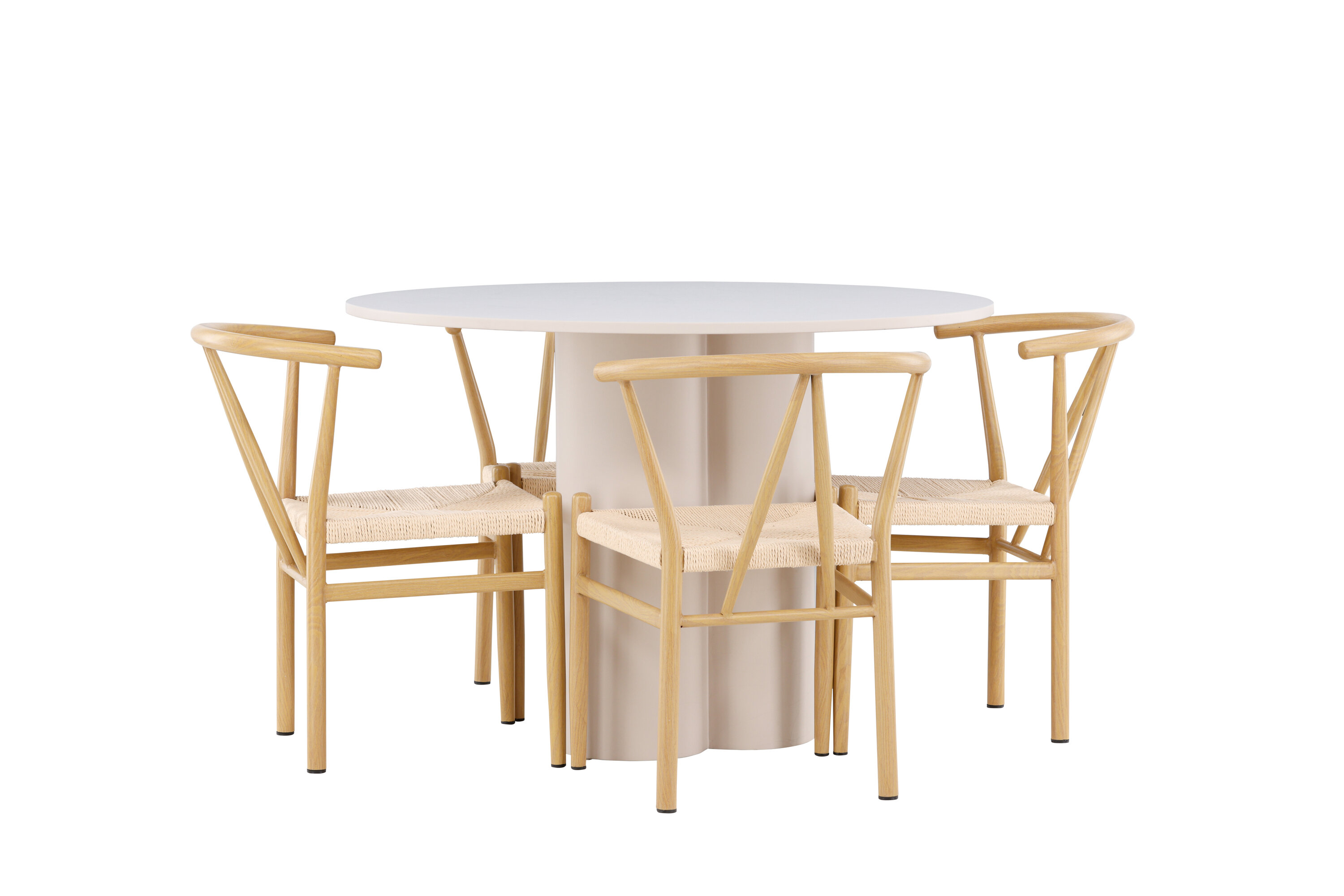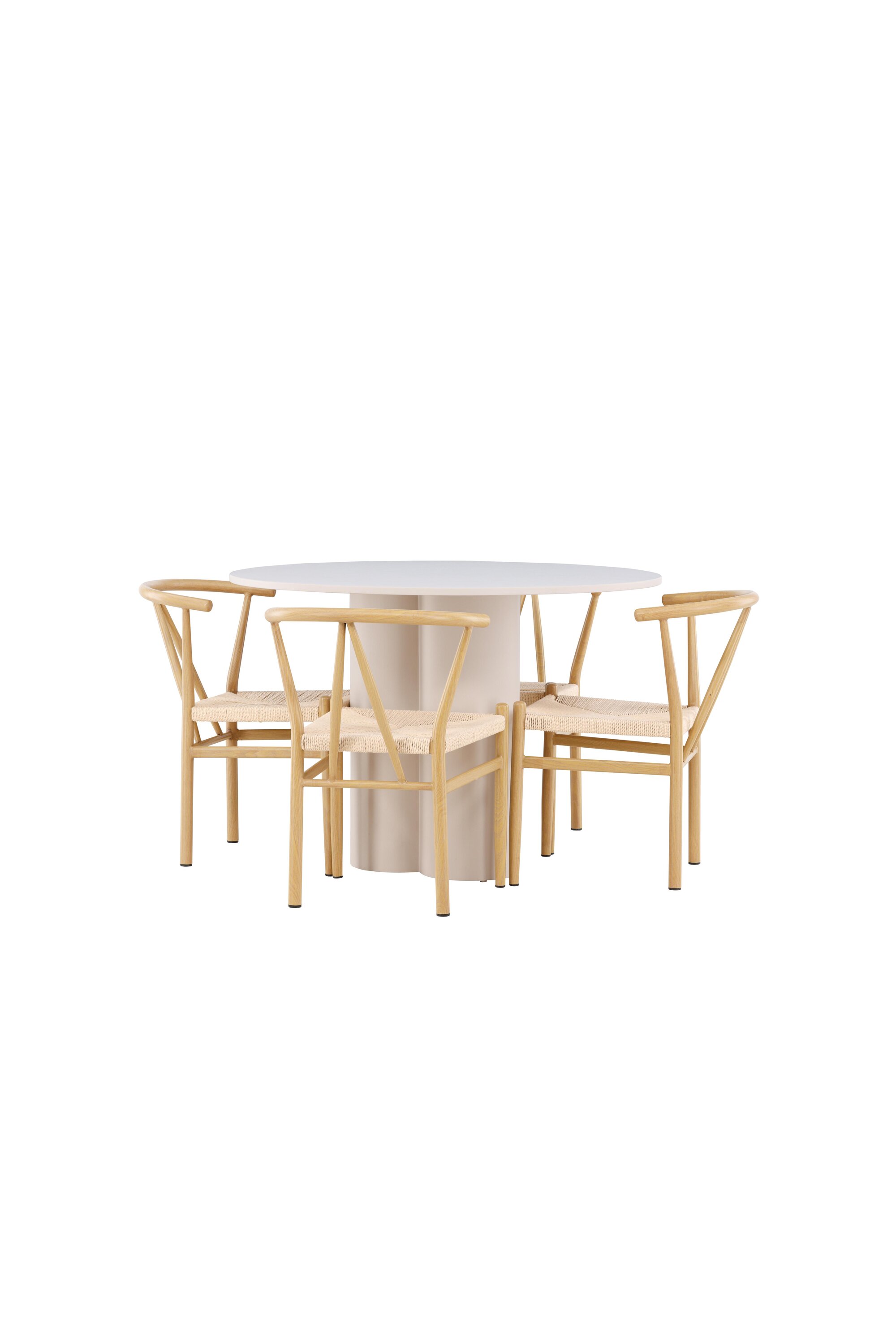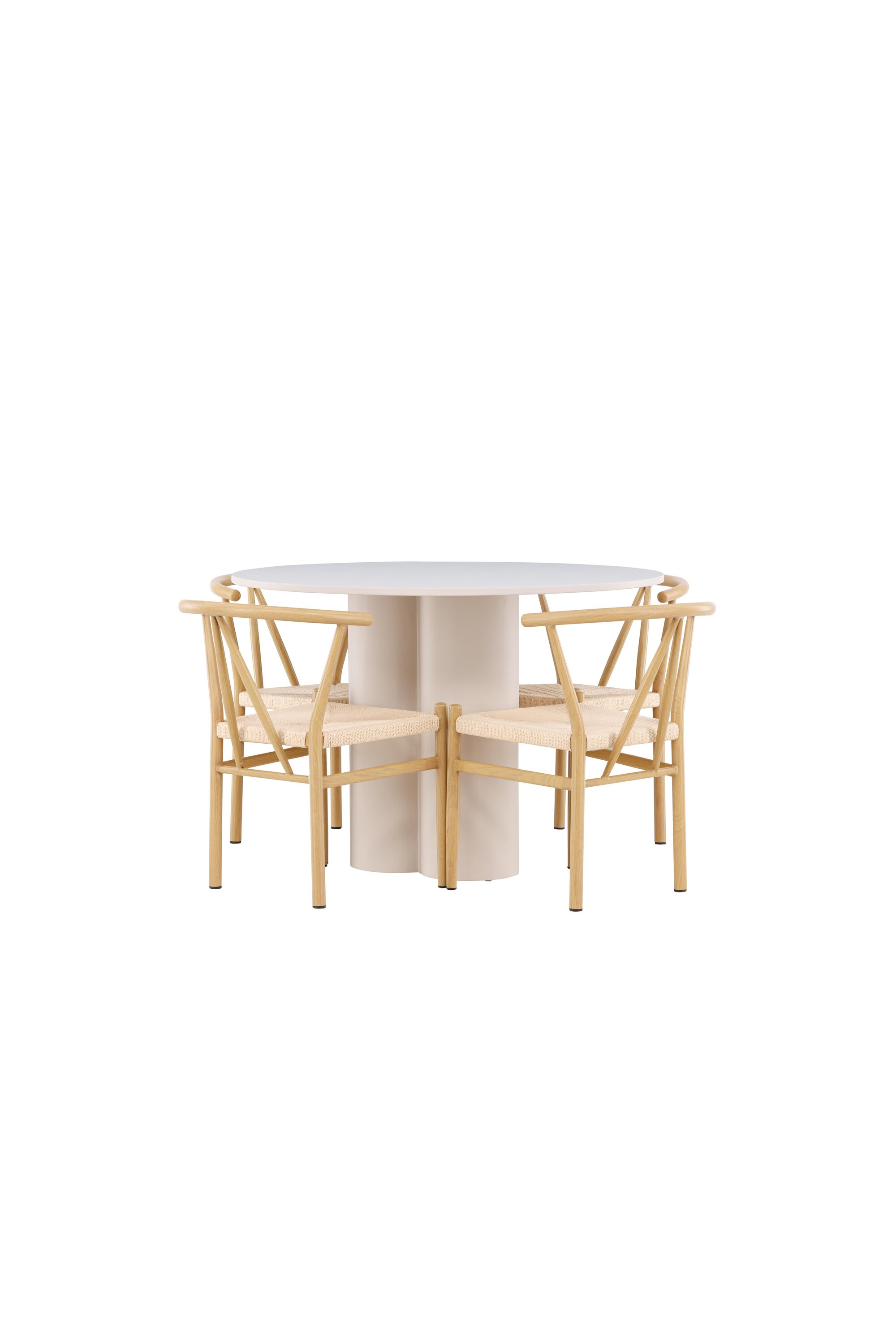 Looge elegantne ja kutsuv söögituba meie elegantse söögikomplektiga, mis ühendab Olivia laua võluvate Alfonsi toolidega. See söögikomplekt, mis sobib ideaalselt nii igapäevaseks õhtusöögiks kui ka pidulikuks sündmuseks, loob teie söögitoale kaasaegse ja harmoonilise atmosfääri. MDF-st valmistatud Olivia laual on helebeež värv, mis lisab teie söögitoale sooja ja kutsuva tunde. 110 cm läbimõõduga laud pakub rohkelt ruumi söögiks ja vestlusteks, ümar kuju loob aga tasakaalustatud ja sotsiaalse keskkonna. Laua vastupidav konstruktsioon tagab pikaajalise kasutuse ja stabiilsuse. Neli Alfonsi tooli täiendavad lauda suurepäraselt oma elegantsete beeži rotangist istmete ja klanitud beeži metalljalgadega. Need toolid pakuvad nii mugavust kui ka stiili, muutes need ideaalseks pikaks ja nauditavaks õhtusöögiks pere ja sõpradega. Nende kaasaegne disain koos kõrgete seljatugede ja naturaalsete materjalidega annab teie söögitoale rafineeritud ja kaasaegse ilme. See söögikomplekt on täiuslik kombinatsioon esteetikast ja funktsionaalsusest, mistõttu on see suurepärane valik neile, kes otsivad elegantset ja mugavat söögituba. Täiustage oma söögituba Olivia laua ja Alfonsi toolide kombinatsiooniga ning looge koht, kus jagatakse mälestusi ja rõõmu.