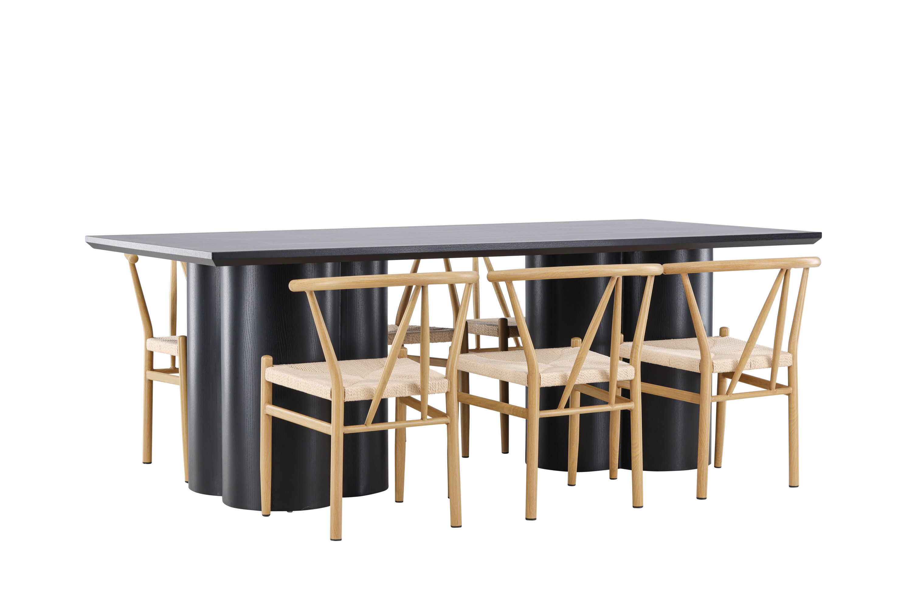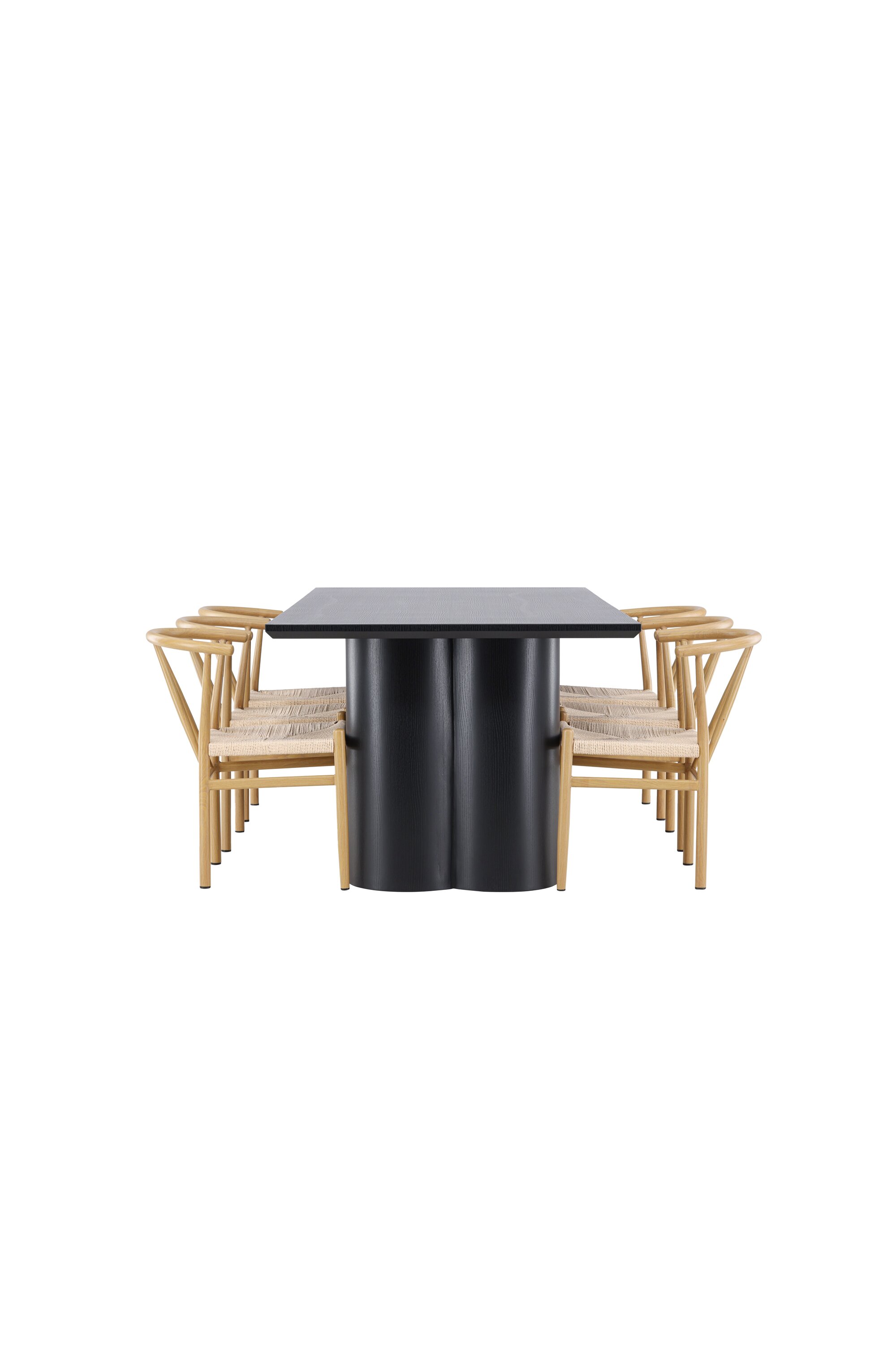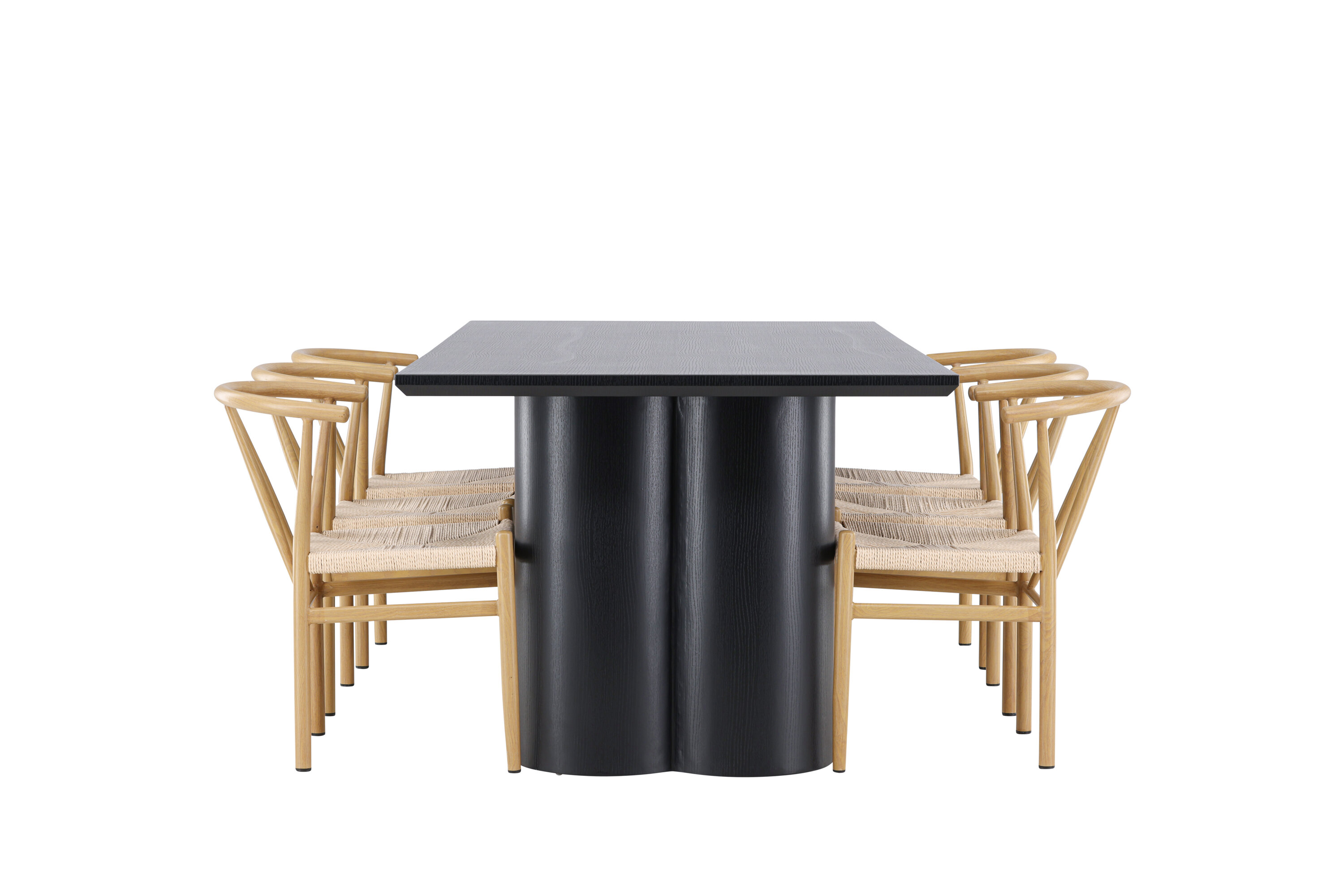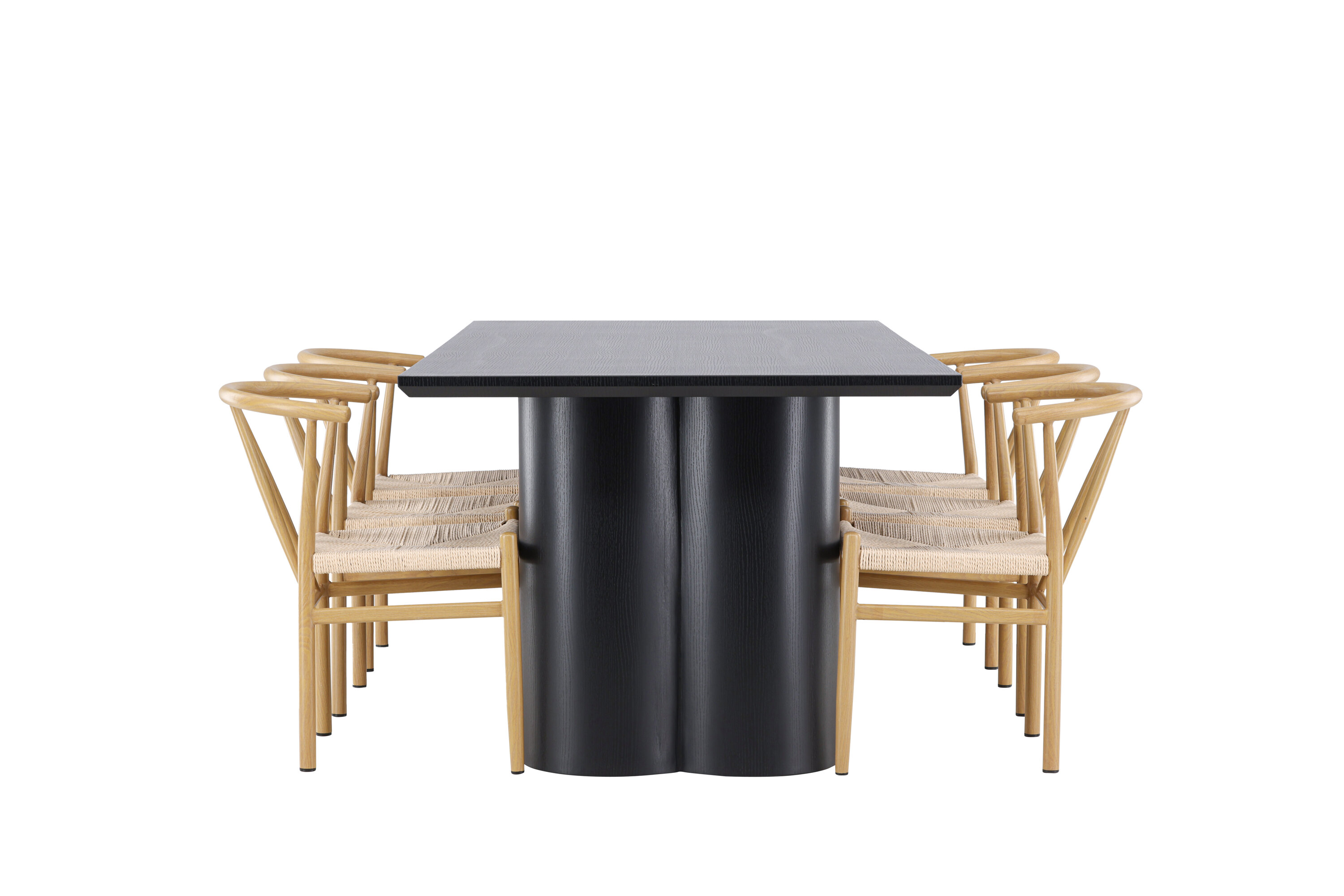 Looge oma kodus elegantne ja kutsuv atmosfäär meie keeruka söögikomplektiga, mis ühendab endas kaasaegse disaini ja ajatu võlu. See söögikomplekt koosneb elegantsetest Alfonsi toolidest ja muljetavaldavast Olivia söögilauast. Avasta Alfonsi tool – täiuslik segu modernsusest ja ajatust elegantsist. Naturaalses värvitoonis rotangist valmistatud terasest jalgadega Alfons loob värske ja lõdvestunud tunde igasse ruumi. Oma trendikindla disaini ja neutraalse välimusega sobib Alfons sujuvalt erinevatesse interjööristiilidesse. Selle elegantne siluett ja kootud struktuur loovad teie koju õhulise ja kutsuva atmosfääri. Alfonsi tool pole mitte ainult mugav iste, vaid ka koht kaaslaseks ja suhtlemiseks. Olgu Alfons oma kaaslaseks pikkadel vestlustel või hubastel hetkedel sõprade ja perega. Oma võlu ja mitmekülgsusega on Alfonsi tool iga kaasaegse kodu kohustuslik. Kogege elegantsust ja funktsionaalsust söögilauaga Olivia. Oma suurte mõõtmetega 210×100 cm on see laud ideaalne sõprade ja pereliikmete tervitamiseks ühistel einetel ja koosviibimistel. Keerulises mustas toonis söögilaud Olivia õhkab elegantsi ja modernsust. Selle tugev konstruktsioon tagab stabiilsuse aastateks. Loo Olivia söögilauaga oma kodus trendikas atmosfäär. Selle elegantne disain ja ajatu värvitoon sobivad ideaalselt erinevate interjööristiilidega. Laske Olivia söögilaual luua oma seltskondlikke koosviibimisi ja mälestusi, jagades samal ajal eineid ja vestlusi oma lähedastega. Alfonsi toolide ja Olivia söögilauaga saate söögikomplekti, mis ühendab endas parimal moel esteetika ja funktsionaalsuse. Andke oma kodule elegantsi ja ühtekuuluvust selle muljetavaldava ja mitmekülgse söögikomplektiga.