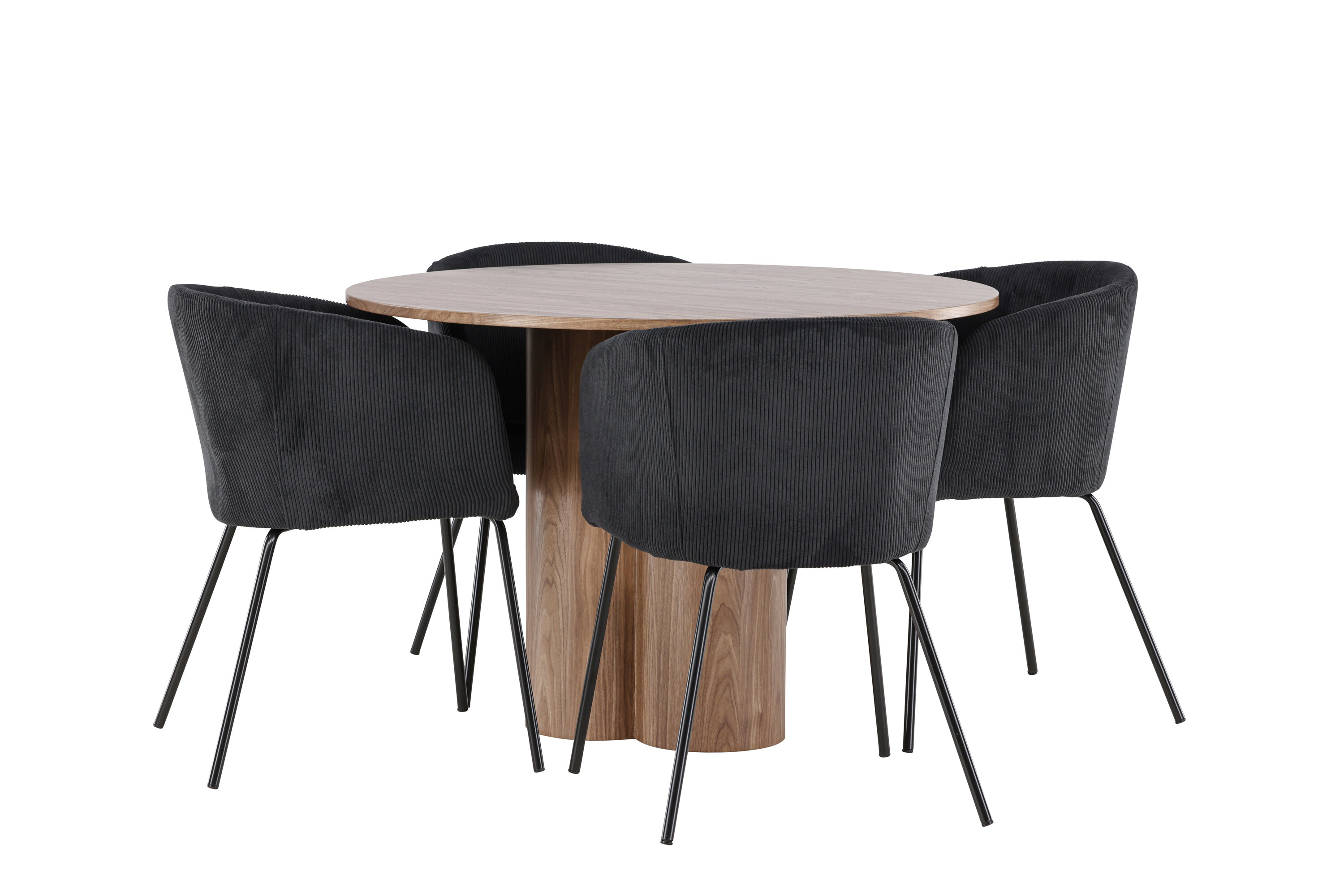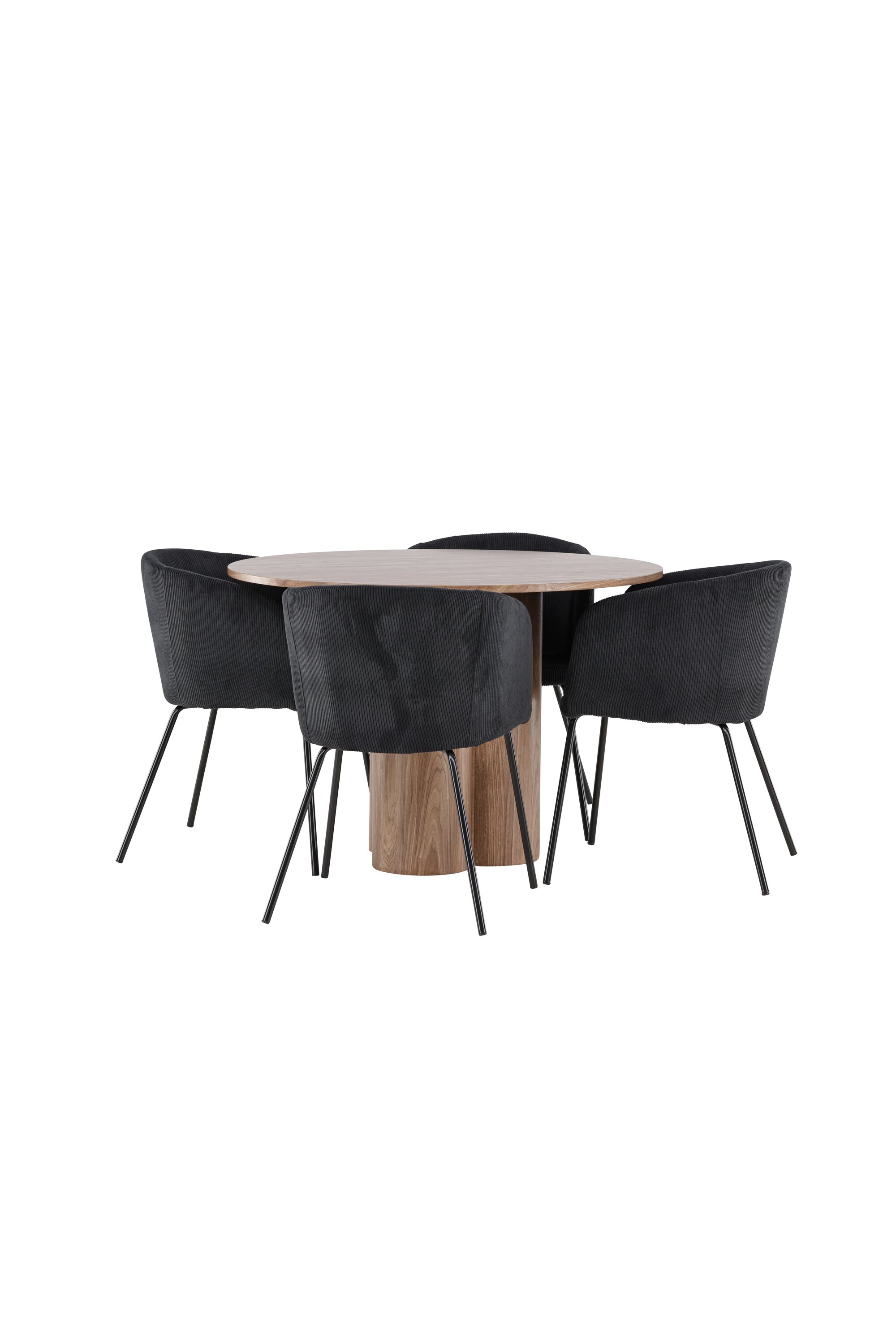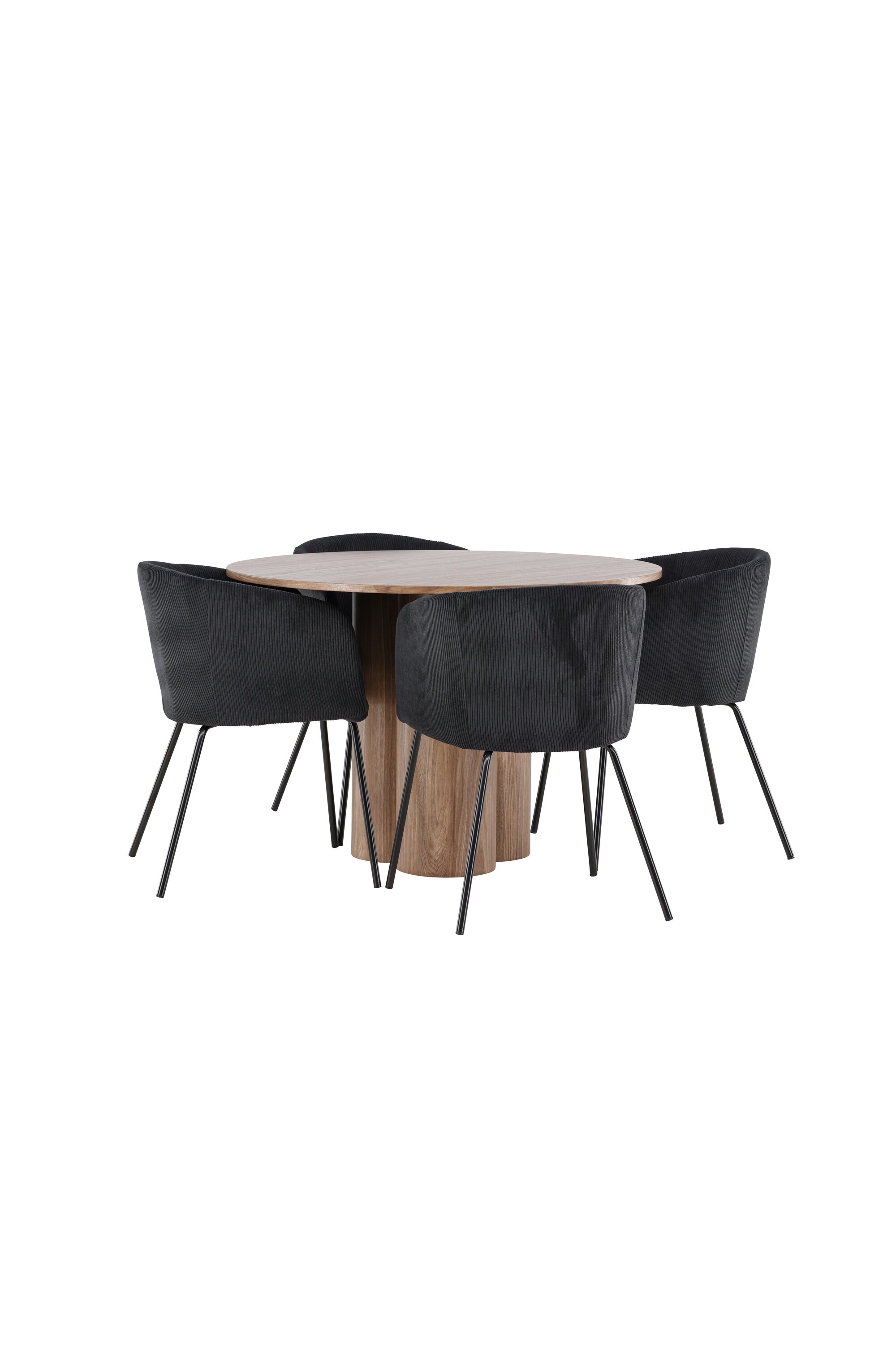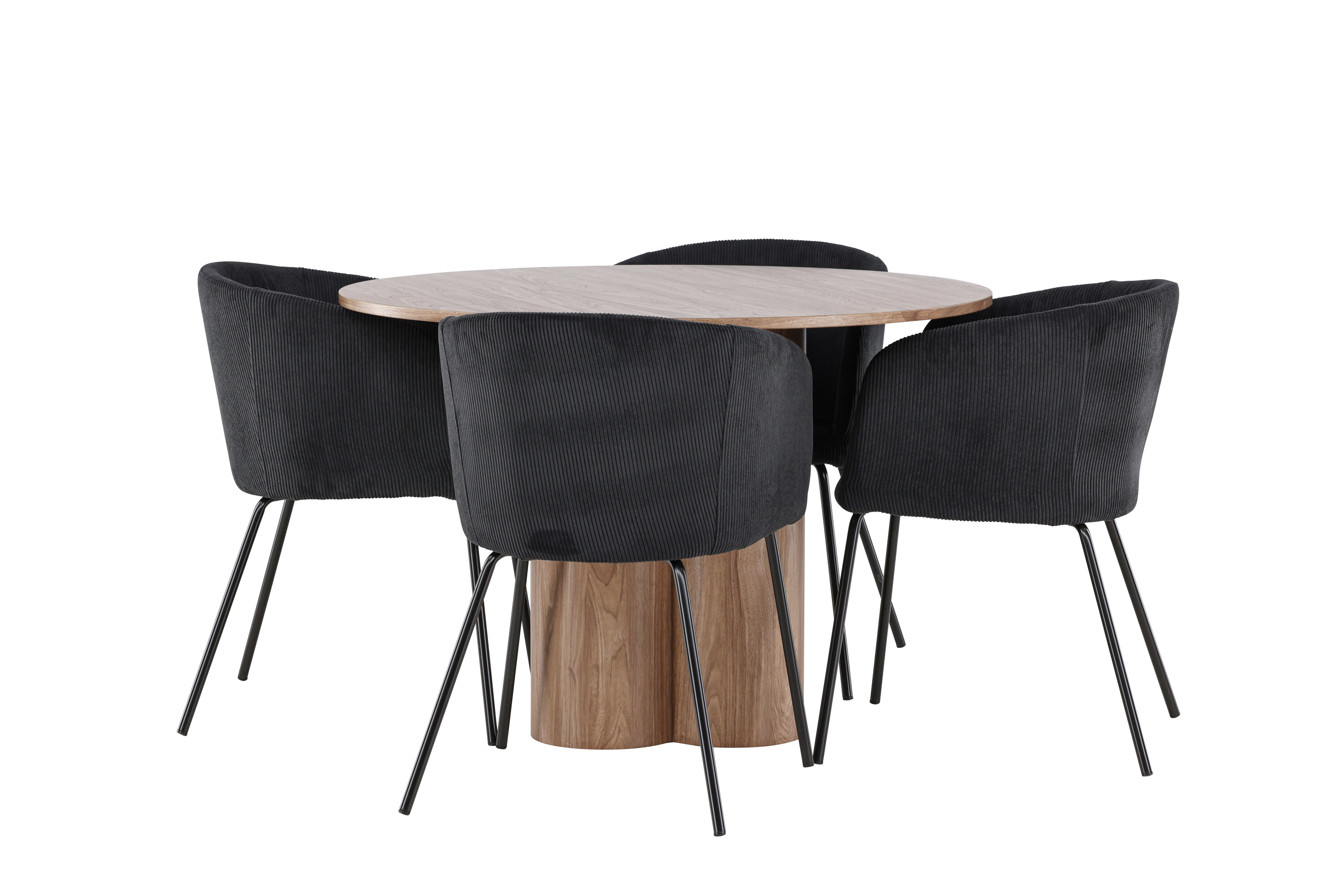 Muutke oma söögituba elegantse söögikomplektiga, mis sisaldab Olivia lauda ja Beriti toole. See moodsa disaini ja ajatu sarmi kombinatsioon loob ideaalse keskkonna nii igapäevasteks eineteks kui ka pidulikeks sündmusteks. Olivia laud on maitsekas ja stiilne lisand teie koju. Mokavärvi ja MDF-konstruktsiooniga laud jätab sooja ja kutsuva mulje. Lauaplaadi läbimõõt on 110 cm, pakkudes piisavalt ruumi nelja inimese mugavaks istumiseks, olles samas piisavalt kompaktne, et mahutada väiksematesse ruumidesse. Olivia laud seisab tugeval alusel stabiilselt ja seda on lihtne puhastada, muutes selle nii praktiliseks kui ka elegantseks. Berit toolid täiendavad Olivia lauda oma keeruka disainiga. Need toolid on kaetud musta Manchesteriga, pakkudes luksuslikku ja mugavat istumiskogemust. Tume polster koos laua mokatooniga loob teie söögituppa harmoonilise ja elegantse atmosfääri. Beriti toolid on disainitud nii stiili kui ka ergonoomikat silmas pidades, mistõttu on neil mõnus pikkade õhtusöökide ajal istuda. Olivia söögikomplekti ja Berit toolidega saate tervikliku söögitoa, mis ühendab funktsionaalsuse elegantse disainiga. Sellest söögikomplektist saab kahtlemata teie kodu keskne punkt, kuhu pere ja sõbrad saavad koguneda veetlevate einete ja meeldiva seltskonna nautimiseks.