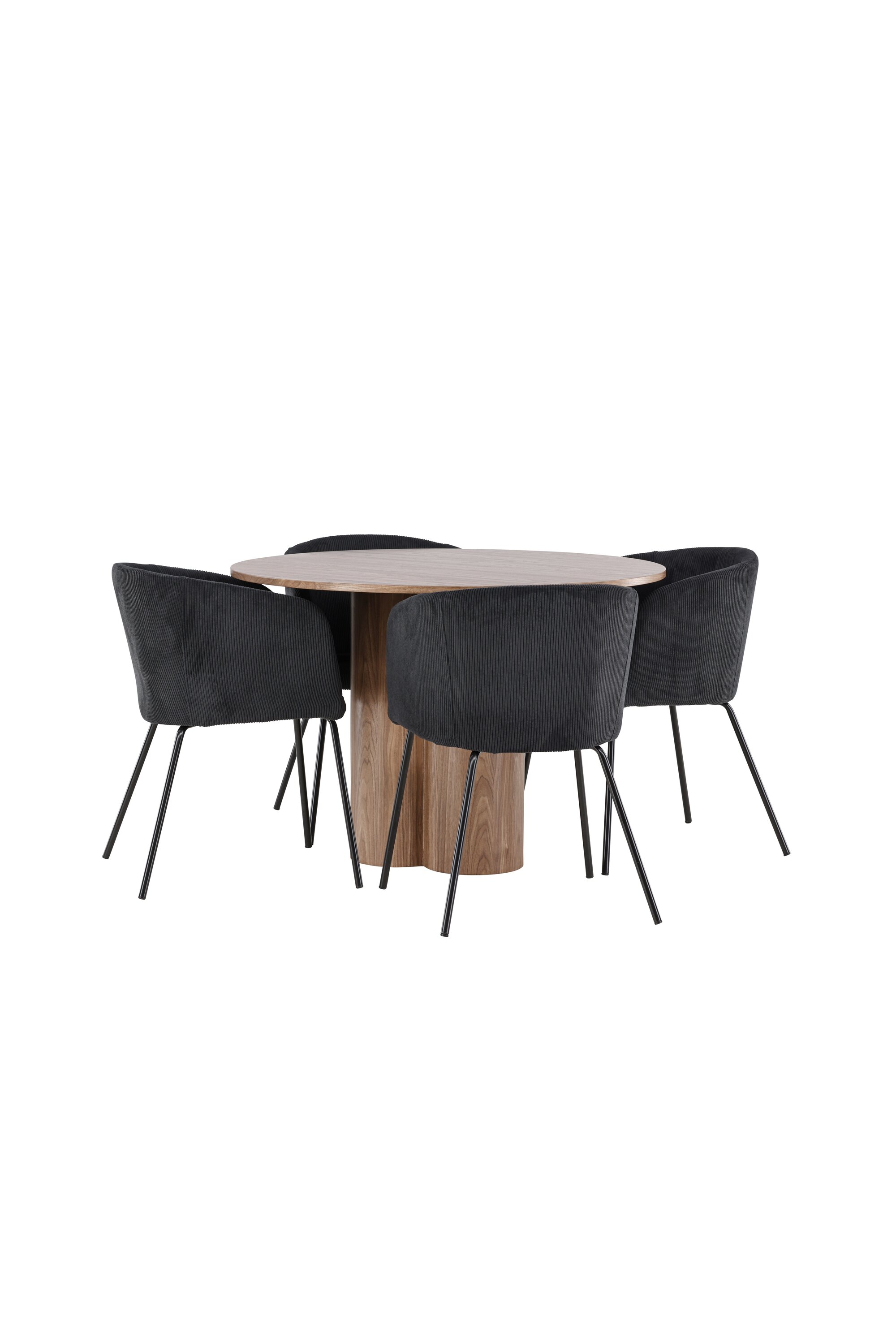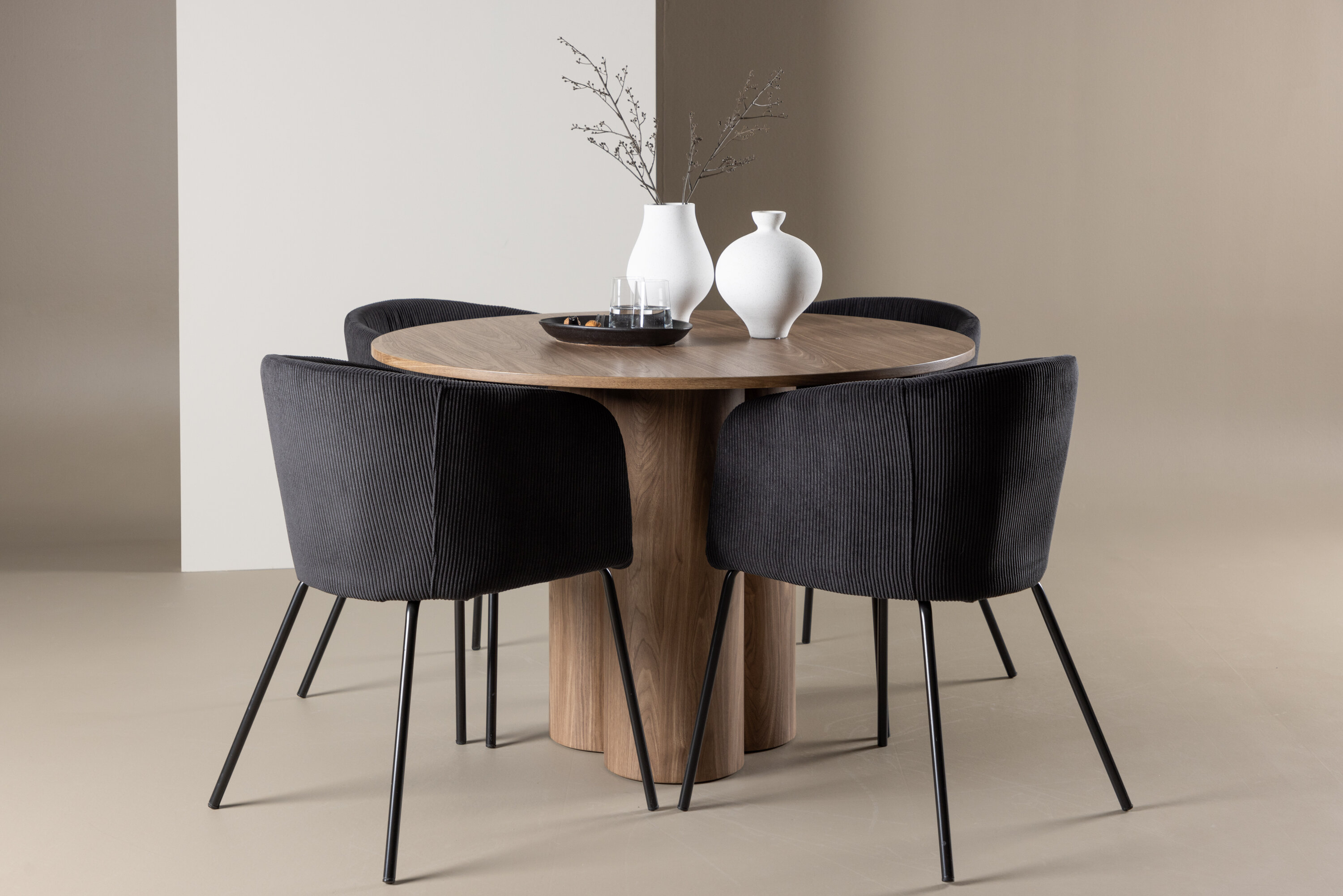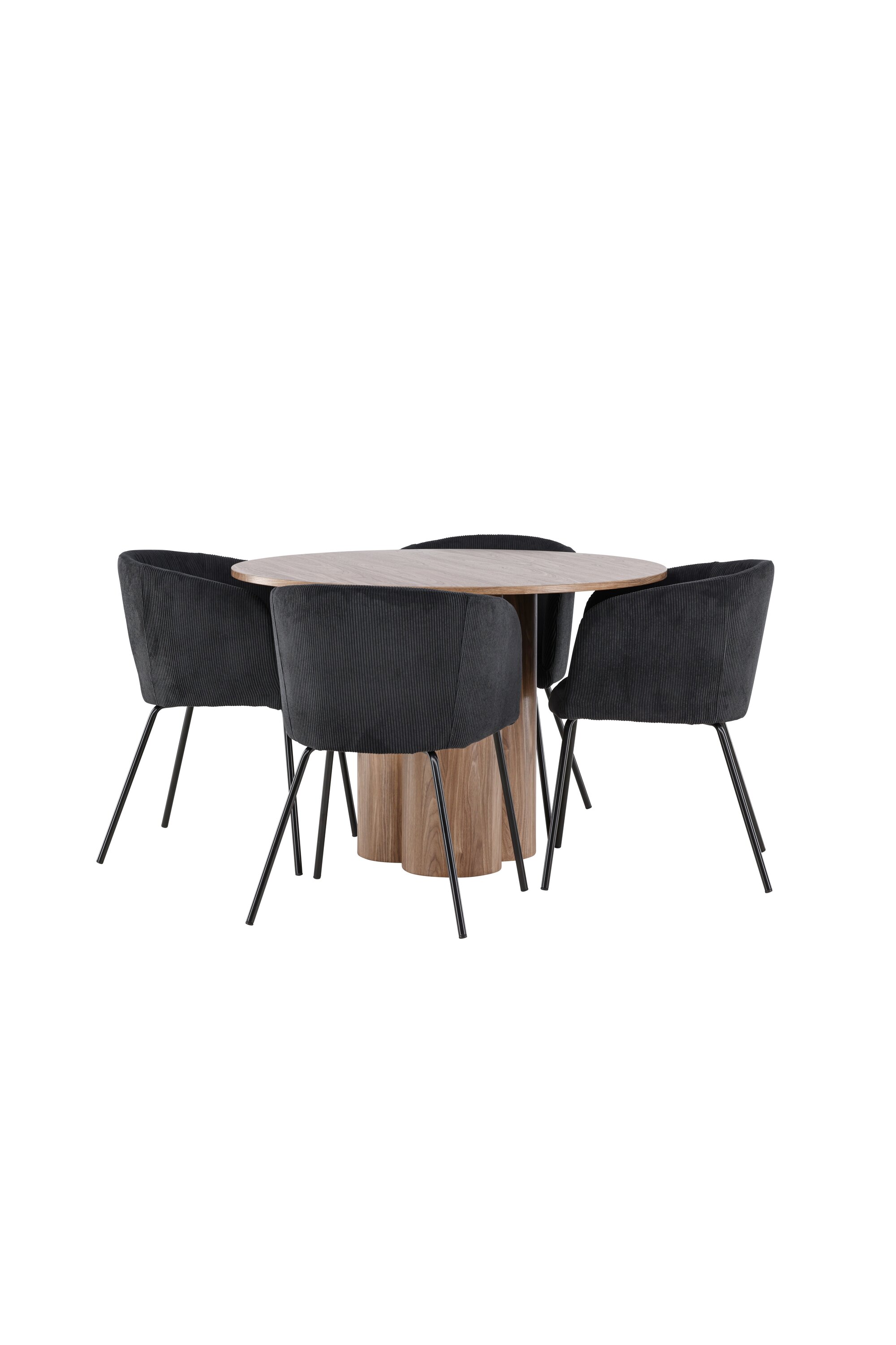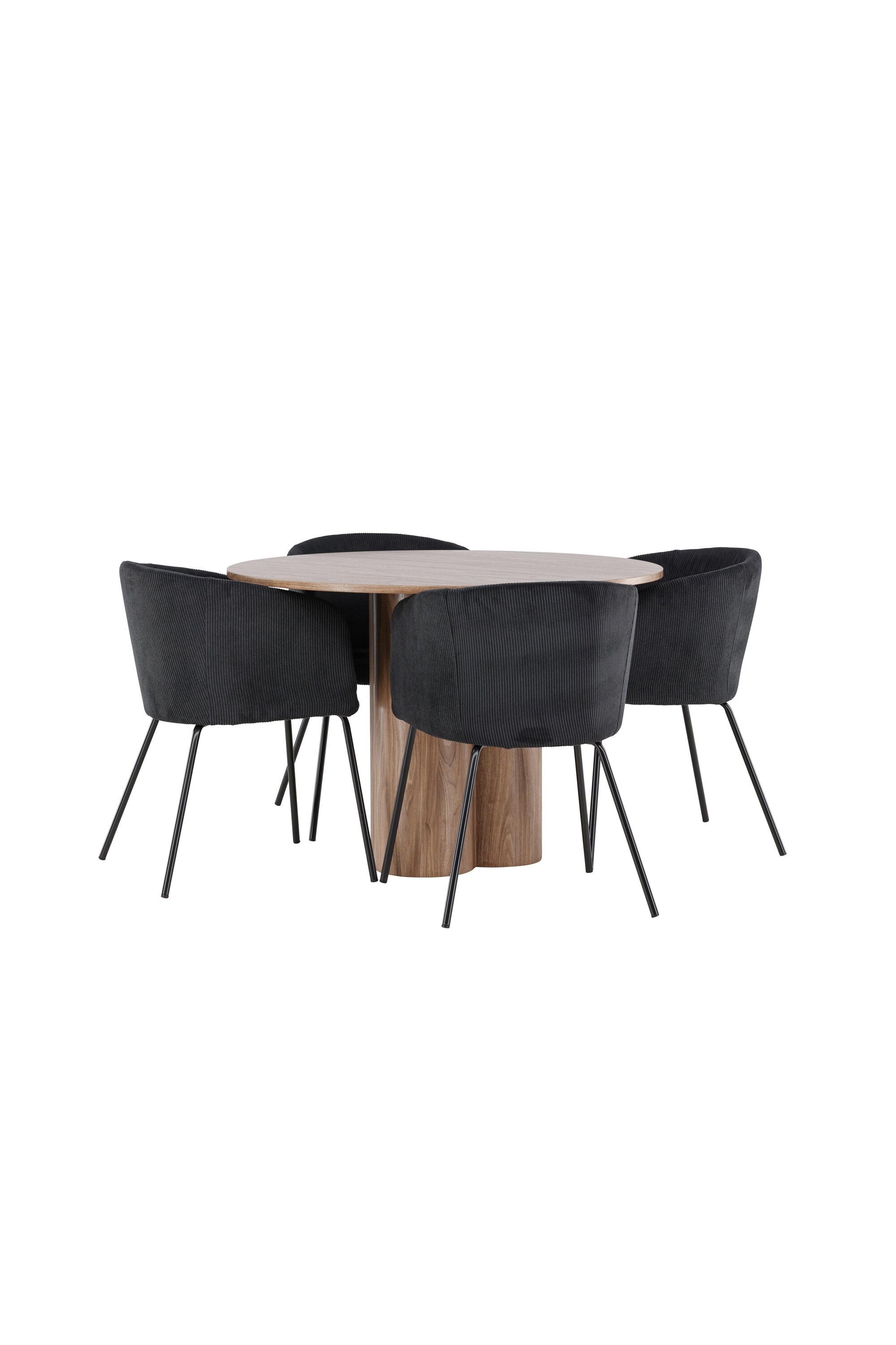 Muutke oma söögituba elegantse söögikomplektiga, mis sisaldab Olivia lauda ja Beriti toole. See moodsa disaini ja ajatu sarmi kombinatsioon loob ideaalse keskkonna nii igapäevasteks eineteks kui ka pidulikeks sündmusteks. Olivia laud on maitsekas ja stiilne lisand teie koju. Mokavärvi ja MDF-konstruktsiooniga laud jätab sooja ja kutsuva mulje. Lauaplaadi läbimõõt on 110 cm, pakkudes piisavalt ruumi nelja inimese mugavaks istumiseks, olles samas piisavalt kompaktne, et mahutada väiksematesse ruumidesse. Olivia laud seisab tugeval alusel stabiilselt ja seda on lihtne puhastada, muutes selle nii praktiliseks kui ka elegantseks. Berit toolid täiendavad Olivia lauda oma keeruka disainiga. Need toolid on kaetud musta Manchesteriga, pakkudes luksuslikku ja mugavat istumiskogemust. Tume polster koos laua mokatooniga loob teie söögituppa harmoonilise ja elegantse atmosfääri. Beriti toolid on disainitud nii stiili kui ka ergonoomikat silmas pidades, mistõttu on neil mõnus pikkade õhtusöökide ajal istuda. Olivia söögikomplekti ja Berit toolidega saate tervikliku söögitoa, mis ühendab funktsionaalsuse elegantse disainiga. Sellest söögikomplektist saab kahtlemata teie kodu keskne punkt, kuhu pere ja sõbrad saavad koguneda veetlevate einete ja meeldiva seltskonna nautimiseks.