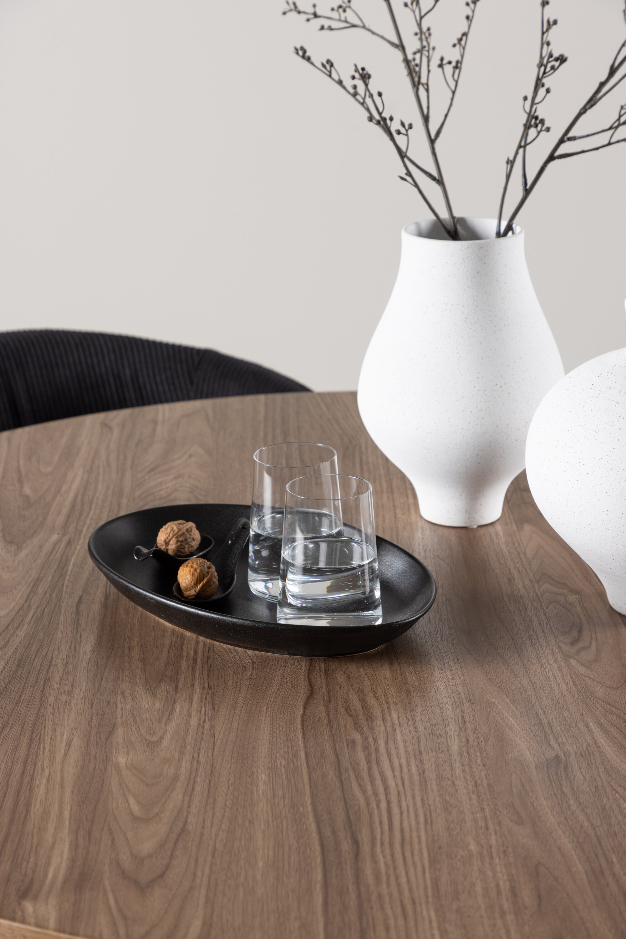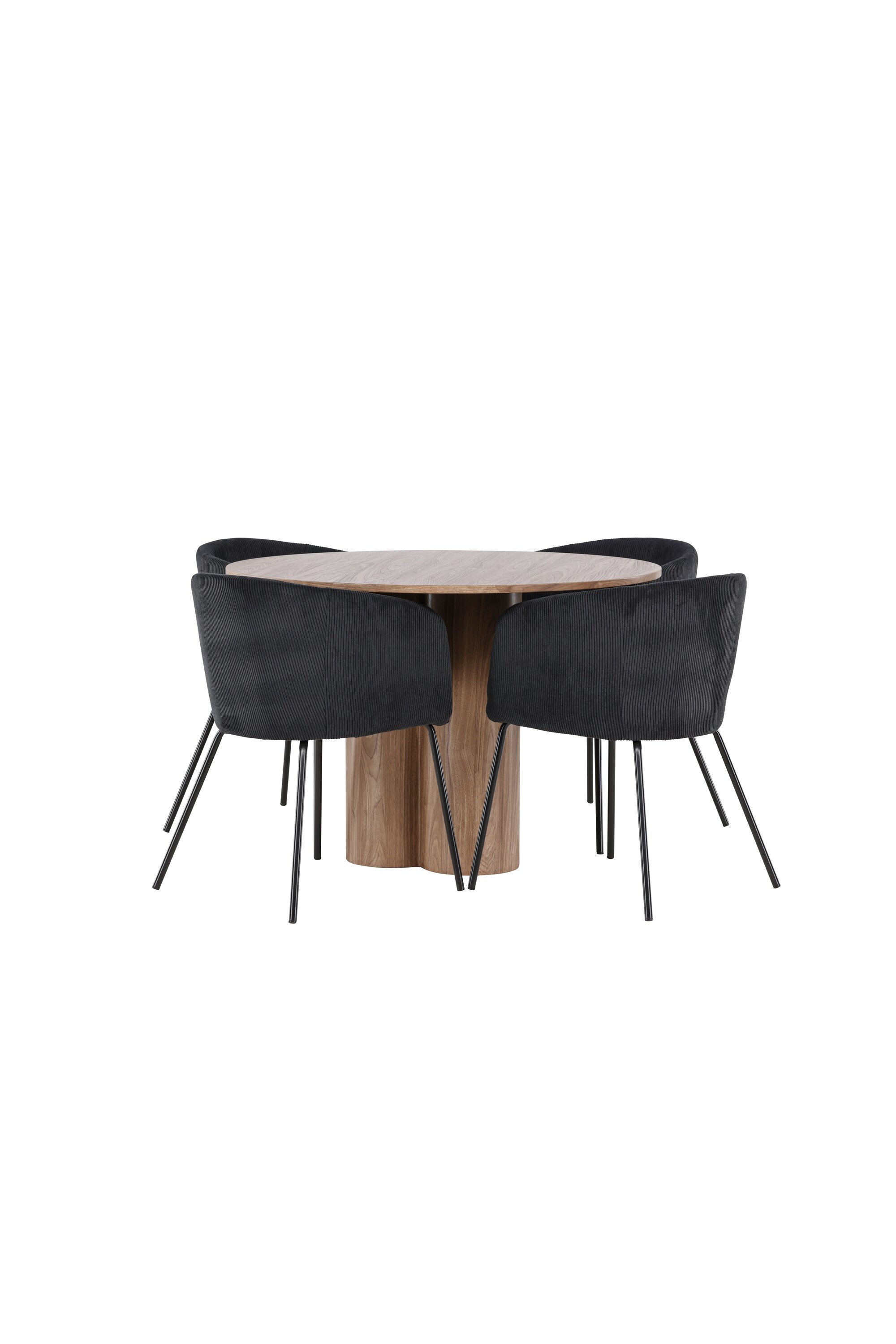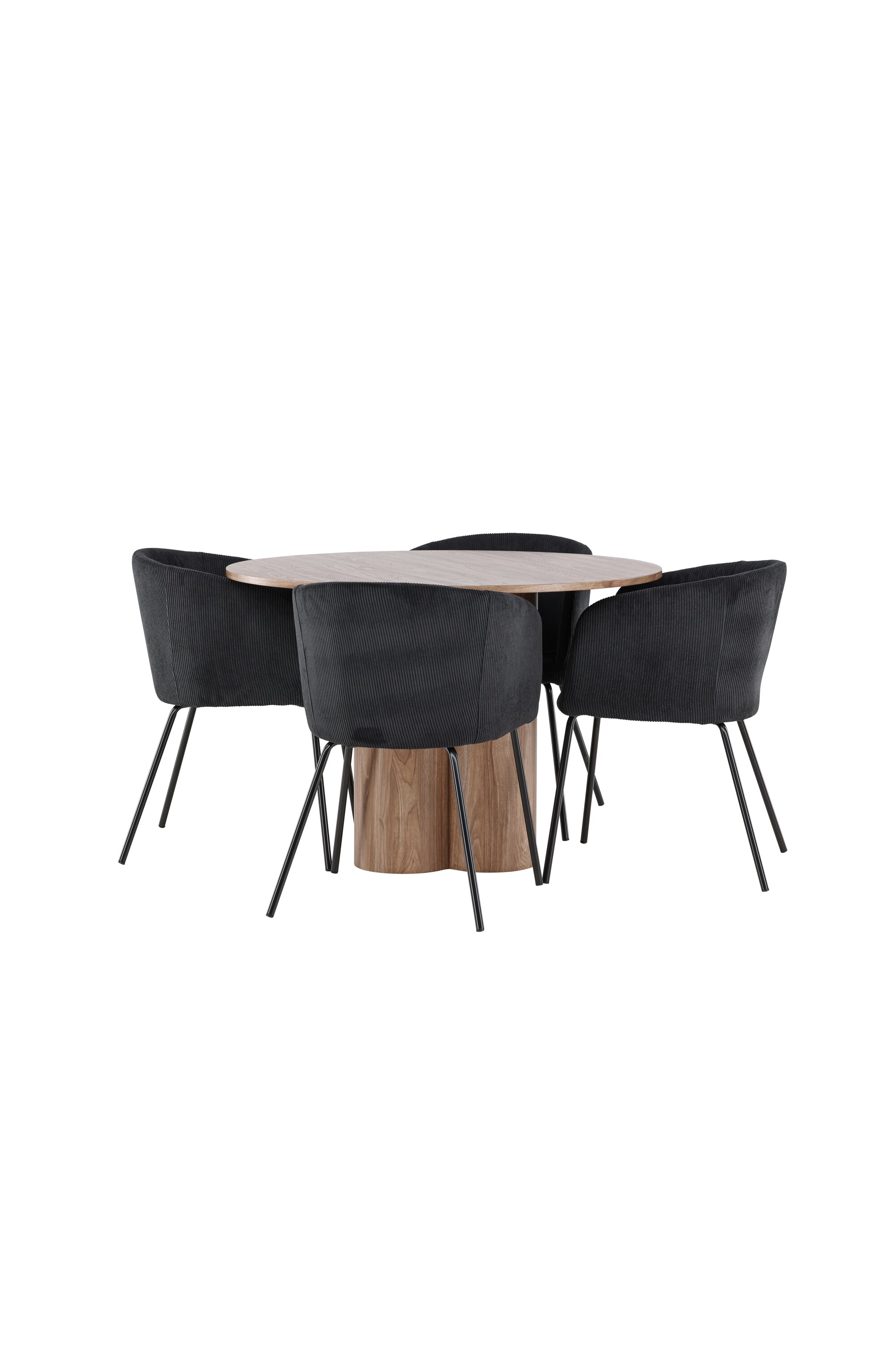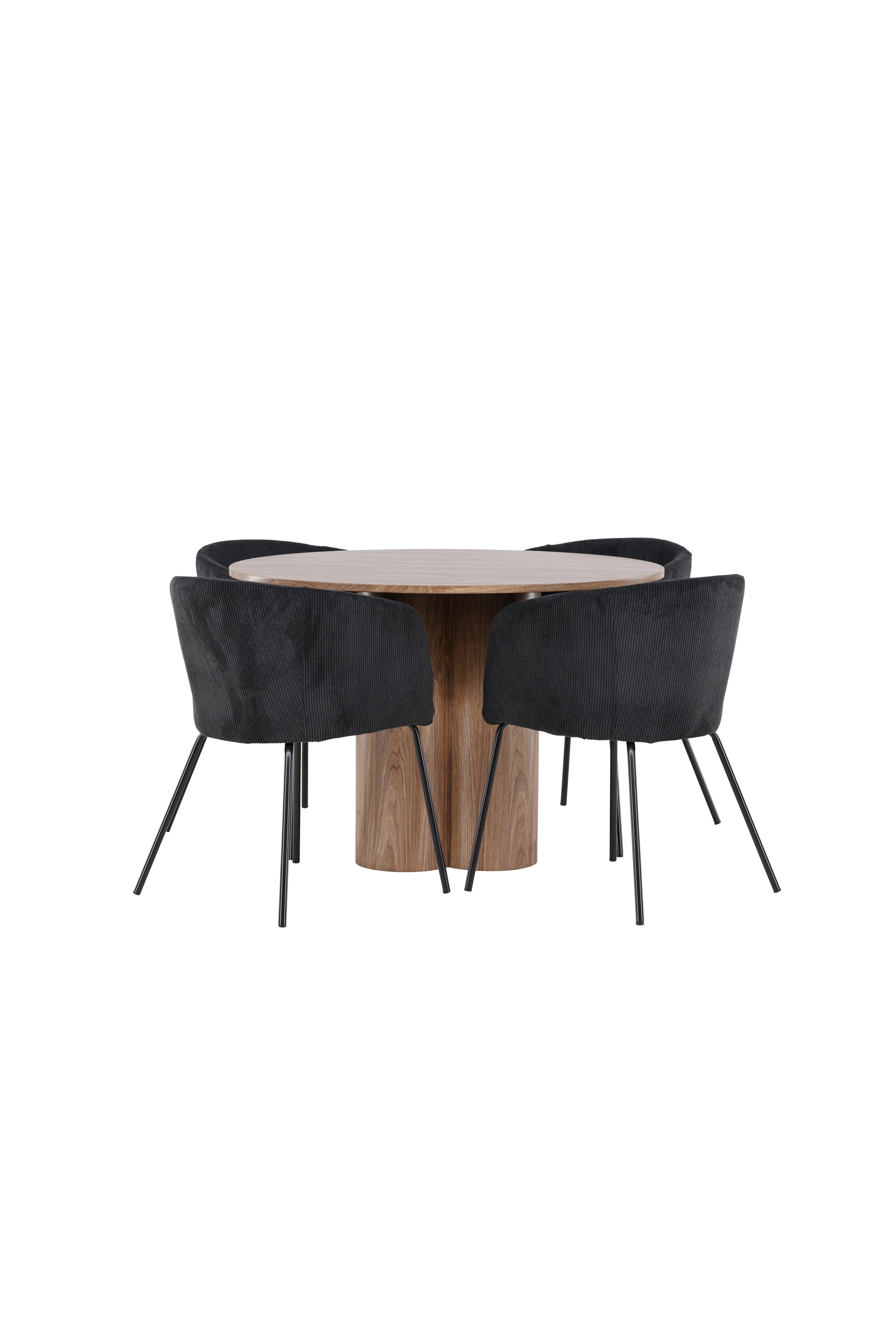 Muutke oma söögituba elegantse söögikomplektiga, mis sisaldab Olivia lauda ja Beriti toole. See moodsa disaini ja ajatu sarmi kombinatsioon loob ideaalse keskkonna nii igapäevasteks eineteks kui ka pidulikeks sündmusteks. Olivia laud on maitsekas ja stiilne lisand teie koju. Mokavärvi ja MDF-konstruktsiooniga laud jätab sooja ja kutsuva mulje. Lauaplaadi läbimõõt on 110 cm, pakkudes piisavalt ruumi nelja inimese mugavaks istumiseks, olles samas piisavalt kompaktne, et mahutada väiksematesse ruumidesse. Olivia laud seisab tugeval alusel stabiilselt ja seda on lihtne puhastada, muutes selle nii praktiliseks kui ka elegantseks. Berit toolid täiendavad Olivia lauda oma keeruka disainiga. Need toolid on kaetud musta Manchesteriga, pakkudes luksuslikku ja mugavat istumiskogemust. Tume polster koos laua mokatooniga loob teie söögituppa harmoonilise ja elegantse atmosfääri. Beriti toolid on disainitud nii stiili kui ka ergonoomikat silmas pidades, mistõttu on neil mõnus pikkade õhtusöökide ajal istuda. Olivia söögikomplekti ja Berit toolidega saate tervikliku söögitoa, mis ühendab funktsionaalsuse elegantse disainiga. Sellest söögikomplektist saab kahtlemata teie kodu keskne punkt, kuhu pere ja sõbrad saavad koguneda veetlevate einete ja meeldiva seltskonna nautimiseks.