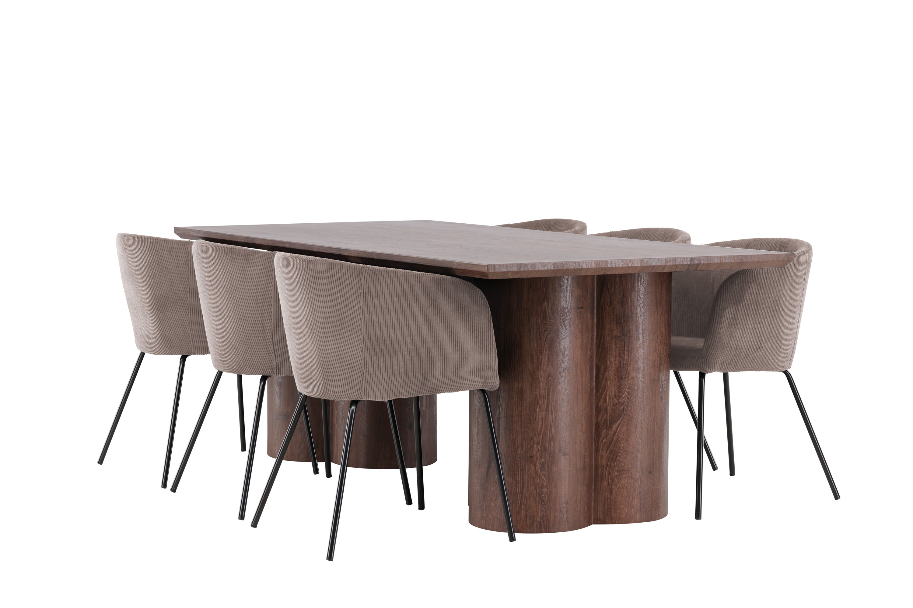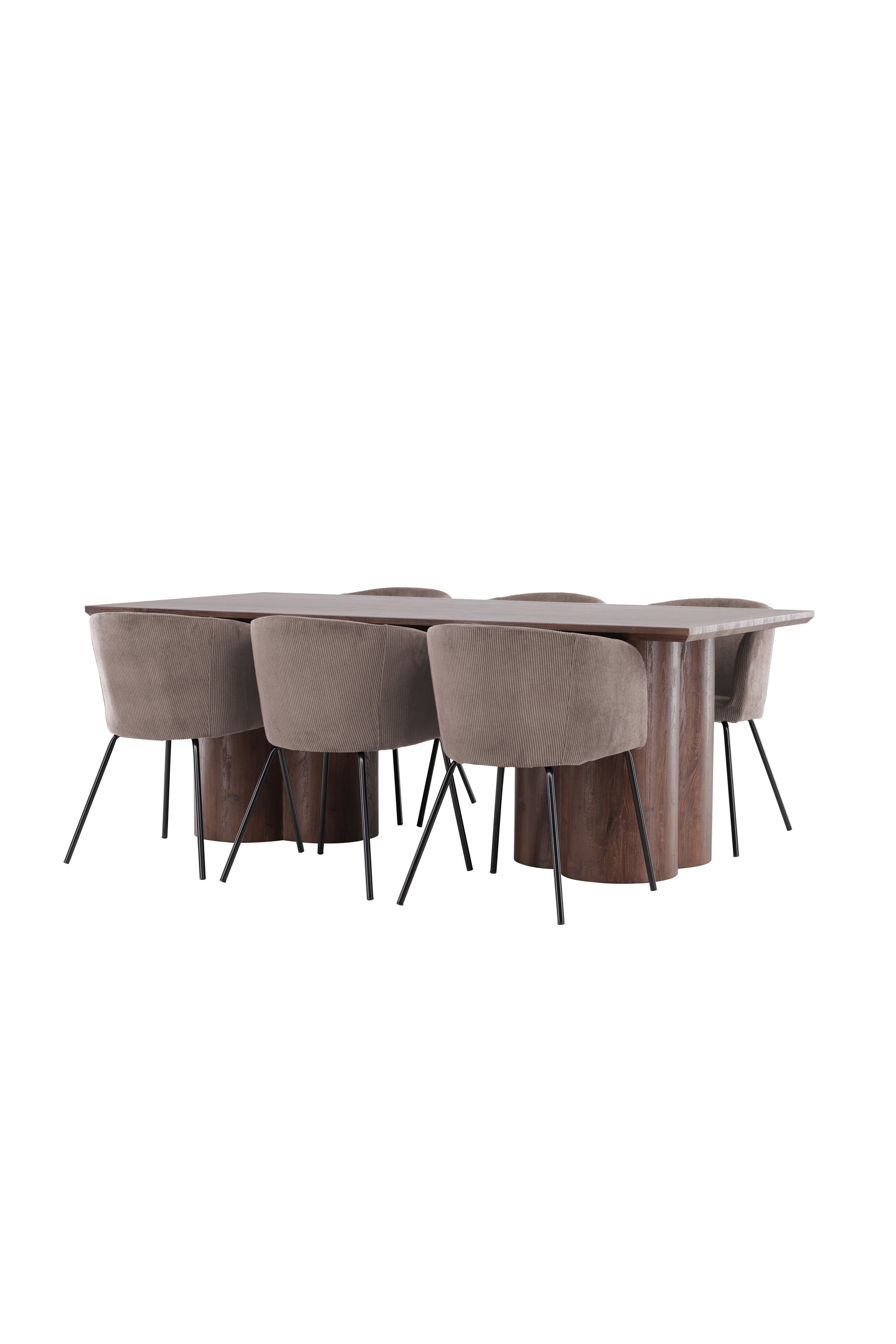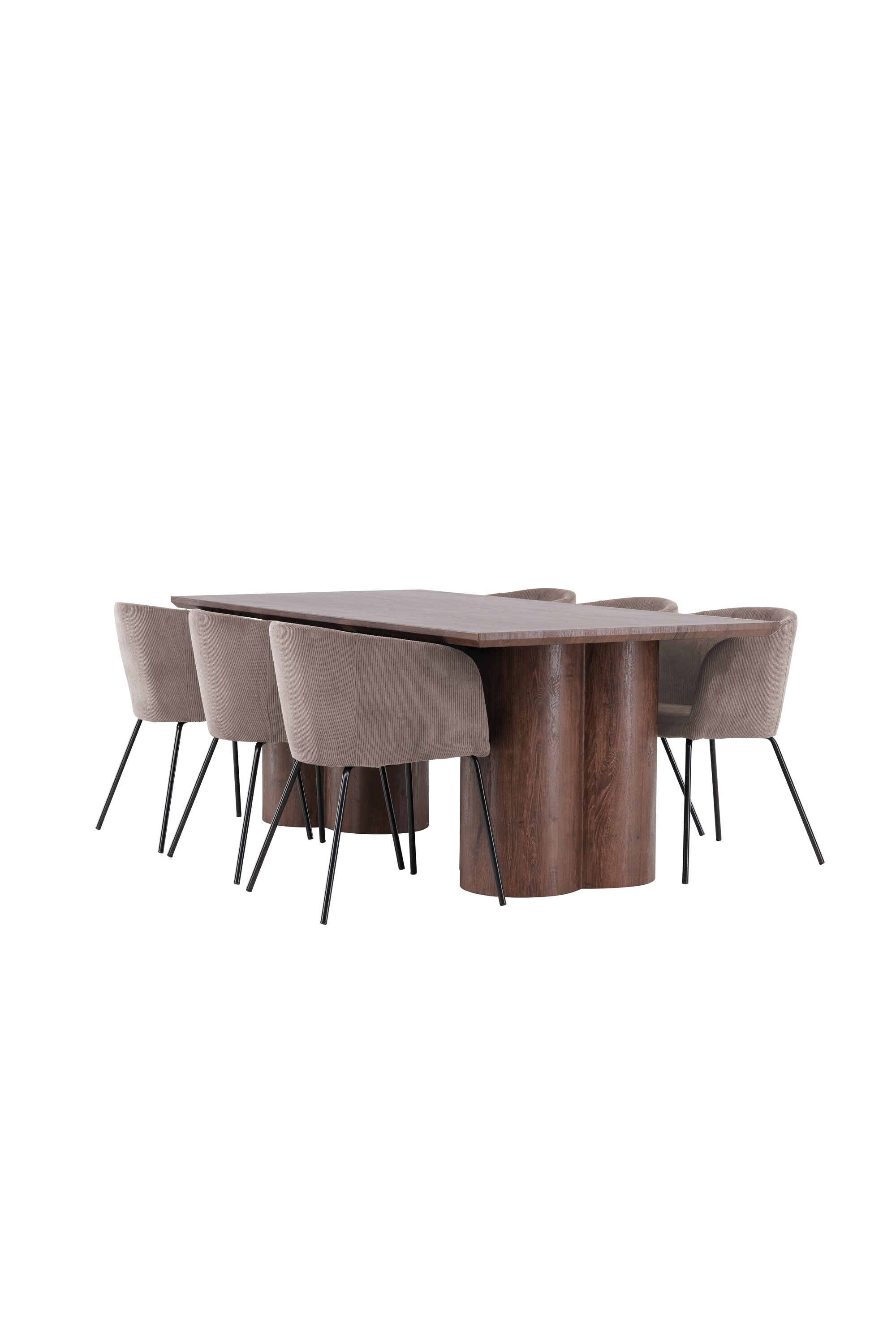 Muutke oma söögituba meie keeruka söögikomplektiga, mis ühendab endas kaasaegse disaini ja suurepärase mugavuse. See söögikomplekt koosneb stiilsetest Berit toolidest ja elegantsest Olivia söögilauast, mistõttu on see ideaalne igat tüüpi einete ja koosviibimiste jaoks. Tutvuge söögitooliga Berit – ideaalne valik moodsa ja stiilse söögitoa sisekujunduse jaoks. Berit on parim kombinatsioon stiilist ja mugavusest teie koju. Elegantse pruuni värvi ja pehme polüester velvetist materjaliga Berit pakub luksuslikku ja mugavat istumiskogemust söögilauas. Selle lihtsat ja kaasaegset disaini täiendavad mustast terasest jalad, mis annavad toolile tugeva ja elegantse aluse. Berit söögitool pole mitte ainult stiilne, vaid ka funktsionaalne ja mitmekülgne. Selle sügav iste muudab selle mugavaks istuda pikkade söögikordade või laua taga vestluste ajal, muutes selle suurepäraseks kaaslaseks nii igapäevaseks kui ka erilisteks sündmusteks. Avasta Olivia söögilaud – harmooniline segu stiilist ja funktsionaalsusest. Suurte mõõtmetega 100×210 cm pakub Olivia palju ruumi lähedaste kogumiseks õhtusöökidel ja seltskondlikel üritustel. MDF materjalist ja mokavärvi viimistlusega Olivia toob teie koju sooja ja kutsuva atmosfääri. Selle neutraalne disain võimaldab sellel hästi sulanduda erinevate interjööri stiilidega, luues samas rahuliku ja külalislahke tunde. Olivia söögilaud on midagi enamat kui lihtsalt mööbliese; see on koht, kus koos sõprade ja perega luuakse mälestusi. Olgu Olivia teie koosviibimiste keskpunkt ja looge koos sooje ja meeldejäävaid hetki. Berit toolide ja Olivia söögilauaga saate söögikomplekti, mis ühendab esteetika ja funktsionaalsuse parimal võimalikul viisil. Täiustage oma söögituba selle elegantse ja mitmekülgse söögikomplektiga.