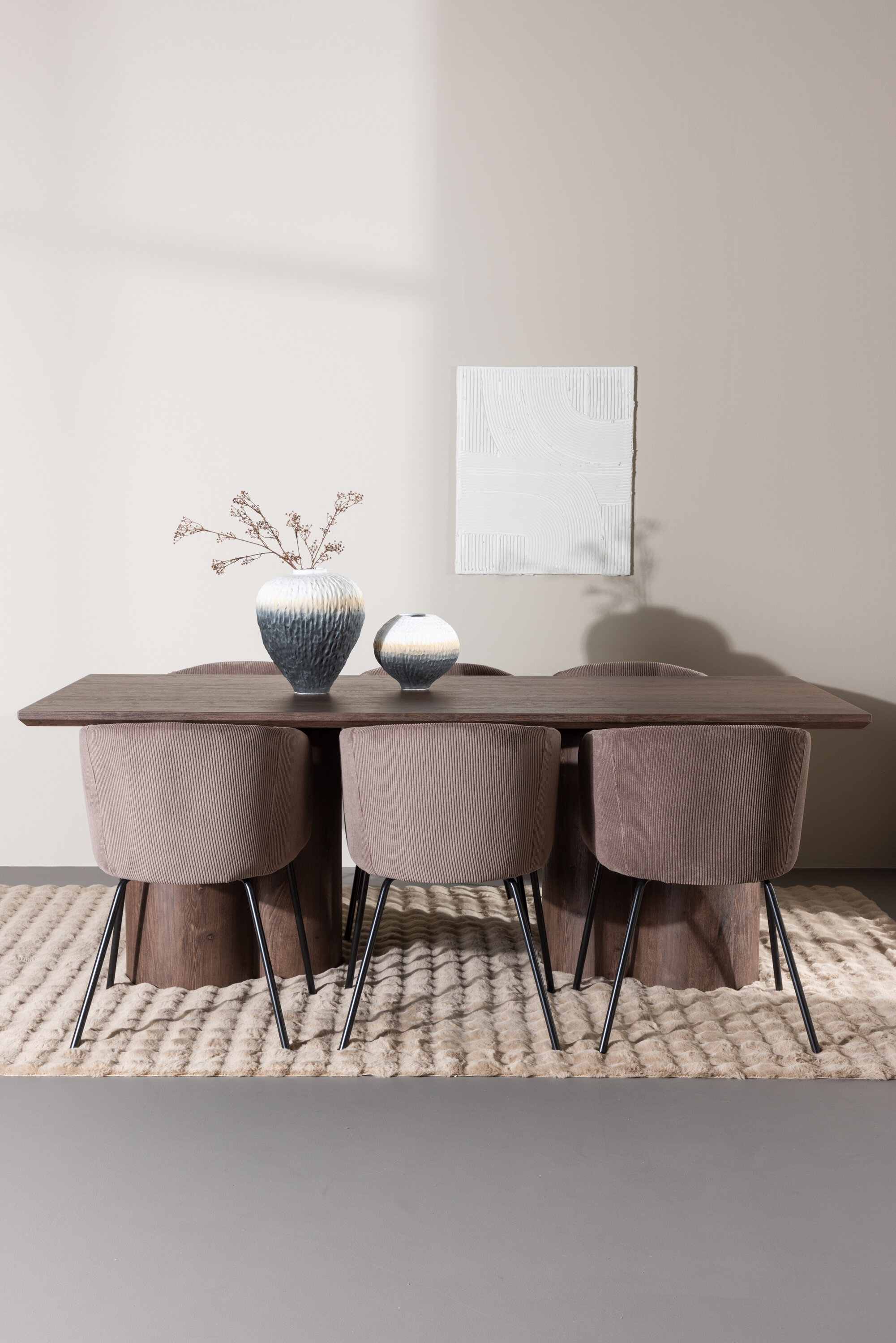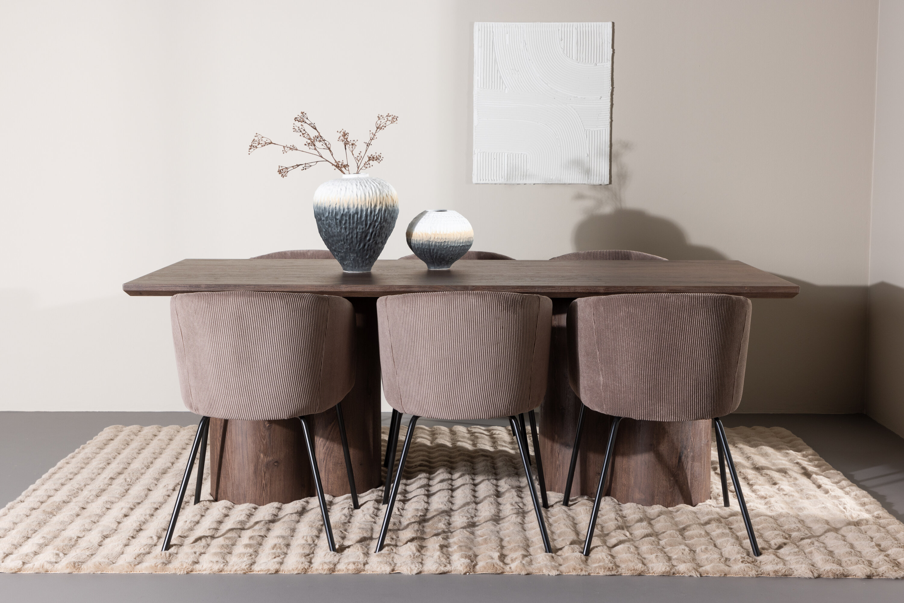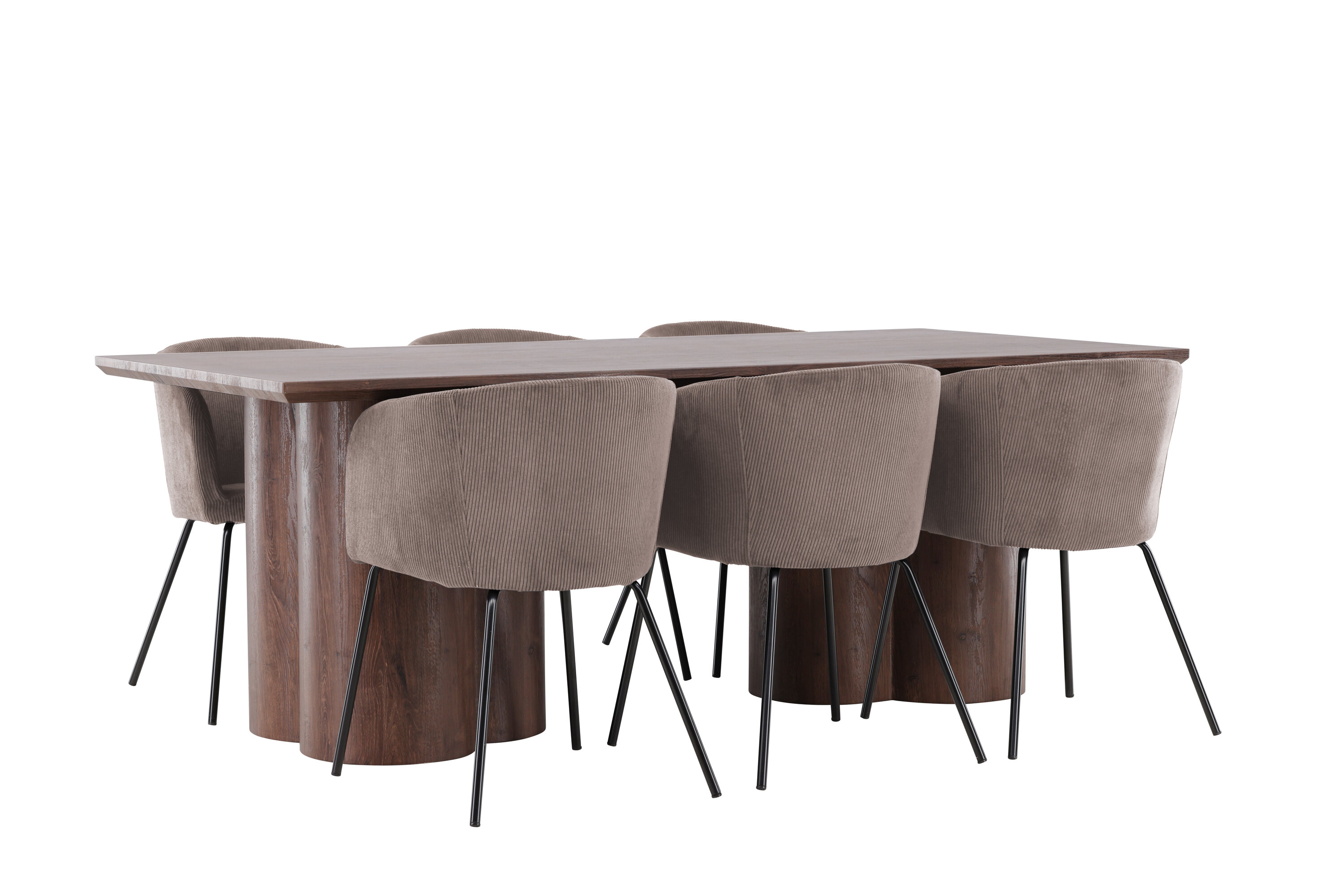 Muutke oma söögituba meie keeruka söögikomplektiga, mis ühendab endas kaasaegse disaini ja suurepärase mugavuse. See söögikomplekt koosneb stiilsetest Berit toolidest ja elegantsest Olivia söögilauast, mistõttu on see ideaalne igat tüüpi einete ja koosviibimiste jaoks. Tutvuge söögitooliga Berit – ideaalne valik moodsa ja stiilse söögitoa sisekujunduse jaoks. Berit on parim kombinatsioon stiilist ja mugavusest teie koju. Elegantse pruuni värvi ja pehme polüester velvetist materjaliga Berit pakub luksuslikku ja mugavat istumiskogemust söögilauas. Selle lihtsat ja kaasaegset disaini täiendavad mustast terasest jalad, mis annavad toolile tugeva ja elegantse aluse. Berit söögitool pole mitte ainult stiilne, vaid ka funktsionaalne ja mitmekülgne. Selle sügav iste muudab selle mugavaks istuda pikkade söögikordade või laua taga vestluste ajal, muutes selle suurepäraseks kaaslaseks nii igapäevaseks kui ka erilisteks sündmusteks. Avasta Olivia söögilaud – harmooniline segu stiilist ja funktsionaalsusest. Suurte mõõtmetega 100×210 cm pakub Olivia palju ruumi lähedaste kogumiseks õhtusöökidel ja seltskondlikel üritustel. MDF materjalist ja mokavärvi viimistlusega Olivia toob teie koju sooja ja kutsuva atmosfääri. Selle neutraalne disain võimaldab sellel hästi sulanduda erinevate interjööri stiilidega, luues samas rahuliku ja külalislahke tunde. Olivia söögilaud on midagi enamat kui lihtsalt mööbliese; see on koht, kus koos sõprade ja perega luuakse mälestusi. Olgu Olivia teie koosviibimiste keskpunkt ja looge koos sooje ja meeldejäävaid hetki. Berit toolide ja Olivia söögilauaga saate söögikomplekti, mis ühendab esteetika ja funktsionaalsuse parimal võimalikul viisil. Täiustage oma söögituba selle elegantse ja mitmekülgse söögikomplektiga.