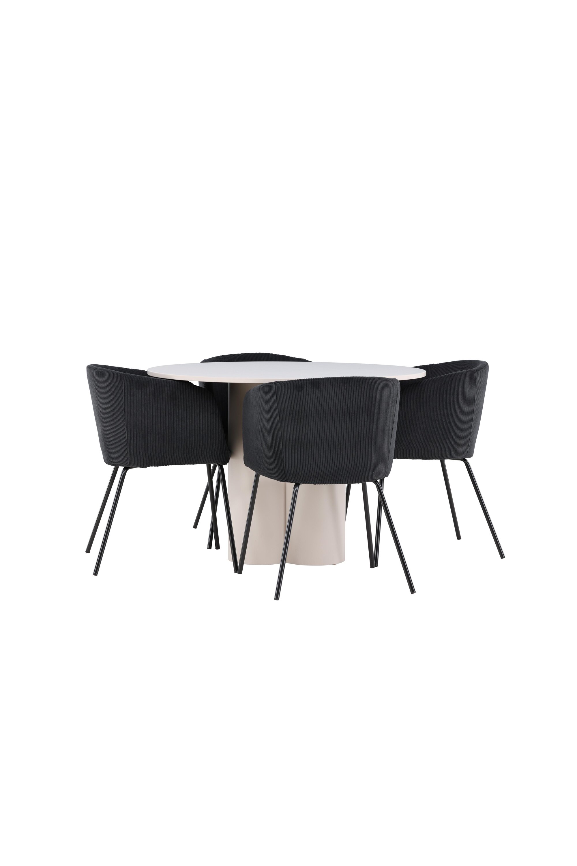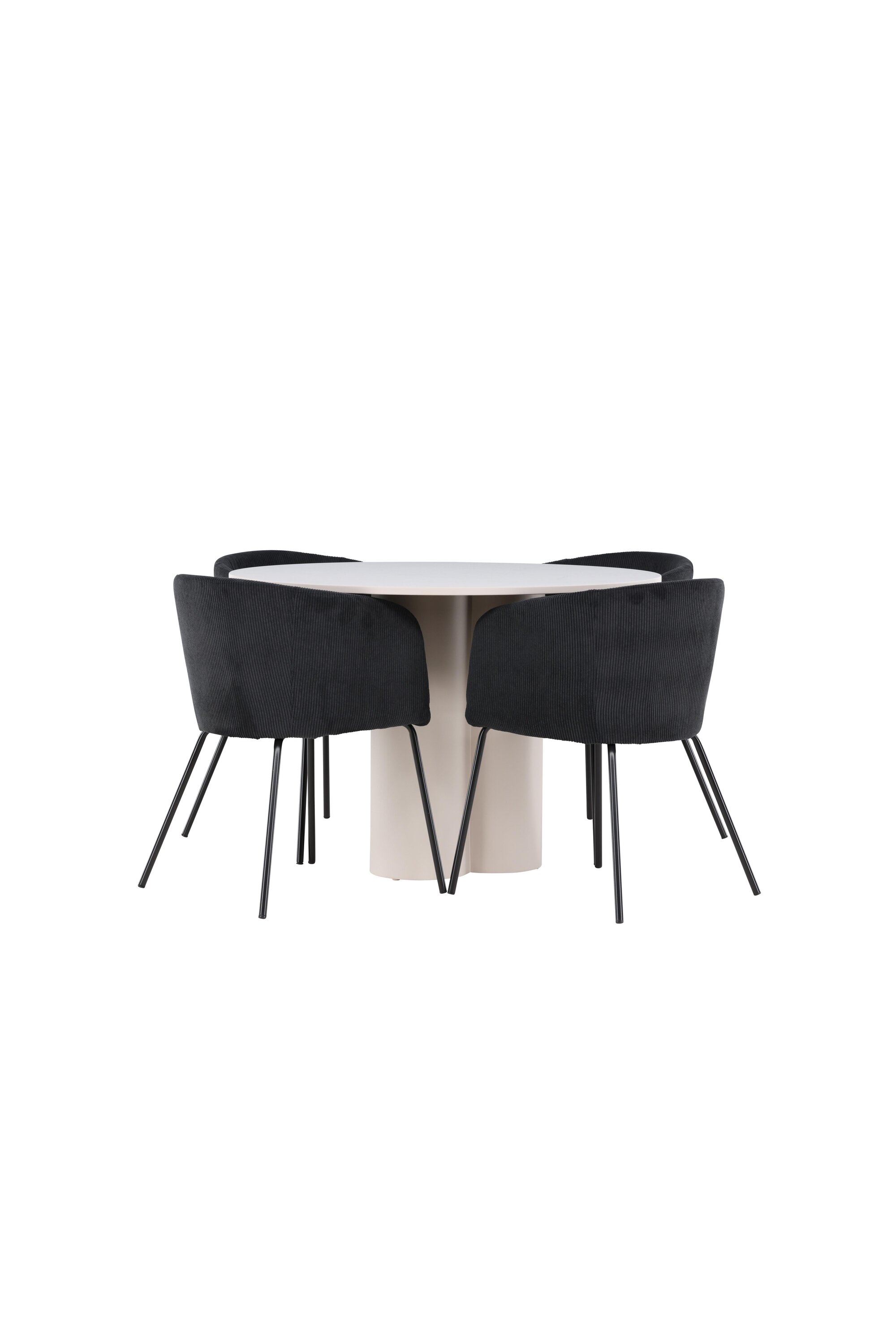 Looge elegantne ja kutsuv söögituba meie stiilse söögigrupiga, mis ühendab Olivia laua ja keerukate Beriti toolidega. See söögituba, mis sobib ideaalselt nii igapäevasteks õhtusöökideks kui ka pidulikeks sündmusteks, loob teie söögitoale kaasaegse ja harmoonilise atmosfääri. MDF-st valmistatud Olivia laual on helebeež värv, mis lisab teie söögitoale sooja ja kutsuva tunde. 110 cm läbimõõduga laud pakub rohkelt ruumi söögiks ja vestlusteks, ümar kuju loob aga tasakaalustatud ja sotsiaalse keskkonna. Laua vastupidav konstruktsioon tagab pikaajalise kasutuse ja stabiilsuse. Neli Beriti tooli täiendavad lauda suurepäraselt oma elegantsete musta velvetist kaetud istmetega. Need toolid pakuvad nii mugavust kui ka stiili, muutes need ideaalseks pikaks ja nauditavaks õhtusöögiks pere ja sõpradega. Nende kaasaegne disain koos kõrgete seljatugede ja pehmete istmetega annab teie söögitoale rafineeritud ja kaasaegse ilme. See söögituba on ideaalne kombinatsioon esteetikast ja funktsionaalsusest, mistõttu on see suurepärane valik neile, kes otsivad elegantset ja mugavat söögituba. Täiustage oma söögituba Olivia laua ja Berit toolide kombinatsiooniga ning looge koht, kus jagatakse mälestusi ja rõõmu.