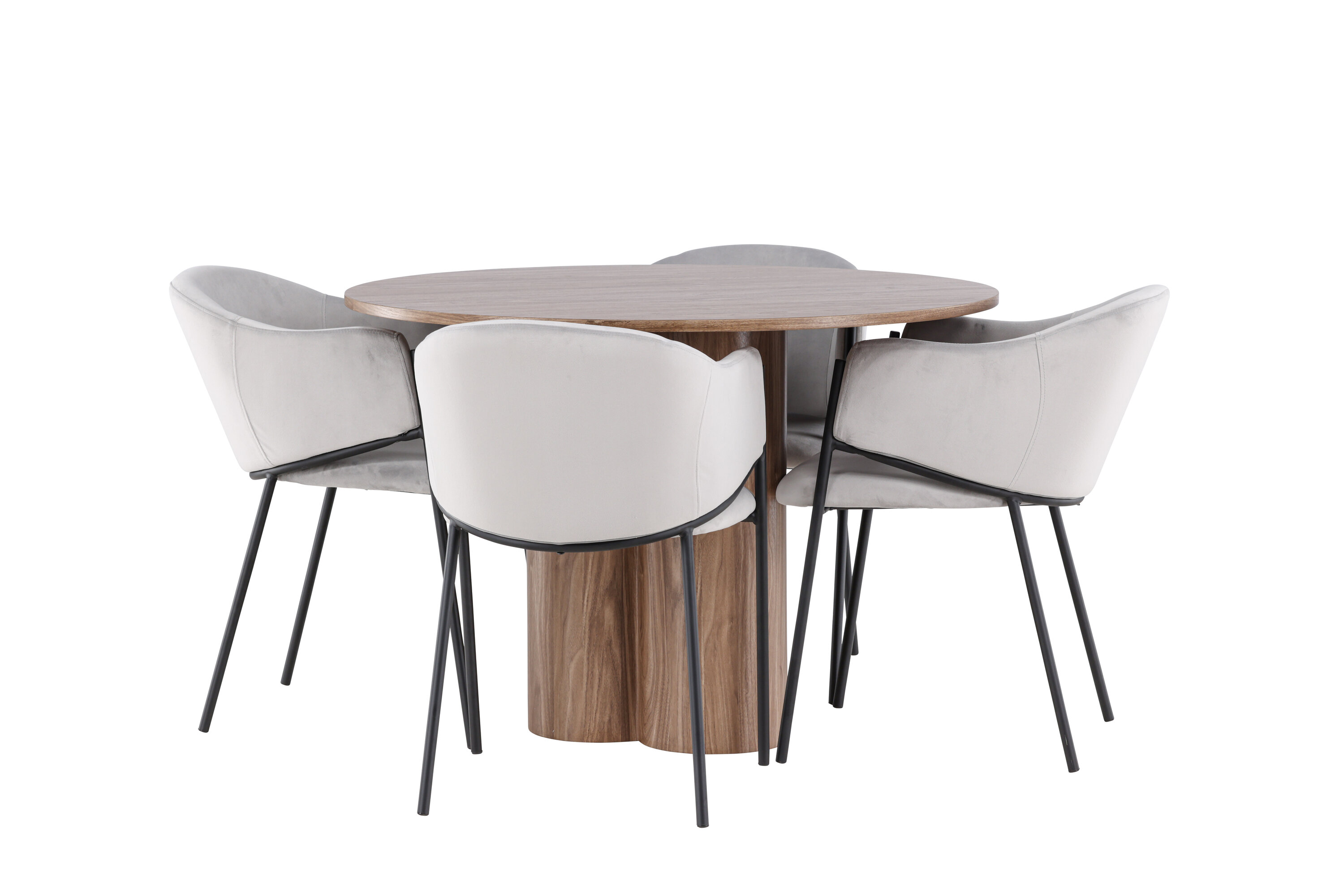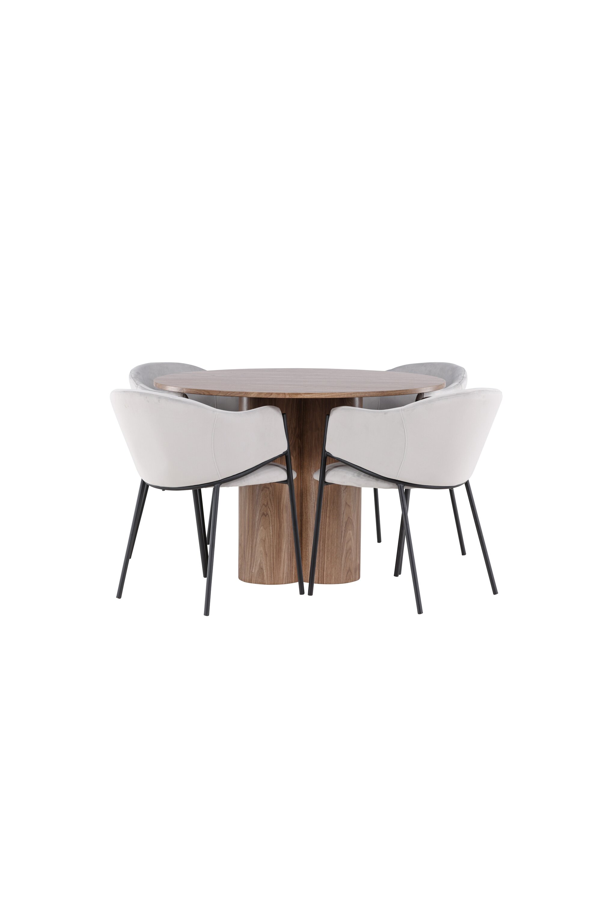 Avastage oma koju ideaalne söögikomplekt Olivia söögilaua ja Evelina toolidega. Olivia söögilaud on kutsuv ja elegantne mööbliese, mis oma 110 cm läbimõõduga sobib suurepäraselt sõprade ja pere kokkusaamiseks, et veeta mõnusaid eineid ja mõnusaid hetki. Oma lummava mokavärvi ja skandinaavialiku disainiga ühendab see lihtsuse ja stiili, muutes selle ajatuks valikuks igasse ruumi. Olgu siis lõdvestunud hiline hommikueine või pidulik õhtusöök – Olivia söögilaud on garanteeritud pilgupüüdja. Täiendage söögilauda meie Evelina toolidega, mis pakuvad nostalgilist ilmet ja luksuslikku veetlust. Nendel toolidel on täielikult polsterdatud iste, millel on helehallist sametkangast ümar seljatugi ja dekoratiivne, minimalistlik must terasraam. Trendikas disain avaldab muljet ning loob teie söögilaua ümber stiilse ja mugava keskkonna. Istuge mugavalt ja nautige oma sööki nendes elegantsetes söögitoolides, mis on täiuslikult kooskõlas praeguste trendidega.