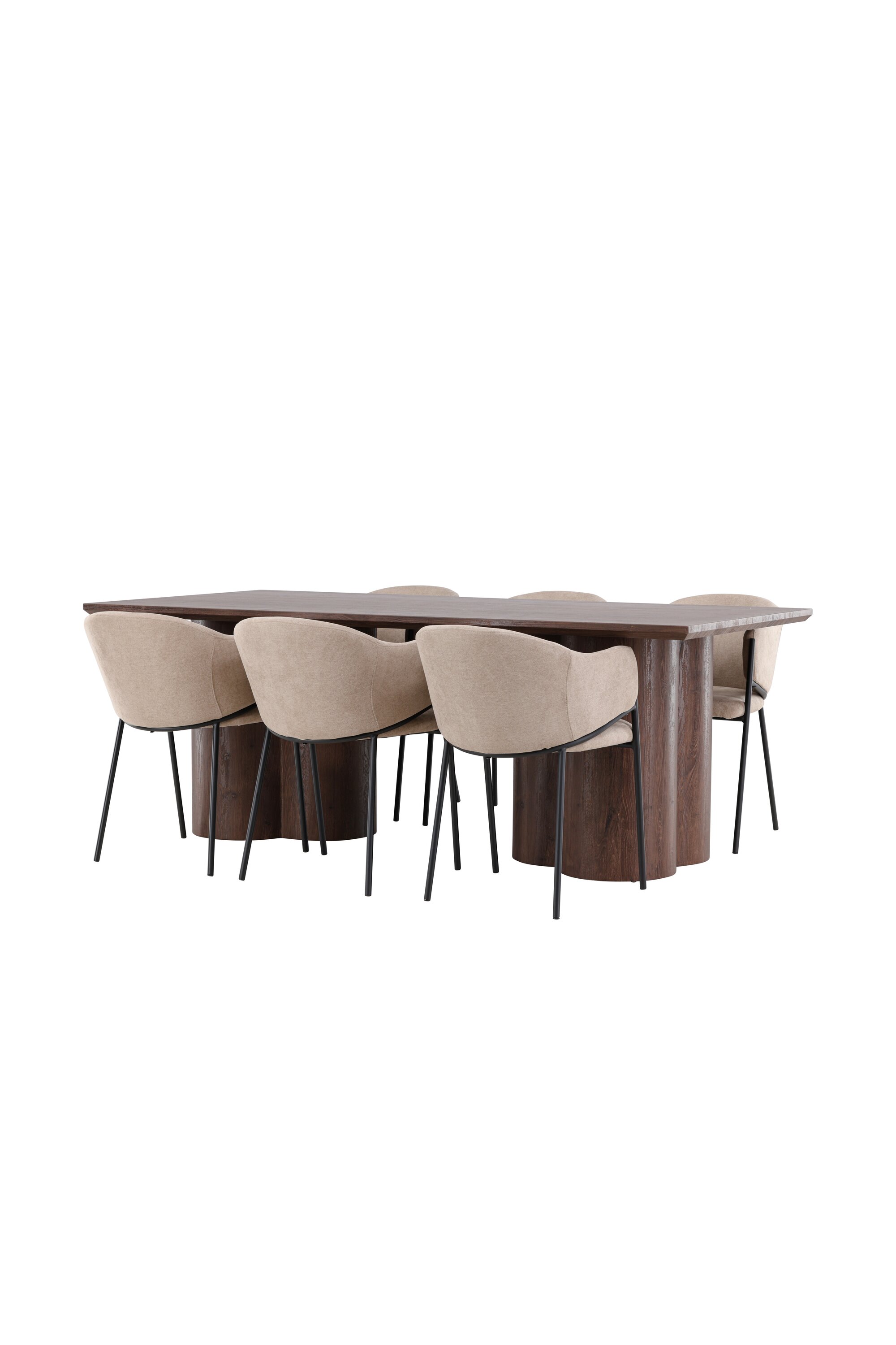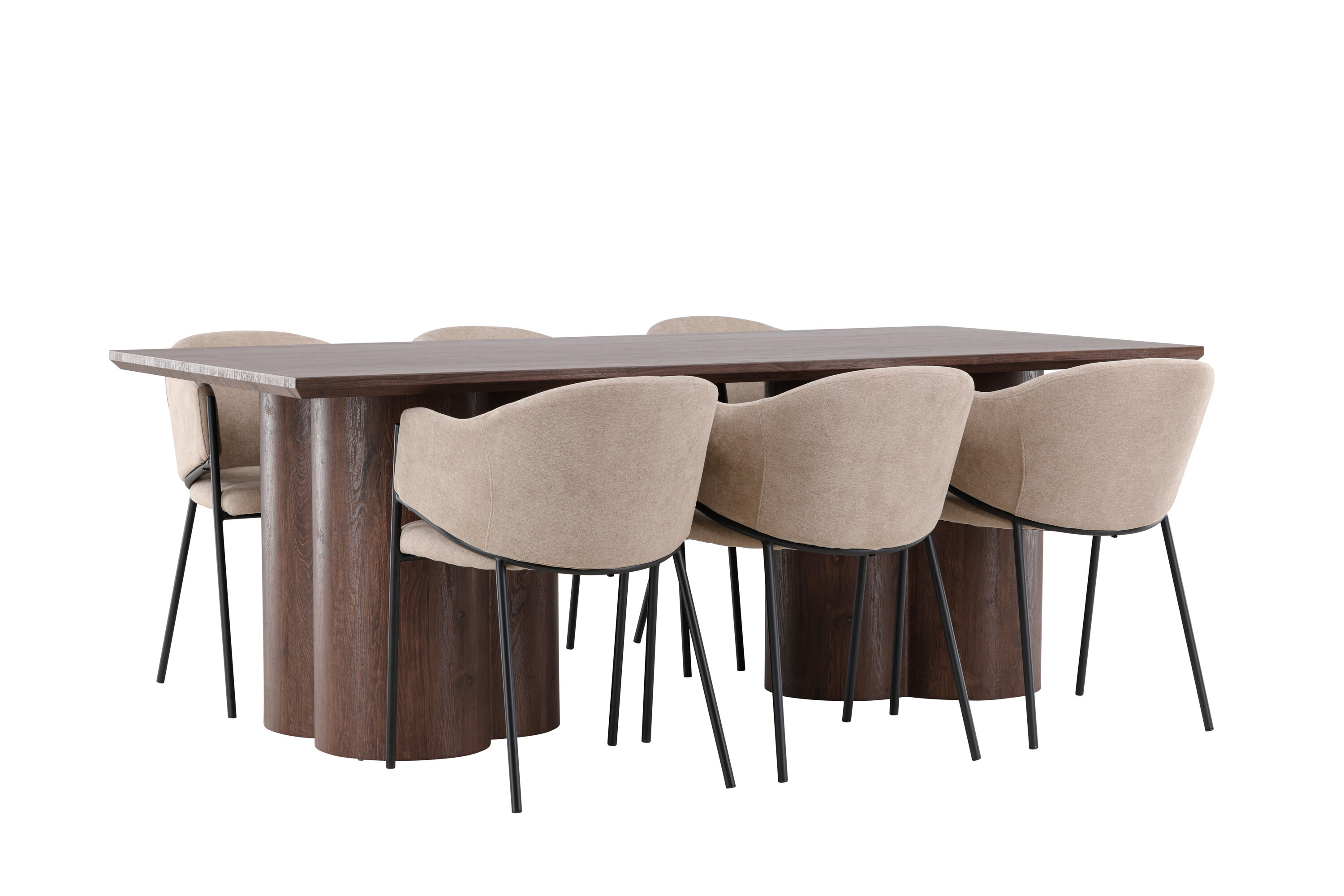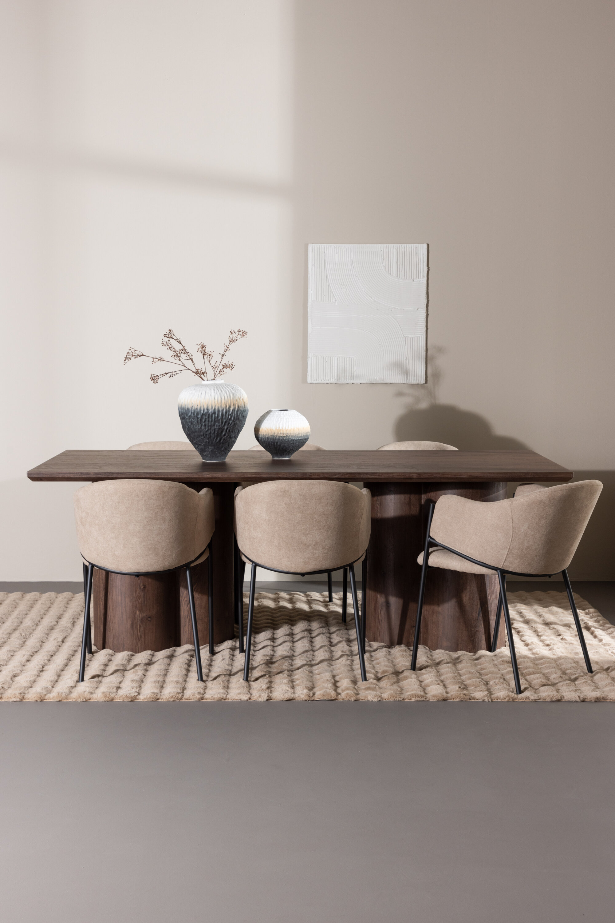 Avastage Evelina ja Olivia söögikomplekt – täiuslik kombinatsioon elegantsist ja funktsionaalsusest teie koju. Mugavates kahes pakendis müüdaval Evelina söögitoolil on pehme beeži polüesterlinaga polsterdatud iste, mis annab teie söögitoale elegantse ja maalähedase tunde. Tugev konstruktsioon teeb Evelinast usaldusväärse kaaslase pikkade ja meeldivate einete ajal. See maalähedane mööbel pole mitte ainult ilus, vaid ka praktiline ja funktsionaalne. Neutraalne värv ja klassikaline disain sobivad ideaalselt iga kodu sisustusega, luues sooja ja külalislahke õhkkonna. Täiendage söögilauda Olivia – stiili ja funktsionaalsuse harmooniline liit. Suurte 100×210 cm mõõtmetega Olivia pakub palju ruumi lähedaste kogumiseks õhtusöökideks ja seltskondlikeks sündmusteks. MDF materjalist ja mokavärvi pealispinnaga Olivia loob teie koju sooja ja kutsuva atmosfääri. Selle neutraalne disain sulandub hästi erinevate interjööri stiilidega, luues rahuliku ja külalislahke tunde. Olivia söögilaud on midagi enamat kui lihtsalt mööbliese; see on koht, kus luuakse mälestusi koos sõprade ja perega.