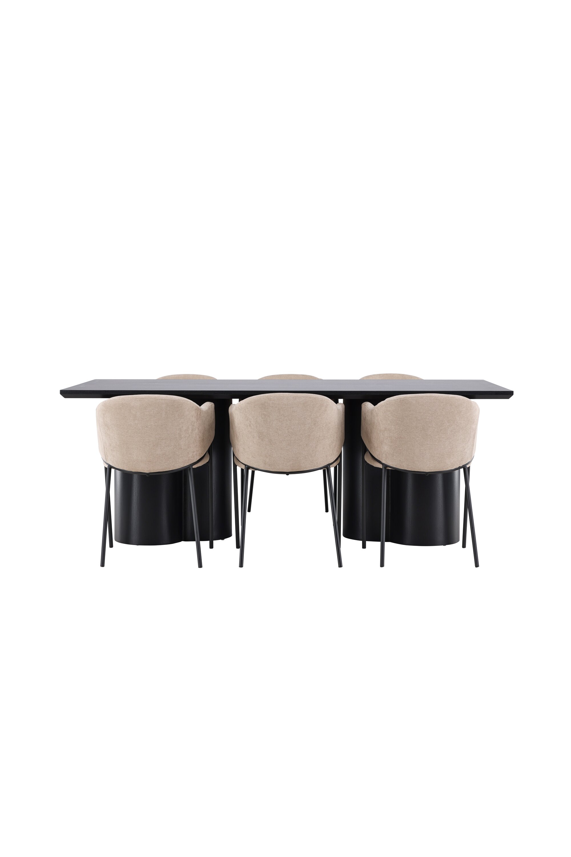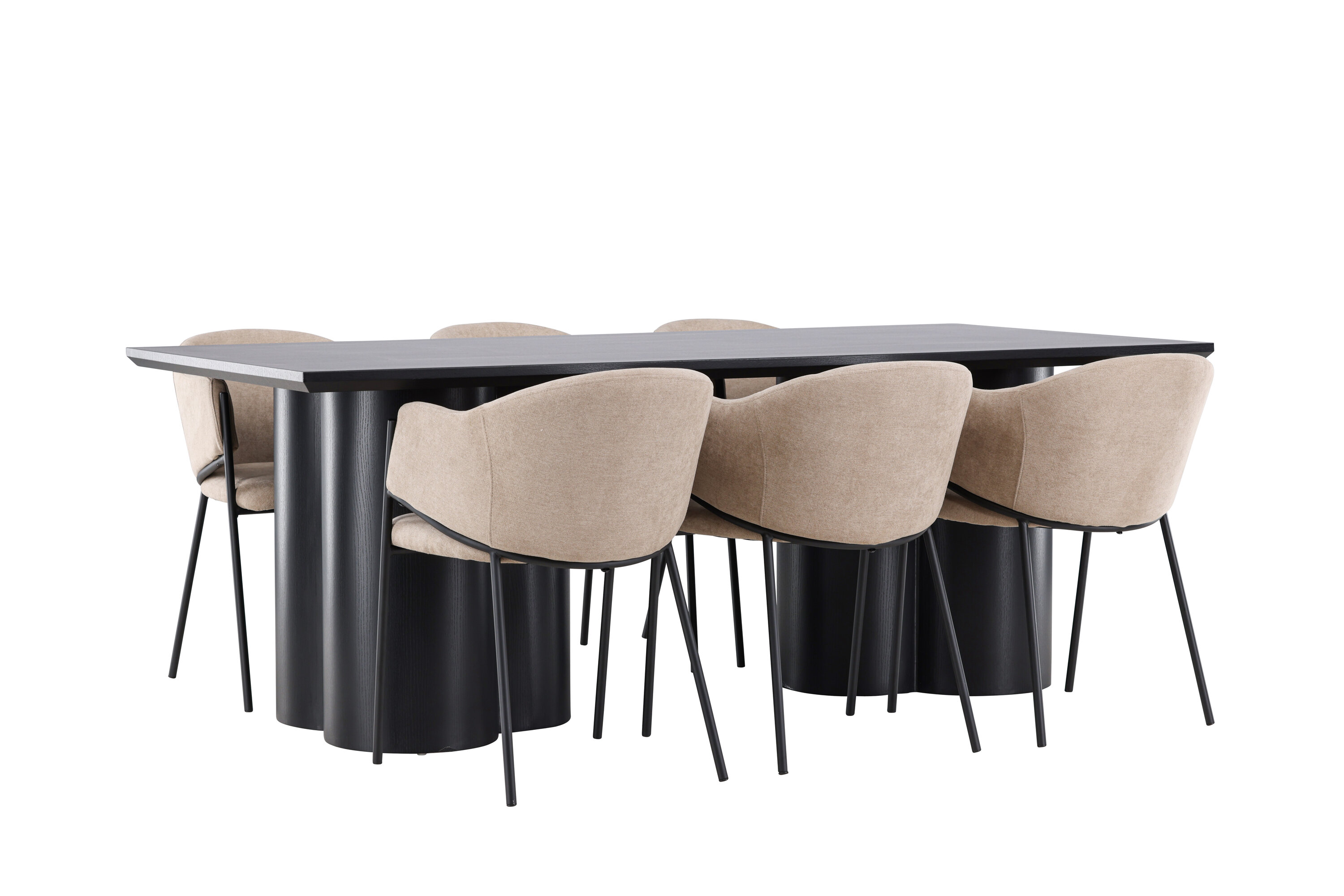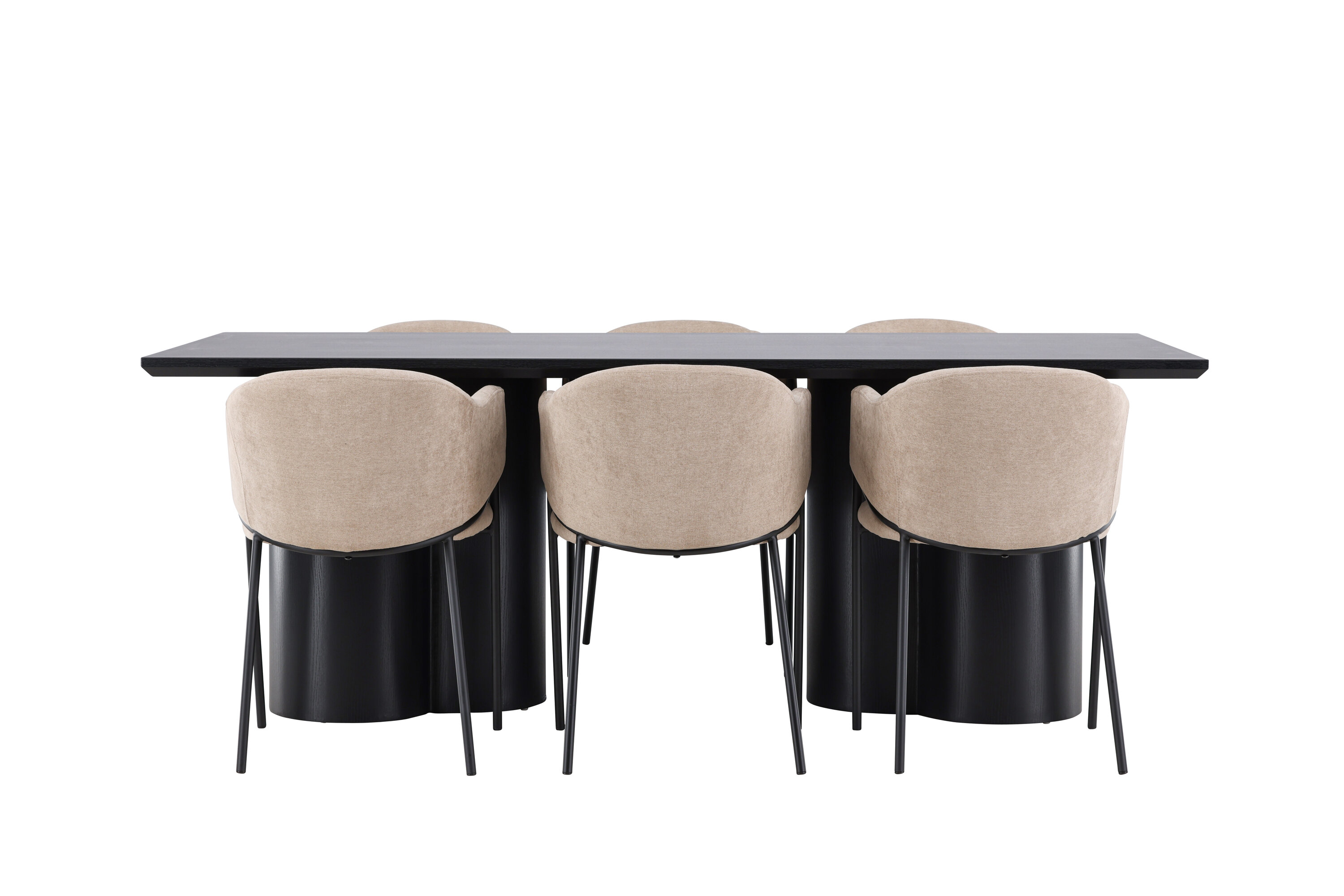 Avasta ülim einestamiskogemus Evelina söögitooli ja Olivia söögilauaga – täiuslik kombinatsioon, millest õhkub nii elegantsi kui ka funktsionaalsust sinu koju. Evelina söögitool pakub sooja ja kutsuvat tunnet tänu pehme beeži polüesterlinaga polsterdatud istmele. Selle vastupidav konstruktsioon teeb Evelinast usaldusväärse kaaslase pikkade ja nauditavate söögikordade ajal. Olivia söögilaud, mille mõõtmed on 210×100 cm, on ideaalne sõprade ja pere tervitamiseks ühistele einetele ja koosviibimistele. Viimistletud musta varjundiga laud õhkab elegantsi ja modernsust, samas kui selle tugev konstruktsioon tagab pikaajalise stabiilsuse. Suurendage oma söögituba Evelina söögitooli ja Olivia söögilauaga. See söögikomplekt loob harmoonilise atmosfääri ja jätab püsiva mulje. Evelina söögitooli neutraalset värvi ja klassikalist disaini täiendavad suurepäraselt Olivia söögilaua klanitud disain ja ajatu värv. See kombinatsioon sobib suurepäraselt nii igapäevasteks õhtusöökideks kui ka pidulikeks sündmusteks ning pakub tasakaalu ajatu disaini ja moodsate detailide vahel, muutes selle ideaalseks valikuks kõikideks seltskondlikeks koosviibimisteks.