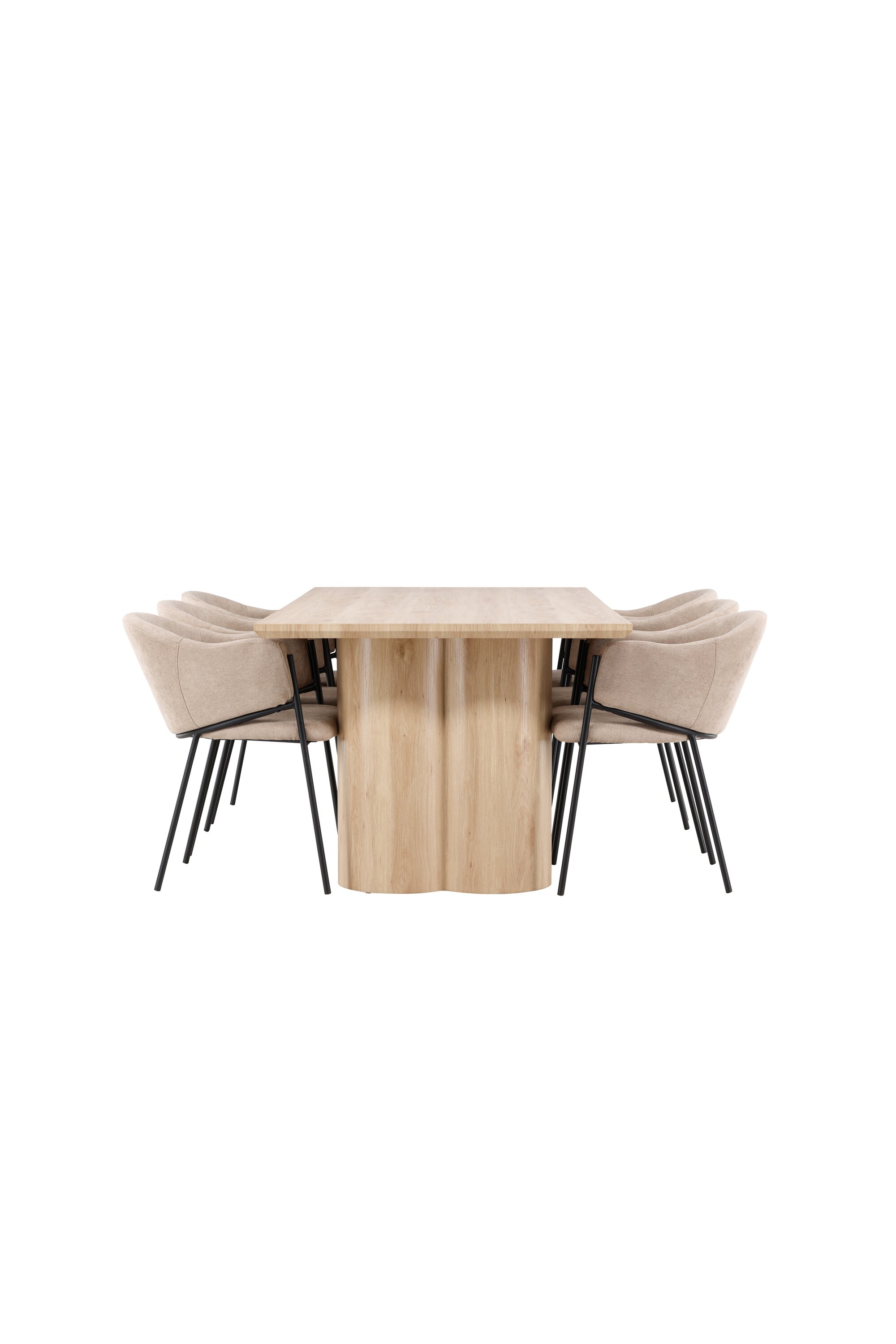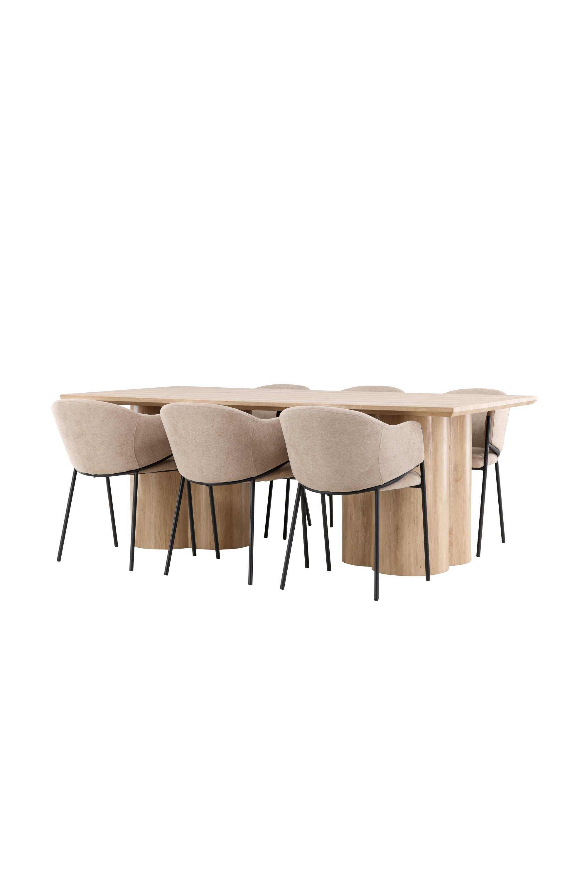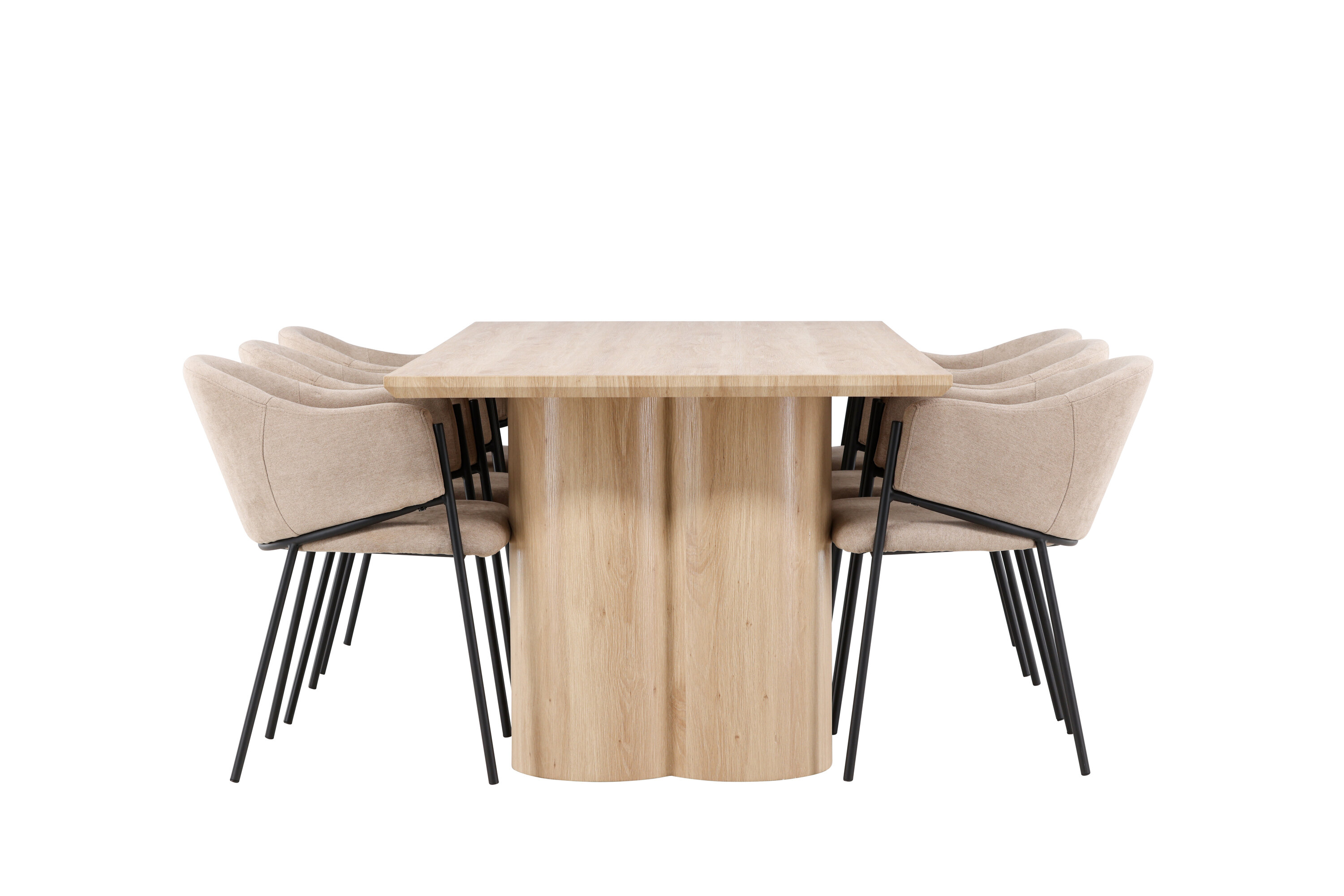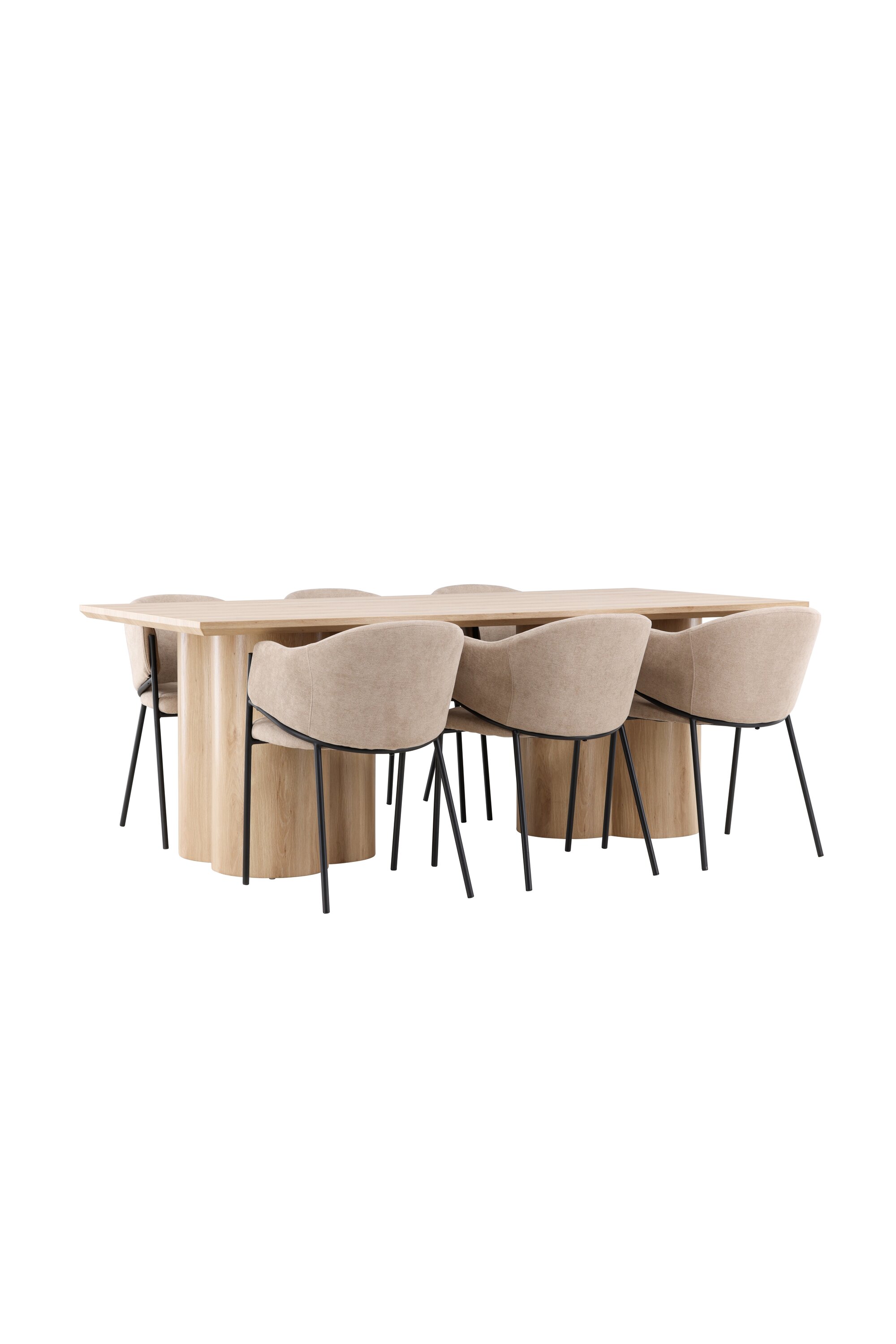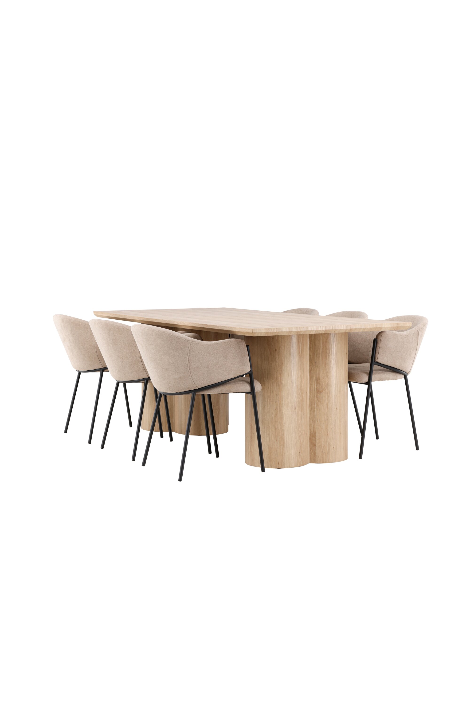 Looge oma kodus harmooniline ja kutsuv atmosfäär meie eksklusiivse söögikomplektiga, milles on ühendatud elegants ja mugavus. Evelina söögitool ja Olivia söögilaud sobivad suurepäraselt lähedaste kogumiseks meeldivatele einetele ja meeldejäävatele hetkedele. Las sellest söögikomplektist saab teie kodu süda, kus stiil ja funktsionaalsus kohtuvad. Tutvuge Evelina söögitooliga – ülim valik sooja ja kutsuva söögielamuse jaoks. Pehme beeži värvi polüesterlinaga polsterdatud Evelina iste annab teie söögitoale elegantse ja maalähedase tunde. Tugev konstruktsioon teeb Evelinast usaldusväärse kaaslase pikkade ja meeldivate einete ajal. See maalähedane mööbliese pole mitte ainult ilus, vaid ka praktiline ja funktsionaalne. Neutraalne värv ja klassikaline disain sobivad ideaalselt igasse kodu interjööri, luues sooja ja külalislahke õhkkonna. Andke oma söögitoale täiuslik lift Evelina söögitooliga – see on vastupidav ja stiilne detail, mis on teie kodu hinnatud täiendus. Avasta Olivia söögilaua ilu ja funktsionaalsus. Oma suurte mõõtmetega 210×100 cm on see laud ideaalne valik sõprade ja pere tervitamiseks ühisele einele ja suhtlemisele. Olivia söögilaud on veetlevas valgeks lubjatud värvitoonis, mis loob teie tuppa maalähedase ja pingevaba õhkkonna. Maalähedane toon annab teie söögikordadele ja vestlustele soojuse ja harmoonia tunde. Looge mälestusi ja nautige meeldivaid hetki oma lähedastega Olivia söögilaua taga. Muljetavaldav suurus ja pingevaba värv aitavad luua teie kodus kutsuva ja külalislahke õhkkonna. Laske Olivia söögilaual luua teie seltskondlikke koosviibimisi ja mälestusi, mis kestavad kogu elu. Andke oma kodule harmoonia ja kogukonna tunne selle fantastilise ja funktsionaalse lauaga.