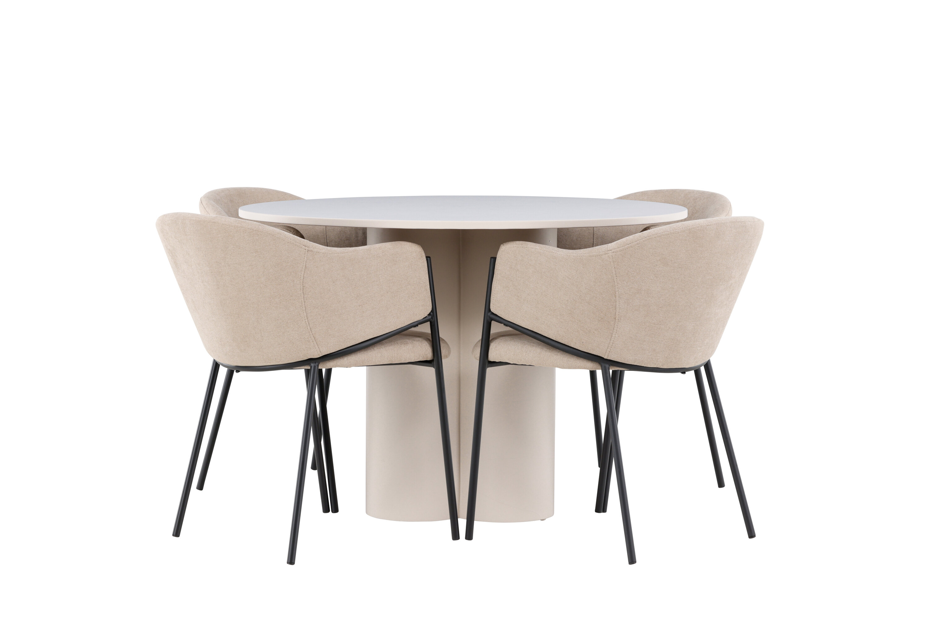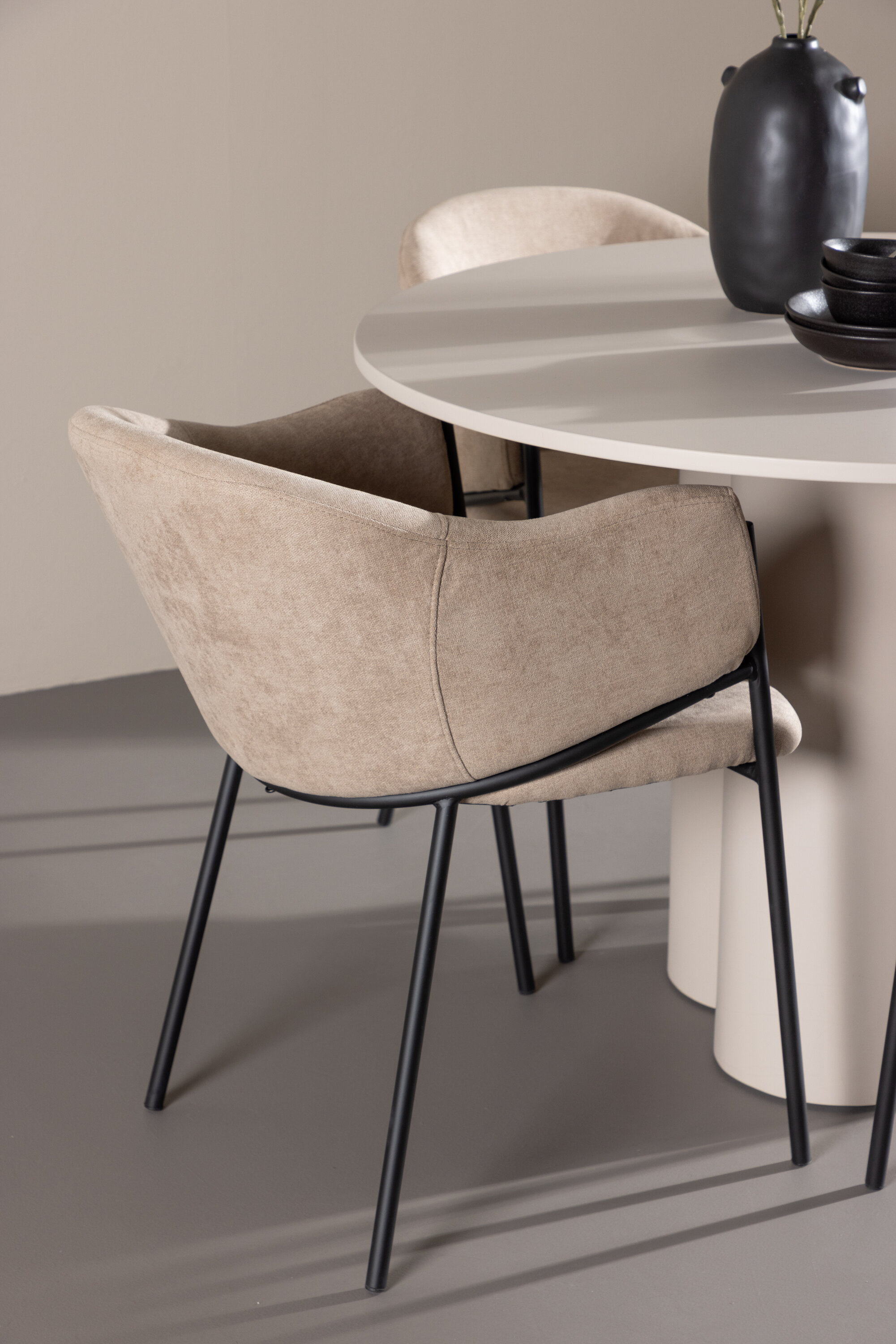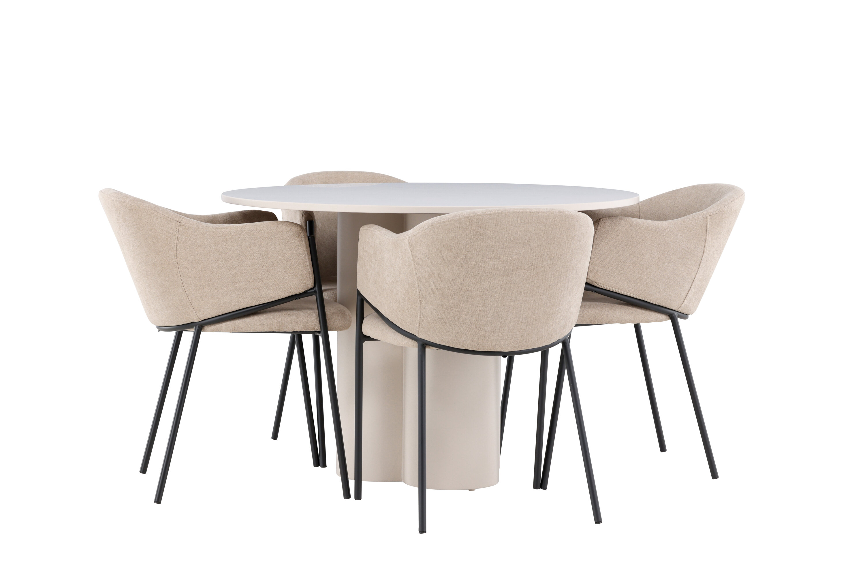 Looge elegantne ja kutsuv söögituba meie stiilse söögigrupiga, mis ühendab Olivia laua mugavate Evelina toolidega. See söögituba, mis sobib ideaalselt nii igapäevasteks õhtusöökideks kui ka pidulikeks sündmusteks, loob teie söögitoale kaasaegse ja harmoonilise atmosfääri. MDF-st valmistatud Olivia laual on helebeež värv, mis lisab teie söögitoale sooja ja kutsuva tunde. 110 cm läbimõõduga laud pakub rohkelt ruumi söögiks ja vestlusteks, ümar kuju loob aga tasakaalustatud ja sotsiaalse keskkonna. Laua vastupidav konstruktsioon tagab pikaajalise kasutuse ja stabiilsuse. Neli Evelina tooli täiendavad lauda suurepäraselt oma elegantsete beeži linaga kaetud istmetega. Need toolid pakuvad nii mugavust kui ka stiili, muutes need ideaalseks pikaks ja nauditavaks õhtusöögiks pere ja sõpradega. Nende kaasaegne disain koos kõrgete seljatugede ja pehmete istmetega annab teie söögitoale rafineeritud ja kaasaegse ilme. See söögituba on ideaalne kombinatsioon esteetikast ja funktsionaalsusest, mistõttu on see suurepärane valik neile, kes otsivad elegantset ja mugavat söögituba. Täiustage oma söögituba Olivia laua ja Evelina toolide kombinatsiooniga ning looge koht, kus jagatakse mälestusi ja rõõmu.