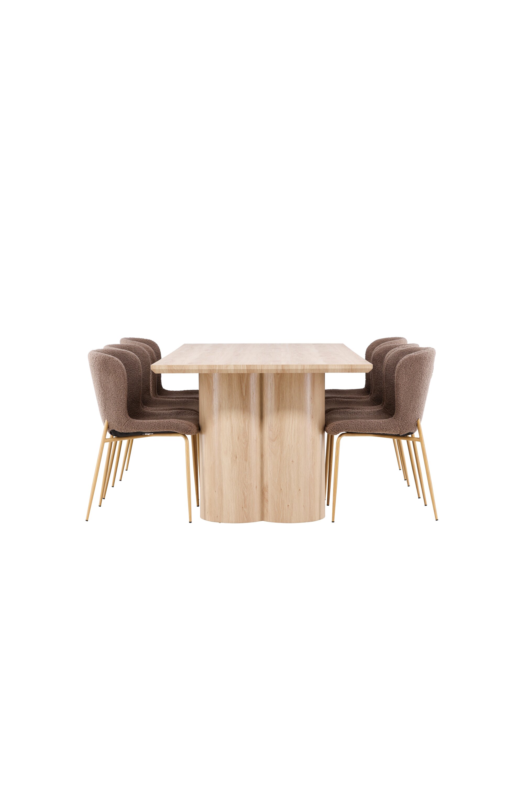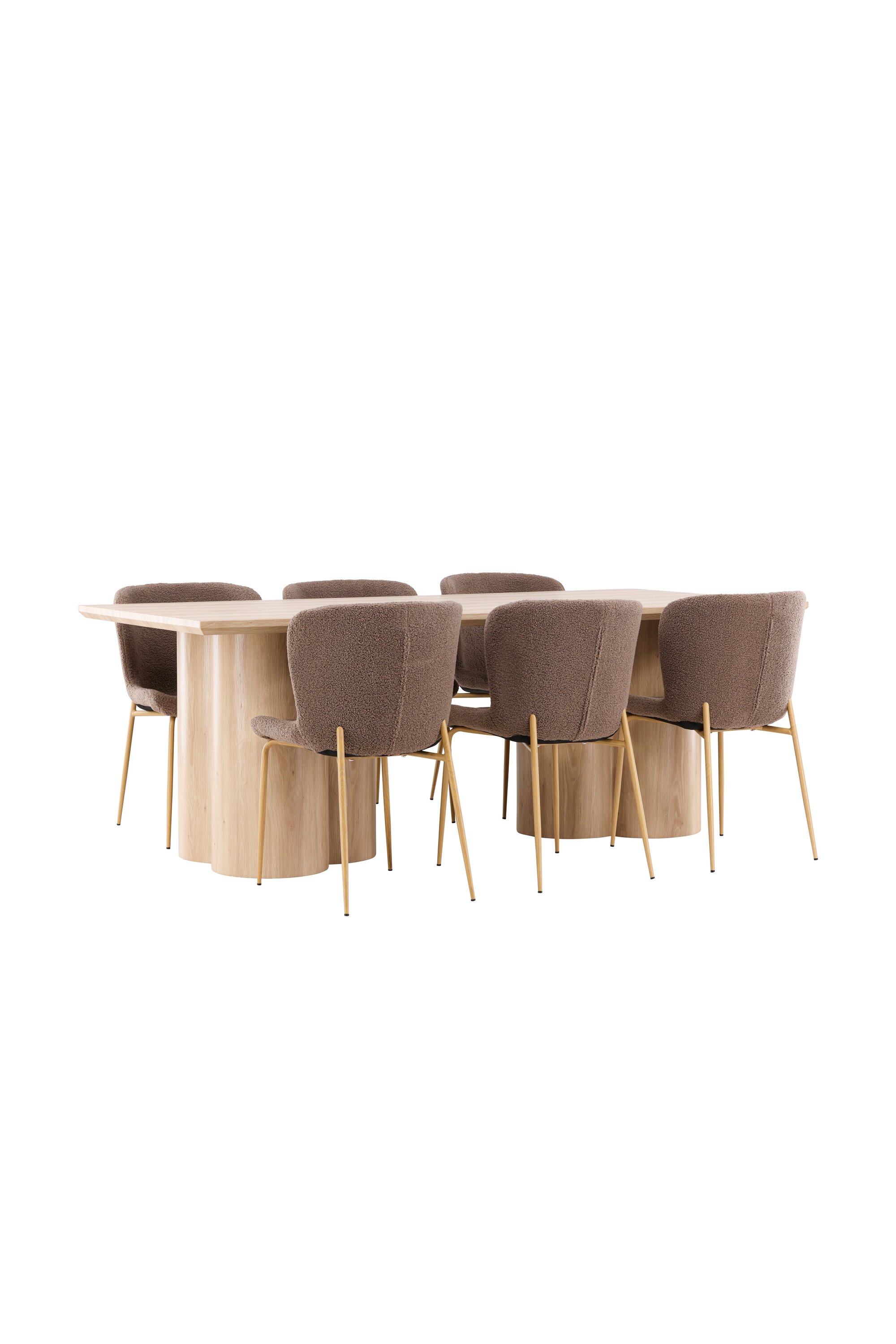 Looge elegantne ja kutsuv söögikeskkond meie eksklusiivse söögikomplektiga, mis koosneb Modesto söögitoolidest ja Olivia söögilauast. See täiuslik moodsa disaini ja mugavuse kombinatsioon tõstab teie söögituba kõrgemale ja muudab iga toidukorra meeldejäävaks elamuseks. Avastage selle söögikomplekti unikaalne ilu ja funktsionaalsus, mis ühendab stiili ja praktilised detailid, et luua teie kodus harmooniline õhkkond. Siin on teie söögikomplekti koostatud tekst: Avasta Modesto söögitool – trendikas ja pilkupüüdev tükk, mis loob teie söögituppa sooja atmosfääri. Tooli iste on polsterdatud elegantse pruuni värvi pehme teddy materjaliga, jalad on terasest ja kauni mokavärviga. Modesto söögitool on oma maalähedase esteetika ja trendika disainiga täiuslik täiendus teie sisekujundusele. Pilkupüüdev materjalide ja värvide kombinatsioon annab teie söögitoale kaasaegse ja stiilse ilme. Andke oma kodule elegantsi puudutus ja looge Modesto söögitooliga söögilaua taga kutsuv õhkkond. Mugav ja stiilne koht, kus nautida häid eineid ning luua meeldejäävaid hetki pere ja sõpradega. Avasta Olivia söögilaua ilu ja funktsionaalsus. Oma suurte mõõtmetega 210×100 cm on see laud ideaalne valik sõprade ja pere tervitamiseks ühisele einele ja suhtlemisele. Olivia söögilaud on veetlevas valgeks lubjatud värvitoonis, mis annab teie toale maalähedase ja pingevaba õhkkonna. Maalähedane toon annab teie söögikordadele ja vestlustele soojuse ja harmoonia tunde. Looge mälestusi ja nautige meeldivaid hetki oma lähedastega Olivia söögilaua taga. Muljetavaldav suurus ja pingevaba värv aitavad luua teie kodus kutsuva ja külalislahke õhkkonna. Laske Olivia söögilaual luua teie seltskondlikke koosviibimisi ja mälestusi, mis kestavad kogu elu. Andke oma kodule harmoonia ja kogukonna tunne selle fantastilise ja funktsionaalse lauaga.
