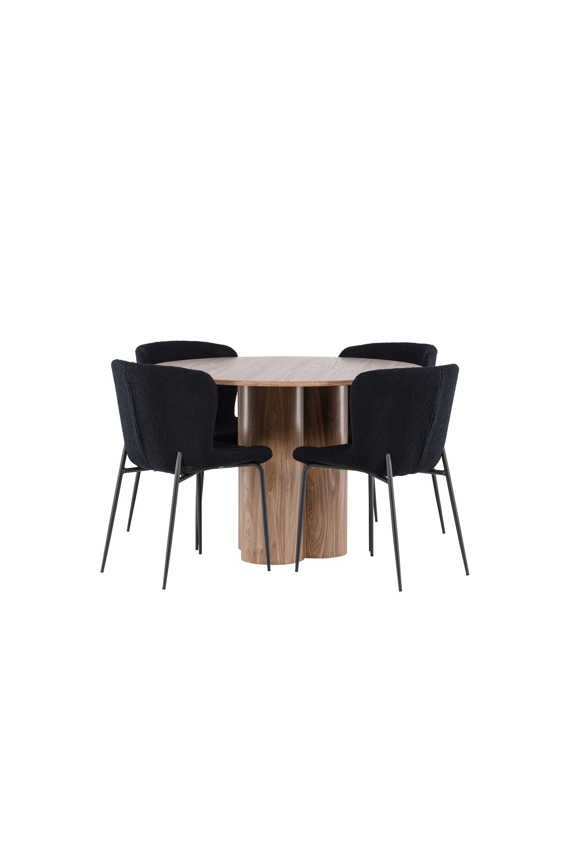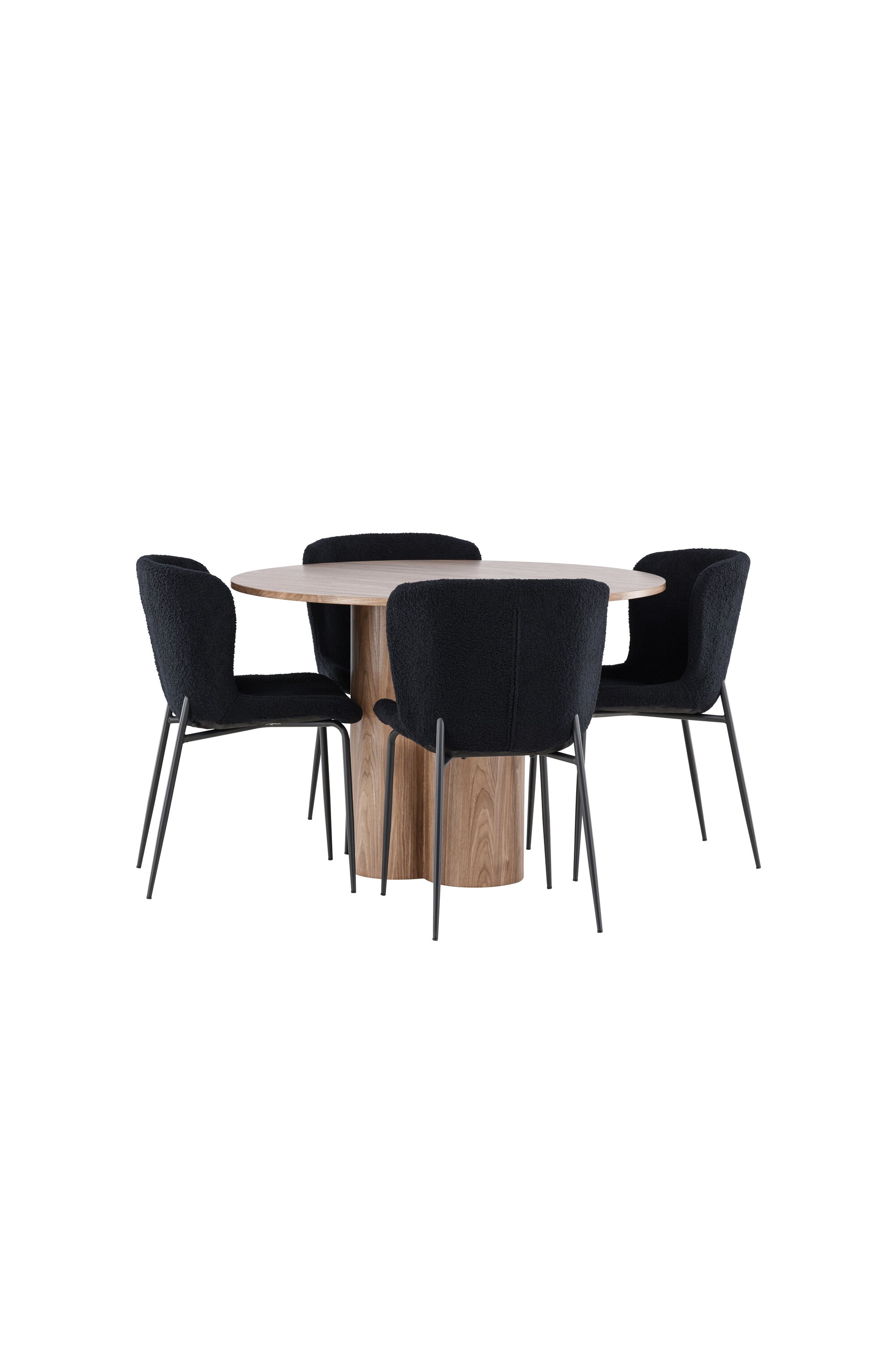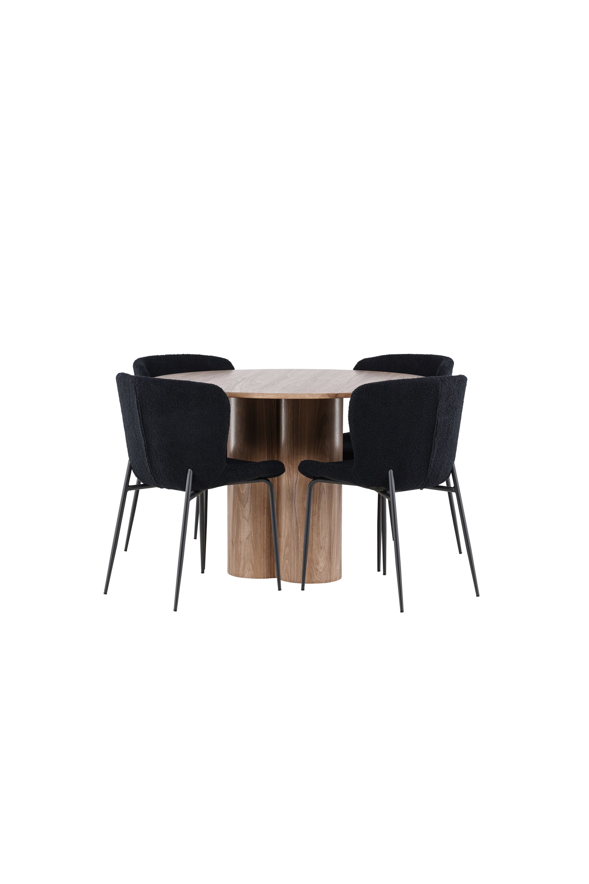 Looge elegantne ja kutsuv söögituba meie elegantse söögikomplektiga, mis ühendab kauni Olivia laua mugavate Modesto toolidega. See söögikomplekt, mis sobib ideaalselt nii igapäevaseks õhtusöögiks kui ka pidulikuks sündmuseks, loob teie söögitoale kaasaegse ja peene atmosfääri. MDF-st valmistatud Olivia söögilaud on kauni mokavärviga, mis lisab teie söögitoale sooja ja kutsuva tunde. 110 cm läbimõõduga laud pakub rohkelt ruumi söögiks ja vestluseks, ümar kuju loob aga tasakaalustatud ja sotsiaalse keskkonna. Laua tugev konstruktsioon tagab pikaajalise kasutamise ja stabiilsuse. Neli Modesto tooli täiendavad lauda suurepäraselt oma elegantsete istmetega, mis on polsterdatud musta polüestrist teddyga. Need toolid pakuvad nii mugavust kui ka stiili, muutes need ideaalseks pikaks ja nauditavaks õhtusöögiks pere ja sõpradega. Nende kaasaegne disain koos kõrgete seljatugede ja pehmete istmetega annab teie söögitoale rafineeritud ja kaasaegse ilme. See söögikomplekt on täiuslik kombinatsioon esteetikast ja funktsionaalsusest, mistõttu on see suurepärane valik neile, kes otsivad elegantset ja mugavat söögituba. Täiustage oma söögituba Olivia laua ja Modesto toolide kombinatsiooniga ning looge koht, kus jagatakse mälestusi ja rõõmu.