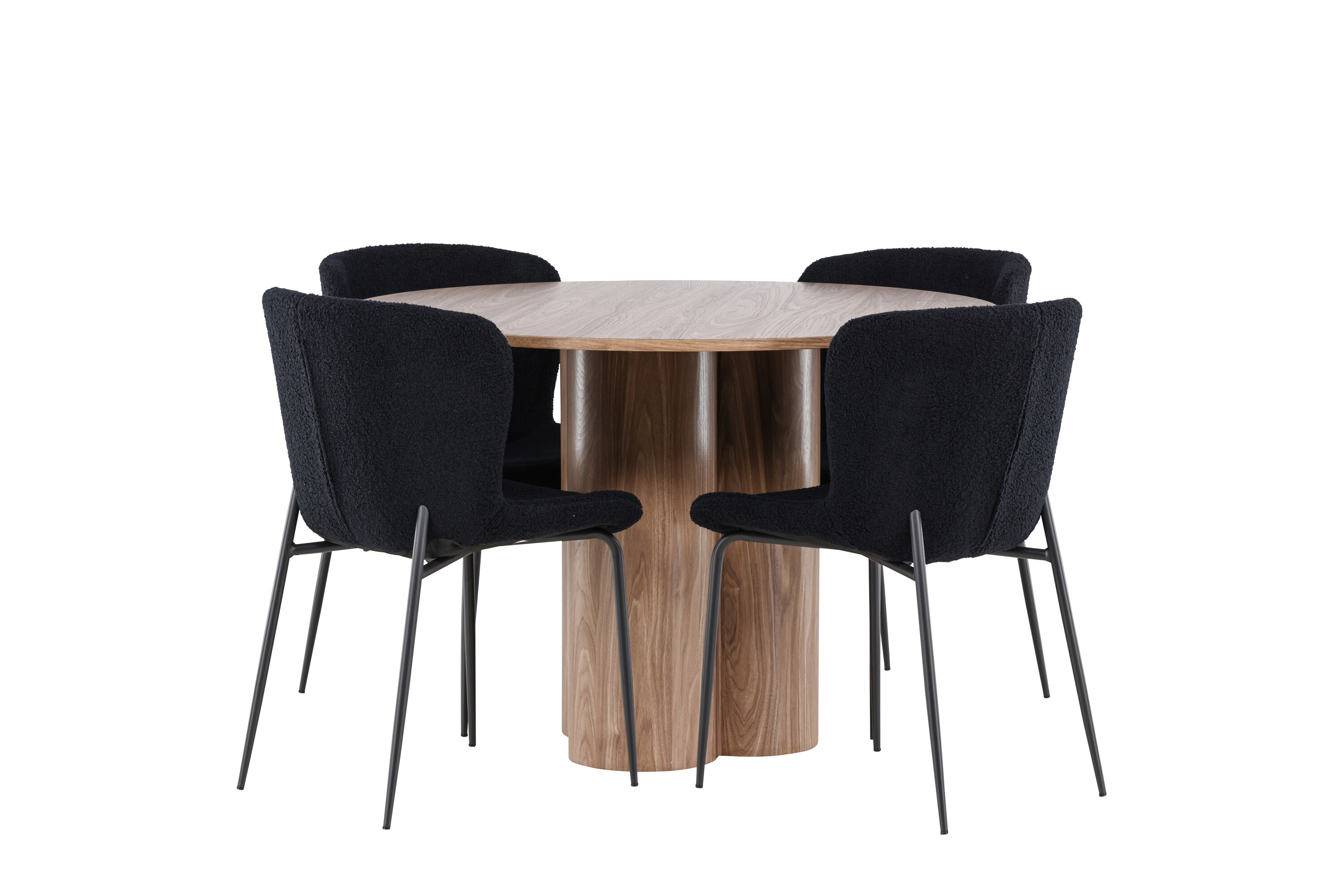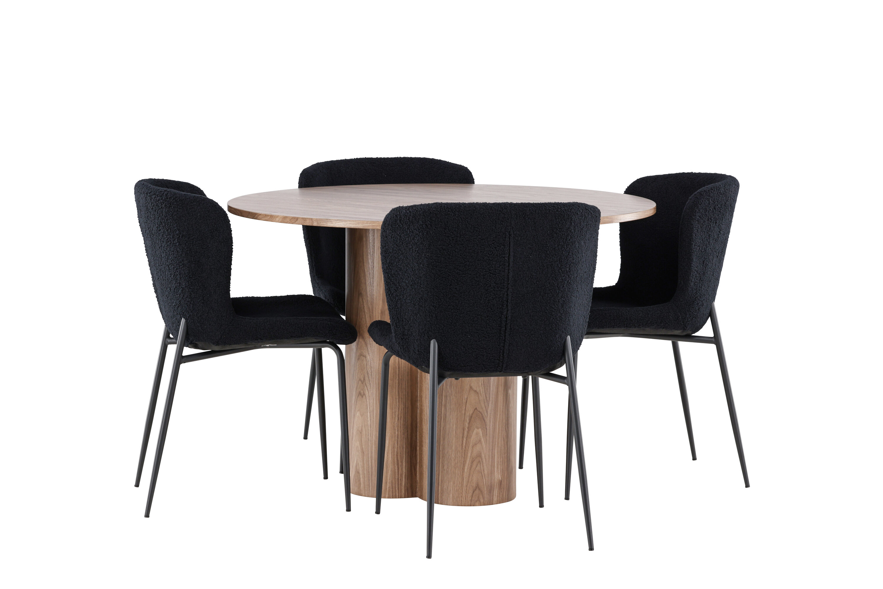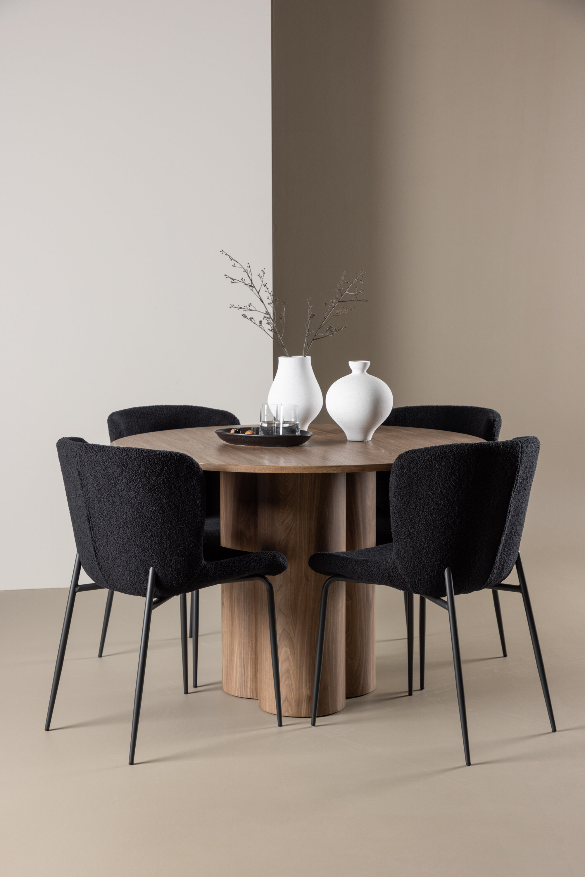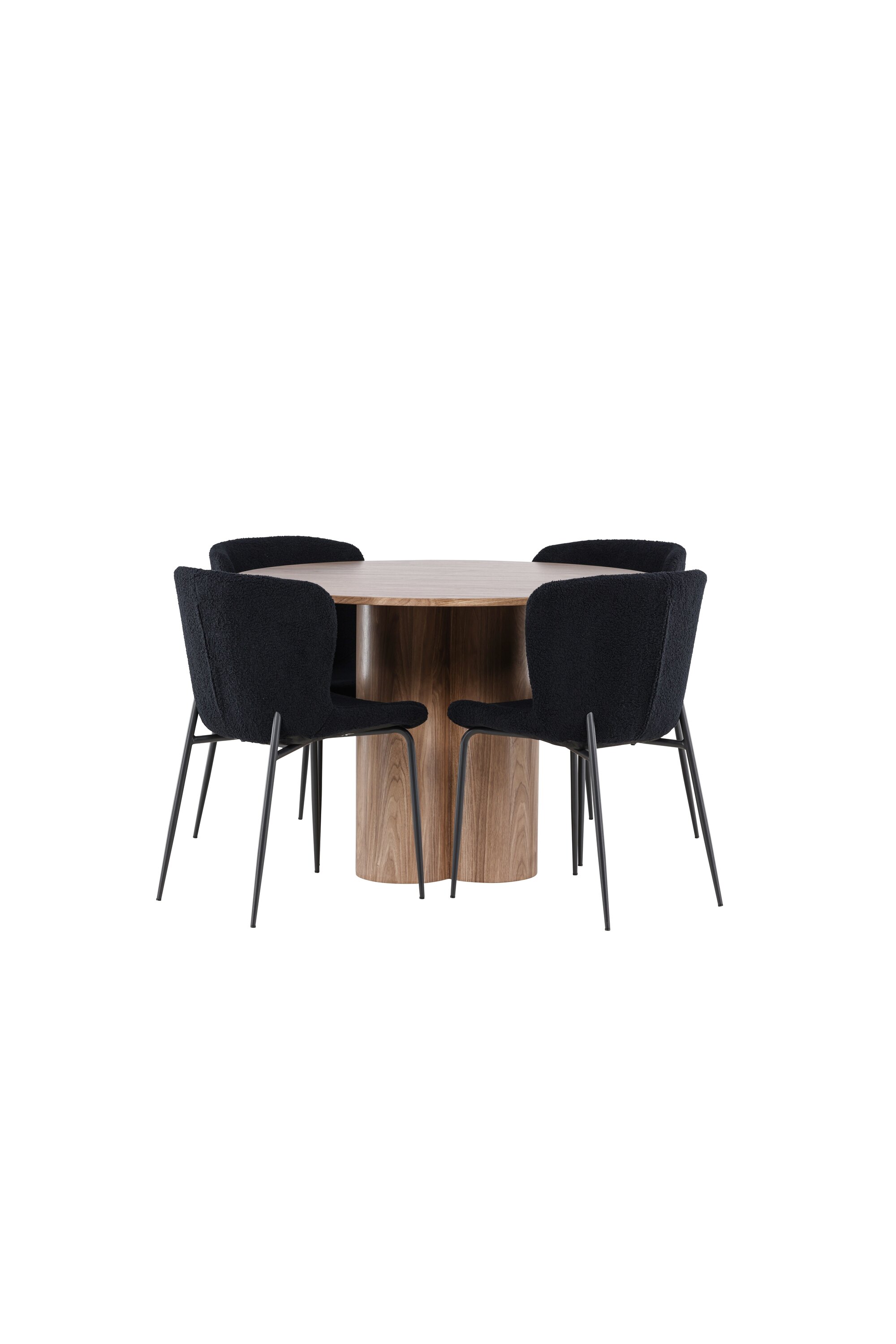 Looge elegantne ja kutsuv söögituba meie elegantse söögikomplektiga, mis ühendab kauni Olivia laua mugavate Modesto toolidega. See söögikomplekt, mis sobib ideaalselt nii igapäevaseks õhtusöögiks kui ka pidulikuks sündmuseks, loob teie söögitoale kaasaegse ja peene atmosfääri. MDF-st valmistatud Olivia söögilaud on kauni mokavärviga, mis lisab teie söögitoale sooja ja kutsuva tunde. 110 cm läbimõõduga laud pakub rohkelt ruumi söögiks ja vestluseks, ümar kuju loob aga tasakaalustatud ja sotsiaalse keskkonna. Laua tugev konstruktsioon tagab pikaajalise kasutamise ja stabiilsuse. Neli Modesto tooli täiendavad lauda suurepäraselt oma elegantsete istmetega, mis on polsterdatud musta polüestrist teddyga. Need toolid pakuvad nii mugavust kui ka stiili, muutes need ideaalseks pikaks ja nauditavaks õhtusöögiks pere ja sõpradega. Nende kaasaegne disain koos kõrgete seljatugede ja pehmete istmetega annab teie söögitoale rafineeritud ja kaasaegse ilme. See söögikomplekt on täiuslik kombinatsioon esteetikast ja funktsionaalsusest, mistõttu on see suurepärane valik neile, kes otsivad elegantset ja mugavat söögituba. Täiustage oma söögituba Olivia laua ja Modesto toolide kombinatsiooniga ning looge koht, kus jagatakse mälestusi ja rõõmu.