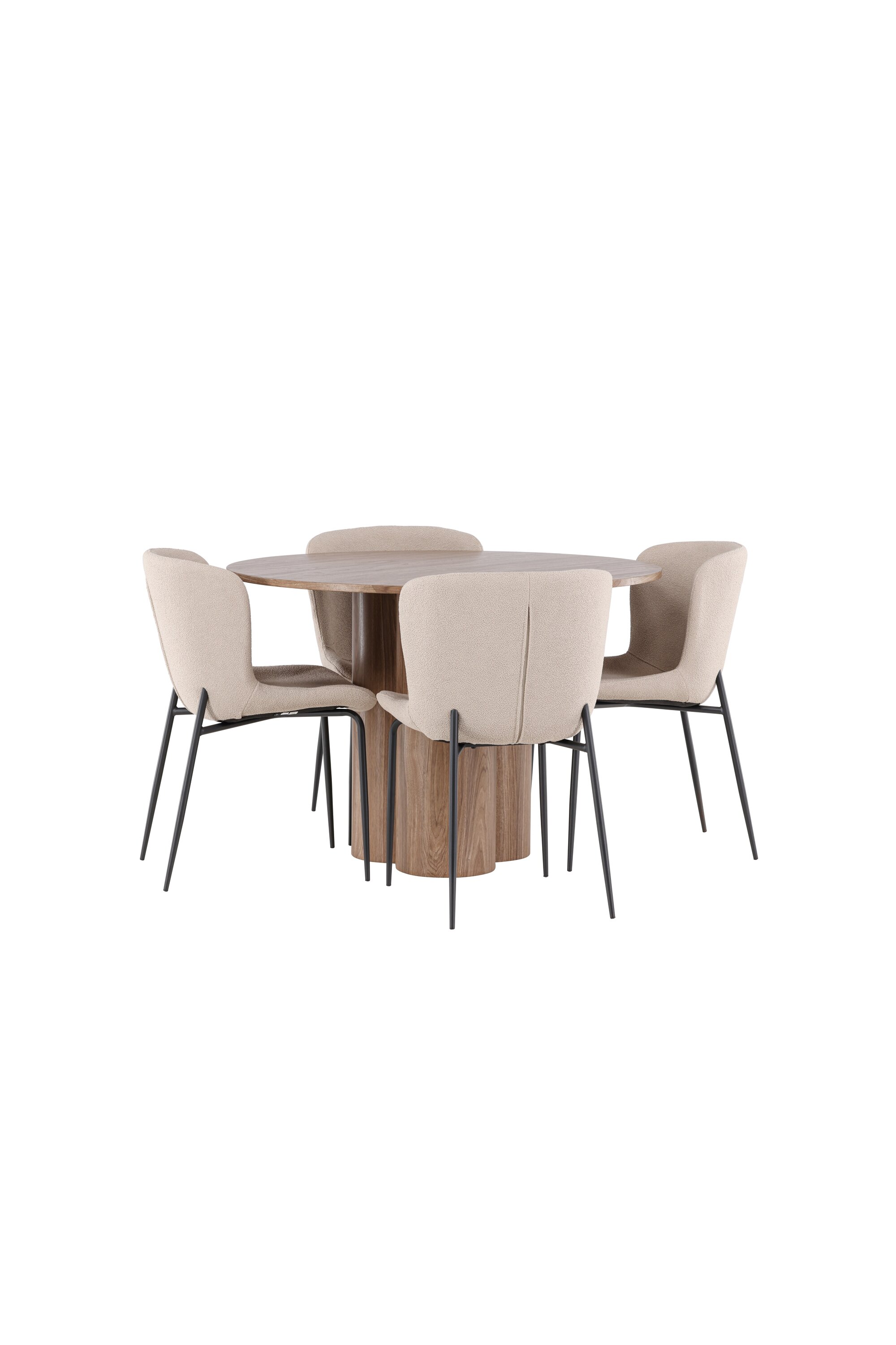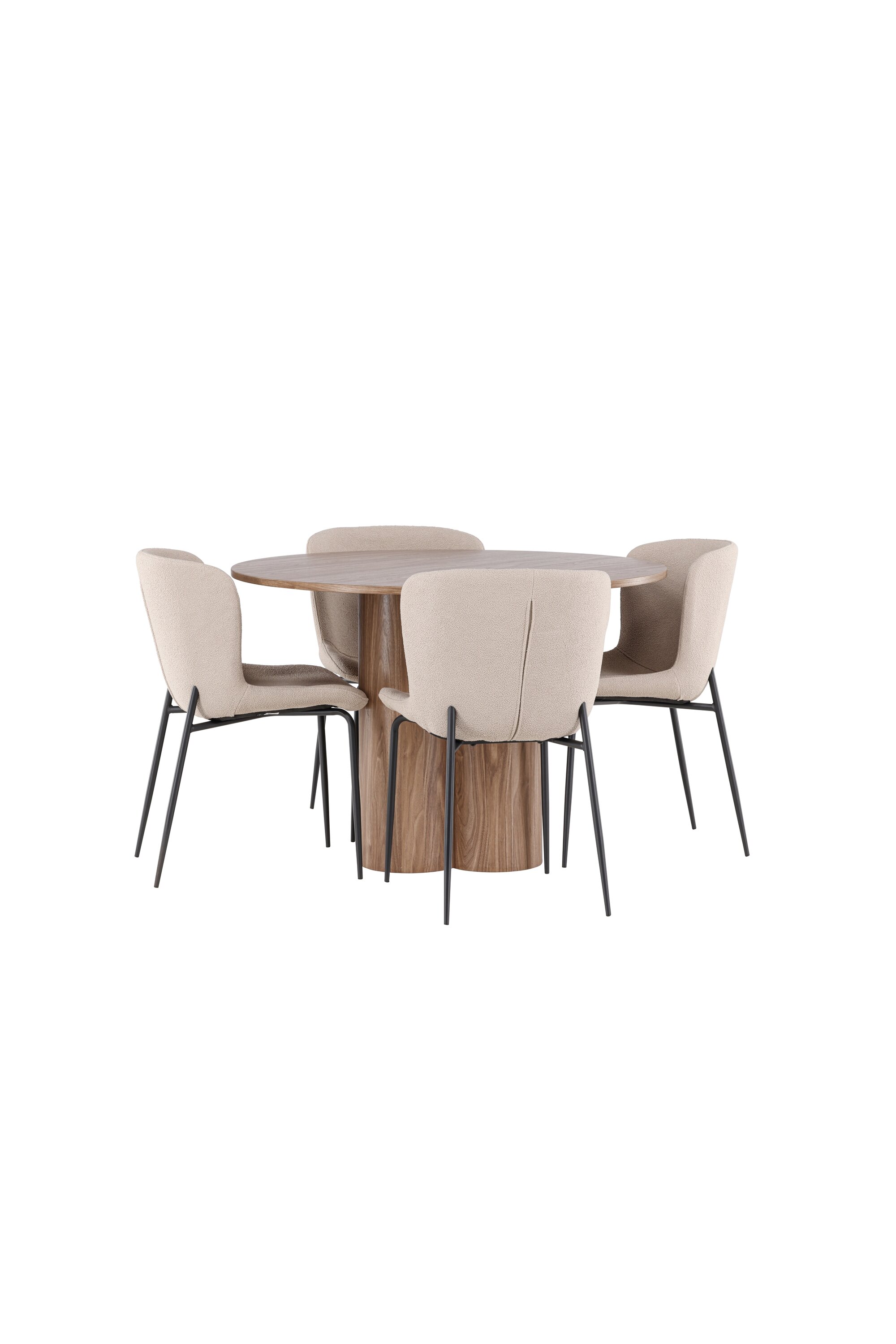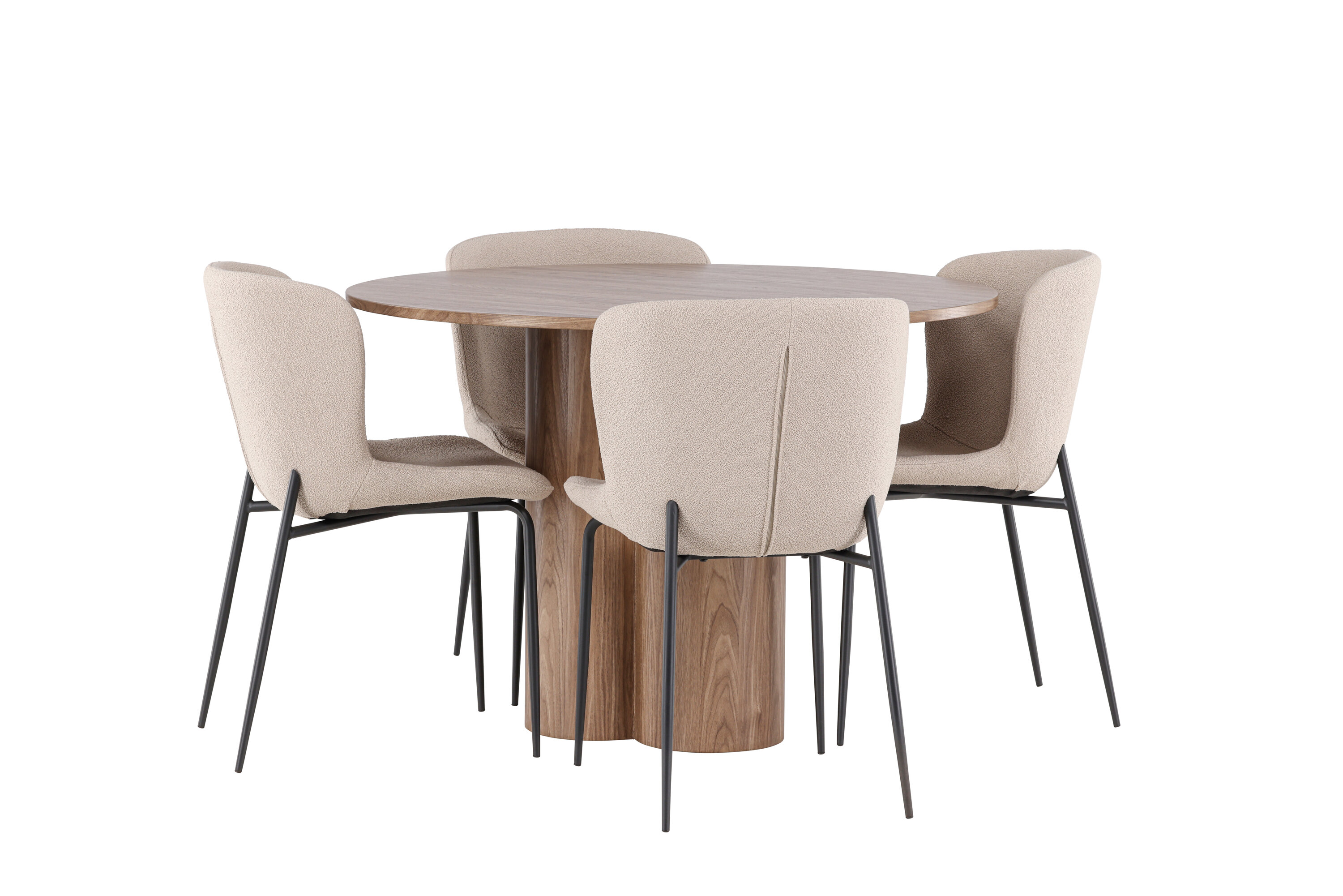 Avastage oma koju täiuslik söögikomplekt Olivia söögilaua ja Modesto toolidega. Olivia söögilaud on kutsuv ja elegantne mööbliese, mis oma 110 cm läbimõõduga sobib suurepäraselt sõprade ja pere kokkusaamiseks, et veeta mõnusaid eineid ja mõnusaid hetki. Oma lummava mokavärvi ja skandinaavialiku disainiga ühendab see lihtsuse ja stiili, muutes selle ajatuks valikuks igasse ruumi. Olgu selleks siis lõõgastav hiline hommikueine või pidulik õhtusöök, Olivia söögilaud on garanteeritud pilgupüüdja. Täiendage söögilauda meie populaarsete Modesto toolidega, mis on nii trendikad kui ka mugavad. Looge nende Skandinaavia disainiga pehmete toolidega kodu südames kutsuv atmosfäär. Toolid on üleni polsterdatud beežist pulstunud bouclé-kangast ning neil on elegantsed ja õhukesed mustast metallist toolijalad. Kergelt ümardatud seljatugi ja polsterdatud istmepadi pakuvad lisamugavust ja pikendavad meeldivaid eineid söögilaua ümber. Hea eine jaoks maha istudes peaks olema hea tunne!
