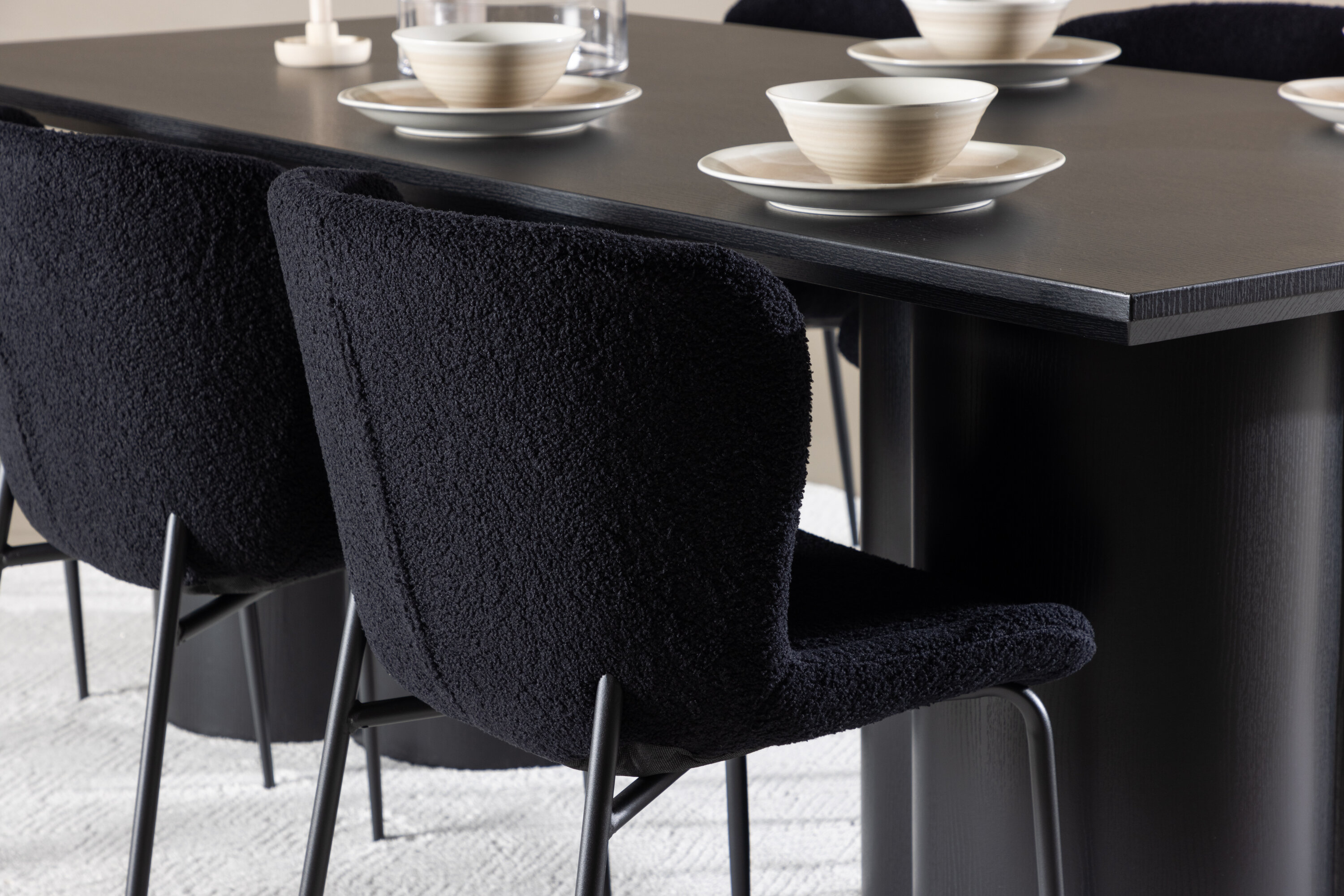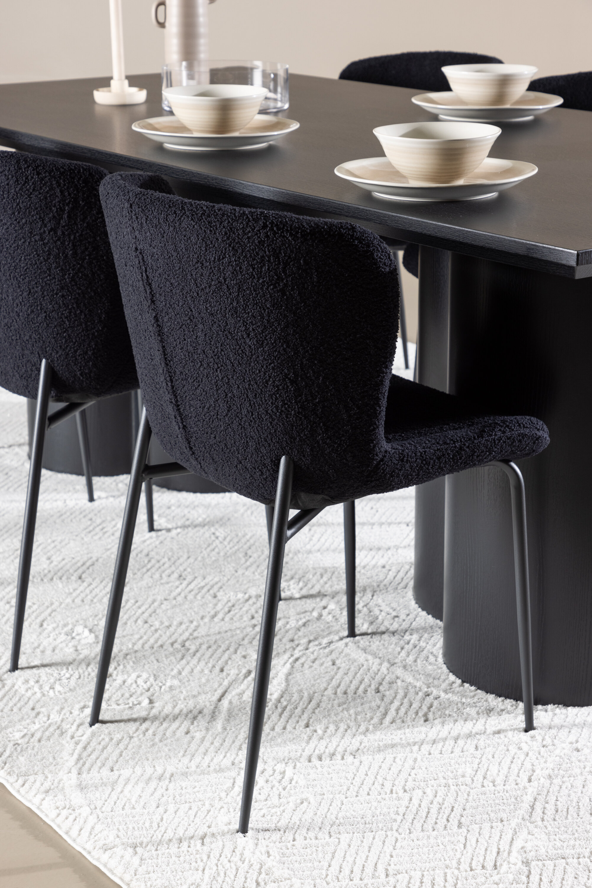 Avasta täiuslik söögikomplekt Modesto söögitooli ja Olivia söögilauaga – kombinatsioon, millest õhkub nii elegantsi kui modernsust sinu koju. Modesto söögitool pakub mugavust pehme teddy materjaliga polsterdatud istme ja tugevate terasest jalgadega. Elegantne must iste ja omavahel sobivad jalad annavad toolile ajatu ja elegantse disaini, mis sobib erinevate interjööristiilidega. Olivia söögilaud, mille mõõtmed on 210×100 cm, sobivad suurepäraselt sõprade ja pereliikmete tervitamiseks ühisele einele. Viimistletud musta varjundiga laud õhkab elegantsi ja modernsust, samas kui selle tugev konstruktsioon tagab kauakestva stabiilsuse. Modesto söögitooli ja Olivia söögilaua abil saate oma söögitoale elegantsi ja stiili värskendada. See söögikomplekt loob teie koju trendika atmosfääri ja jätab püsiva mulje. See kombinatsioon sobib suurepäraselt nii igapäevasteks õhtusöökideks kui ka pidulikeks sündmusteks ning pakub tasakaalu ajatu disaini ja moodsate detailide vahel, muutes selle ideaalseks valikuks kõikideks seltskondlikeks koosviibimisteks.