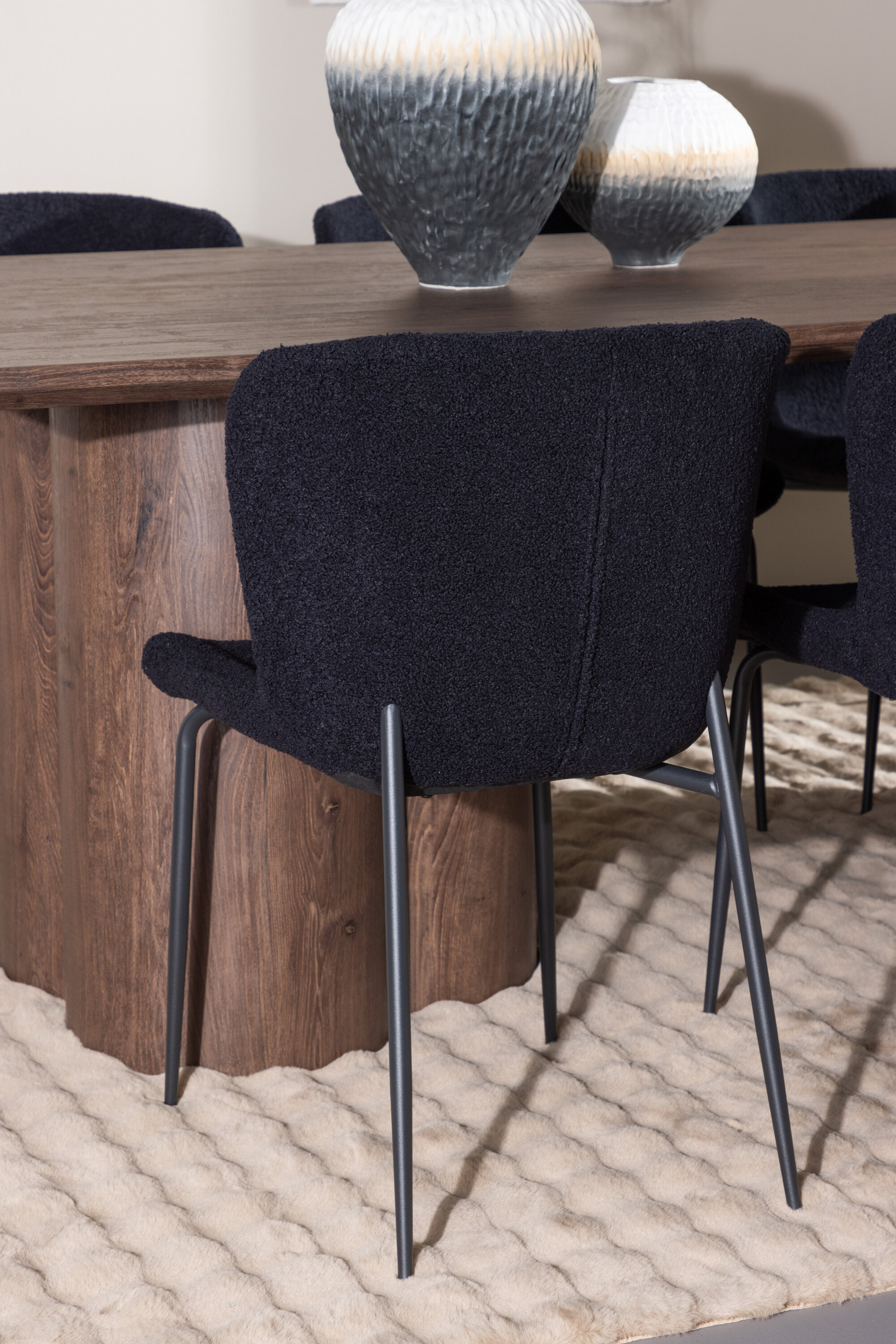 Avasta Modesto söögitool ja Olivia söögilaud – täiuslik kombinatsioon elegantsist ja funktsionaalsusest teie koju. Modesto söögitool avaldab muljet pehme teddy materjaliga polsterdatud istme ja terasest jalgadega, pakkudes nii mugavust kui ka stiilset disaini. Elegantne must iste ja kokkusobivad jalad loovad ajatu ja modernse esteetika, mis sobib ideaalselt erinevatesse interjööristiilidesse, jättes teie koju püsiva mulje. Söögilaud Olivia on harmooniline stiili ja funktsionaalsuse liit, mille mõõtmed on 100×210 cm. See laud pakub palju ruumi lähedaste kogumiseks õhtusöökideks ja seltskondlikuks koosviibimiseks. MDF materjalist ja mokavärvi pealispinnaga Olivia loob teie koju sooja ja kutsuva atmosfääri. Selle neutraalne disain sulandub hästi erinevate interjööri stiilidega, luues rahuliku ja külalislahke tunde. Modesto söögitool ja Olivia söögilaud loovad koos kutsuva ja elegantse söögikomplekti, millest saab teie kodu keskne osa, kus luuakse mälestusi ning nauditakse neid koos sõprade ja perega.