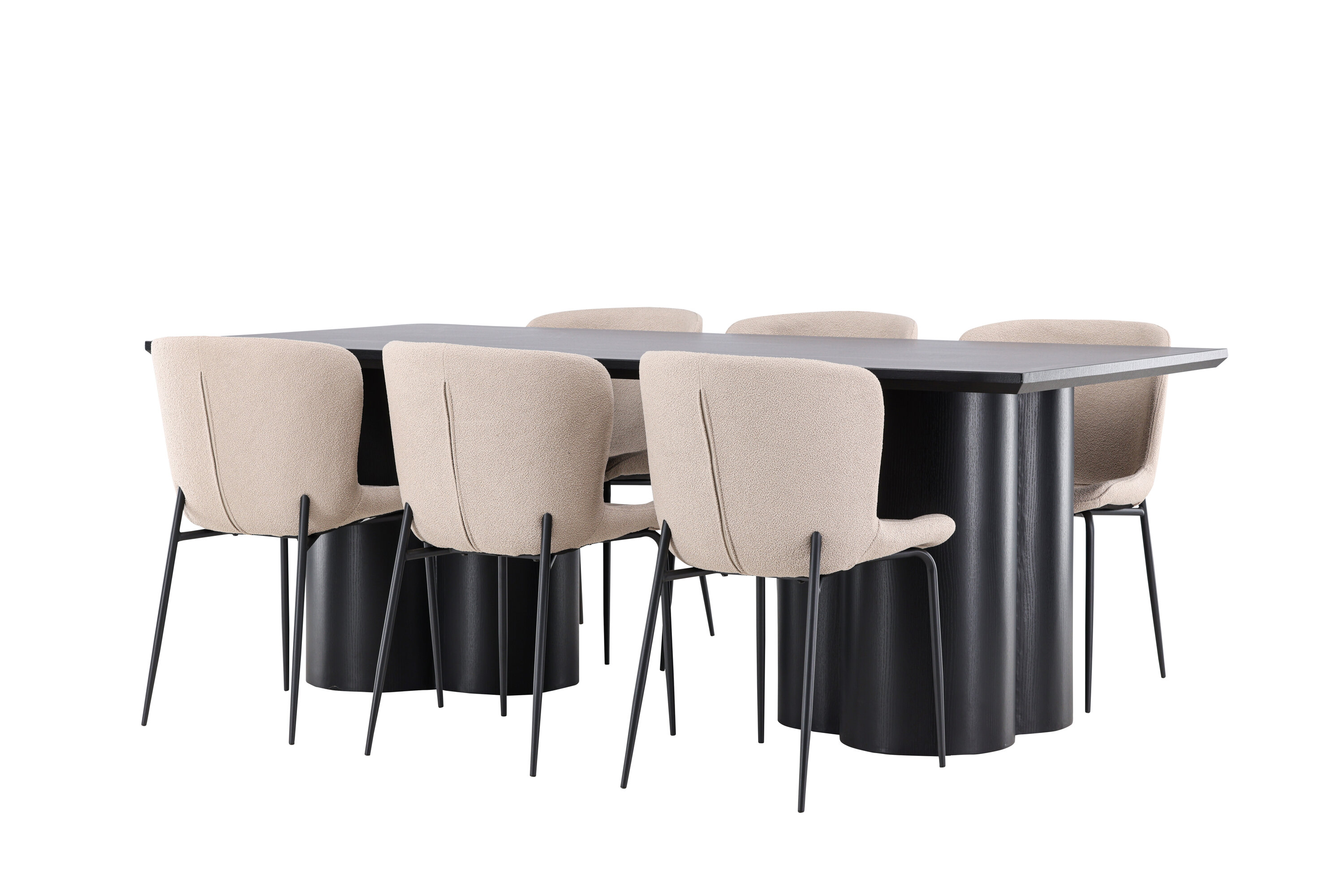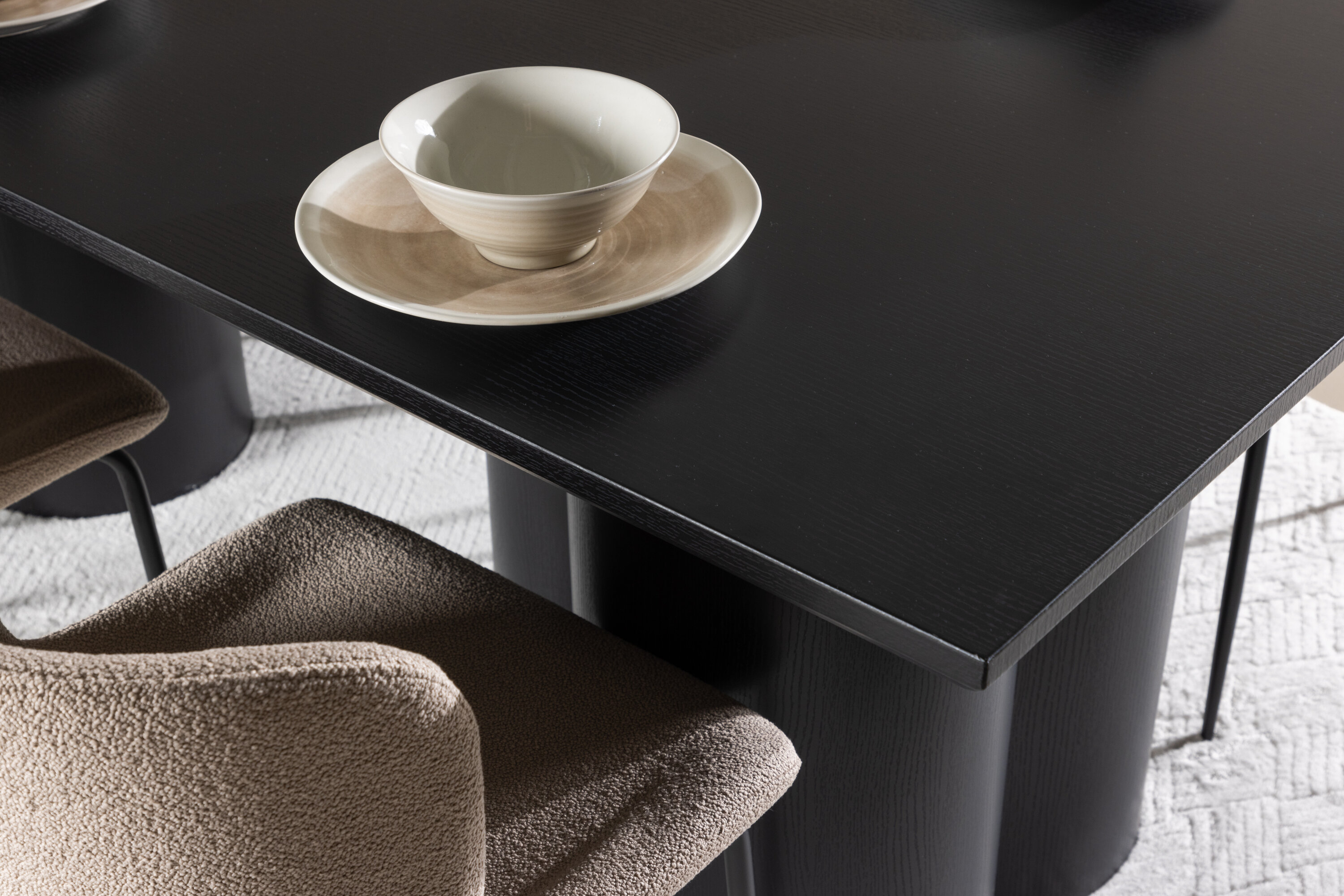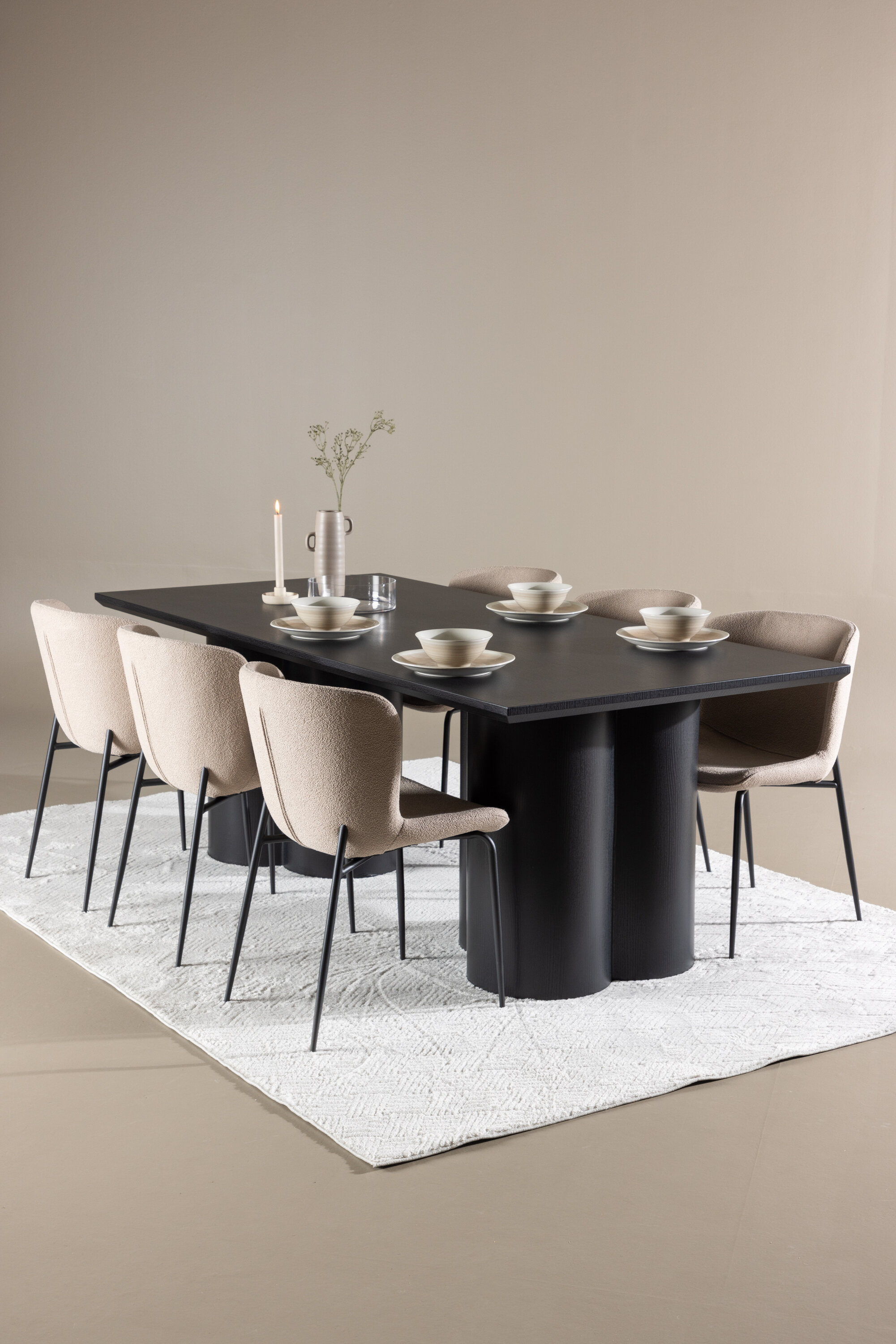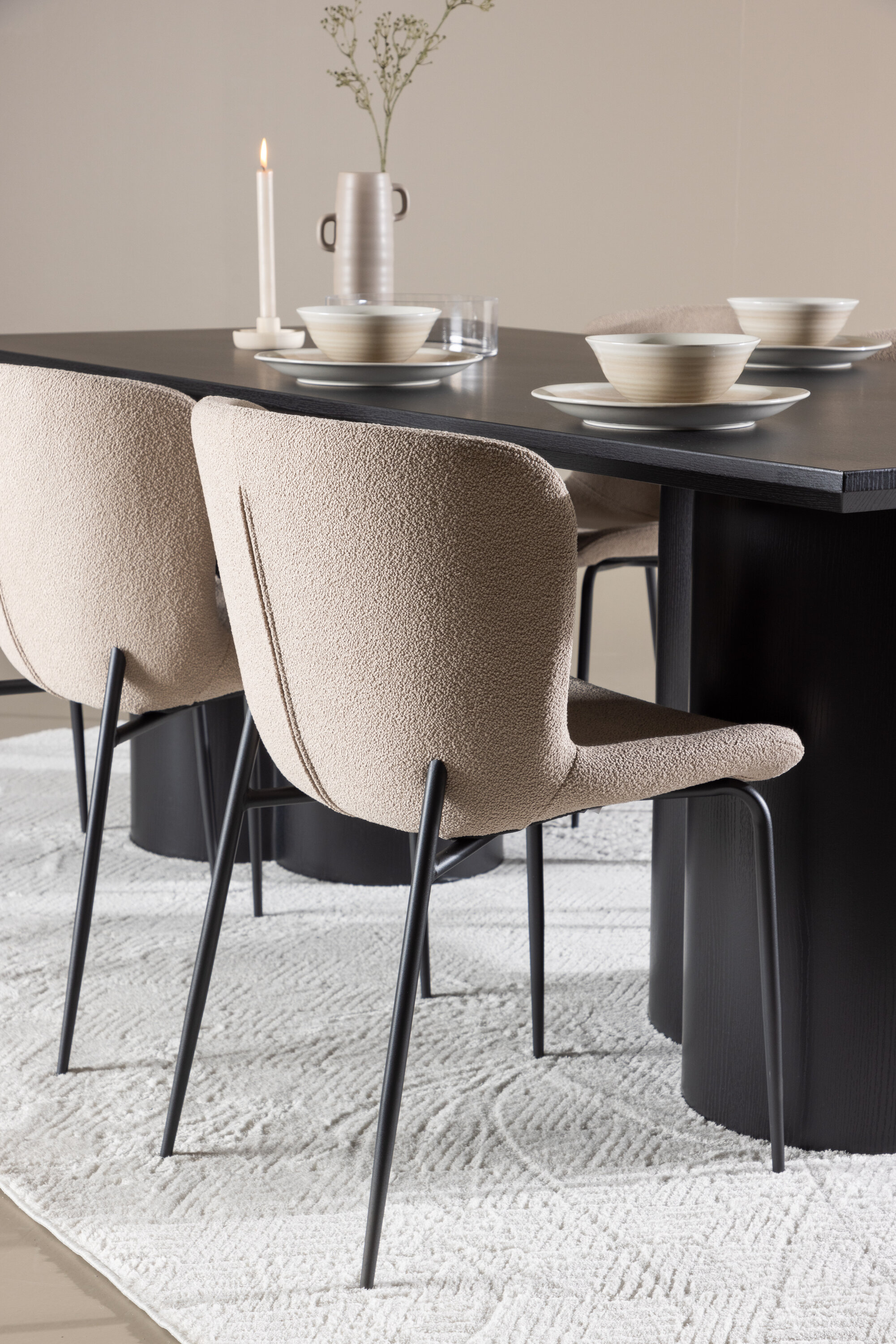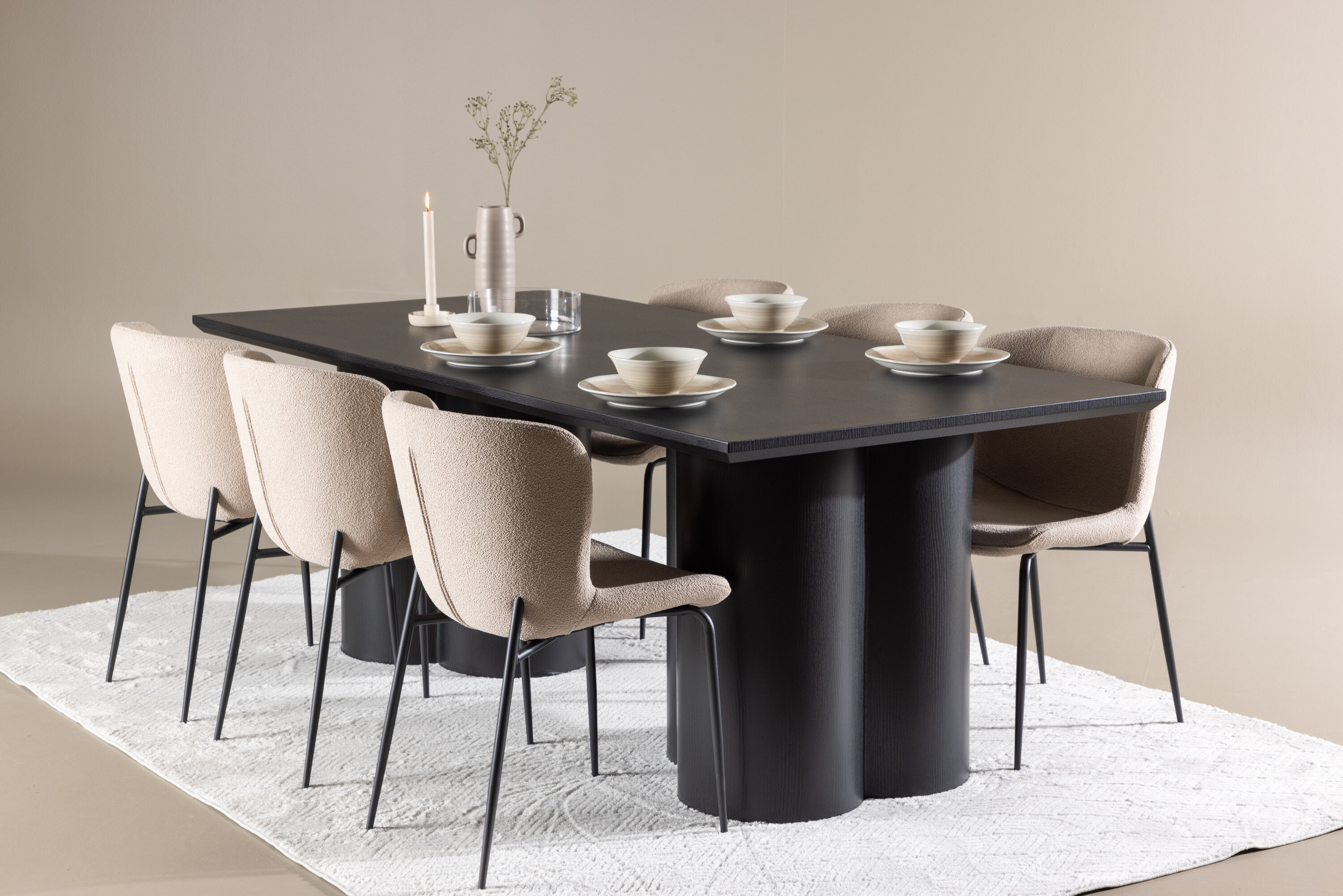 Avasta täiuslik söögikomplekt Modesto söögitooli ja Olivia söögilauaga – kombinatsioon, millest õhkub nii elegantsi kui ka funktsionaalsust sinu koju. Modesto on meie populaarne söögitool, mis on nii trendikas kui mugav. Selle pehme Skandinaavia disainiga söögitooliga looge oma kodu südames kutsuv õhkkond. Tool on täielikult polsterdatud beeži fuzzy bouclé-kangaga ja kitsad mustast metallist jalad. Kergelt ümar seljatugi ja polsterdatud istmepadi pakuvad lisamugavust ja pikendavad söögilaua ümber mõnusaid eineid. Hea eine jaoks maha istudes peaks olema suurepärane tunne! Olivia söögilaud, mille mõõtmed on 210×100 cm, on ideaalne sõprade ja pere tervitamiseks ühistele einetele ja koosviibimistele. Viimistletud musta varjundiga laud õhkab elegantsi ja modernsust, samas kui selle tugev konstruktsioon tagab pikaajalise stabiilsuse. Andke oma söögitoale luksuse ja modernsuse tunne Modesto söögitooli ja Olivia söögilauaga. See söögikomplekt loob harmoonilise atmosfääri ja jätab püsiva mulje. See kombinatsioon sobib suurepäraselt nii igapäevasteks õhtusöökideks kui ka pidulikeks sündmusteks ning pakub tasakaalu ajatu disaini ja moodsate detailide vahel, muutes selle ideaalseks valikuks kõikideks seltskondlikeks koosviibimisteks.