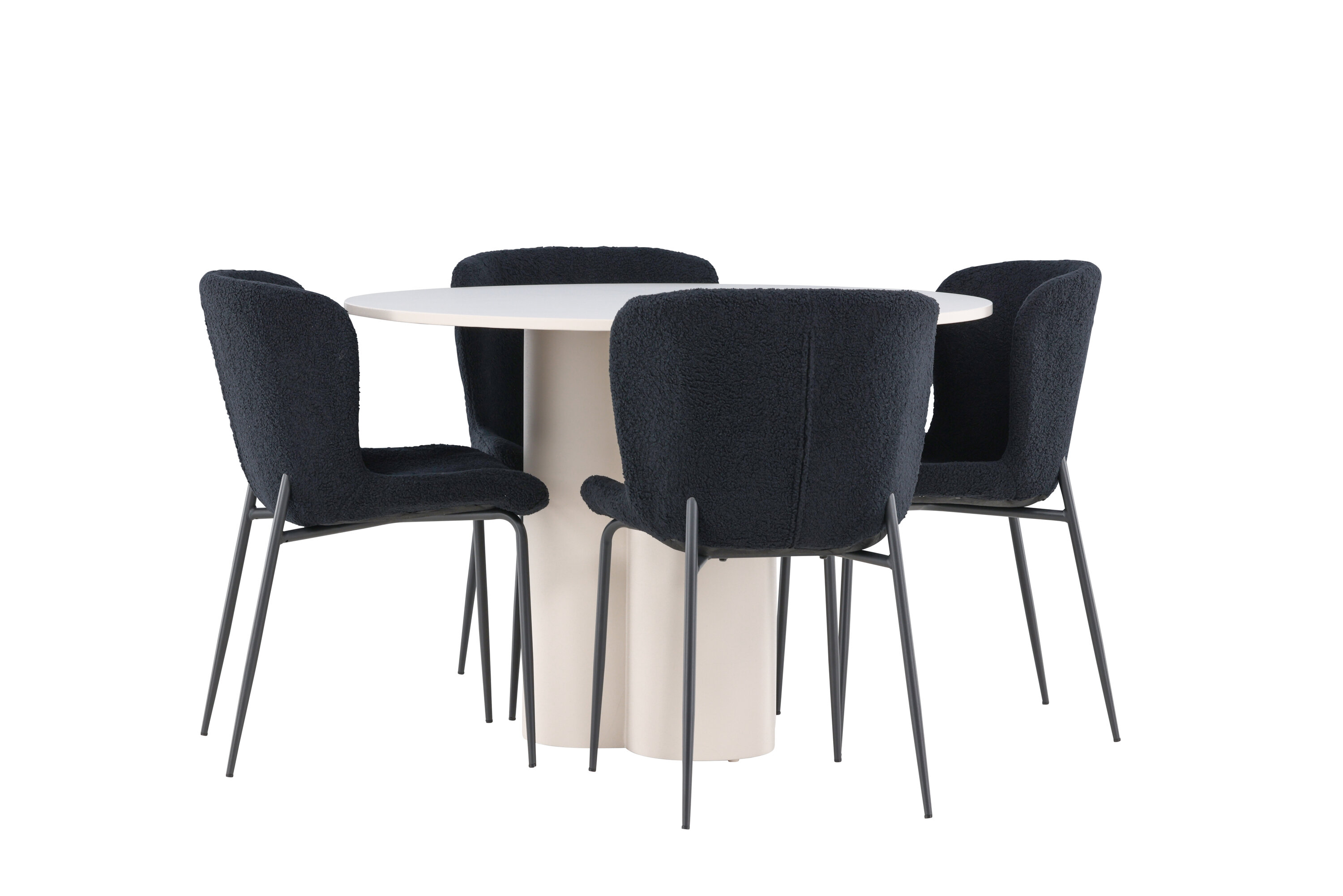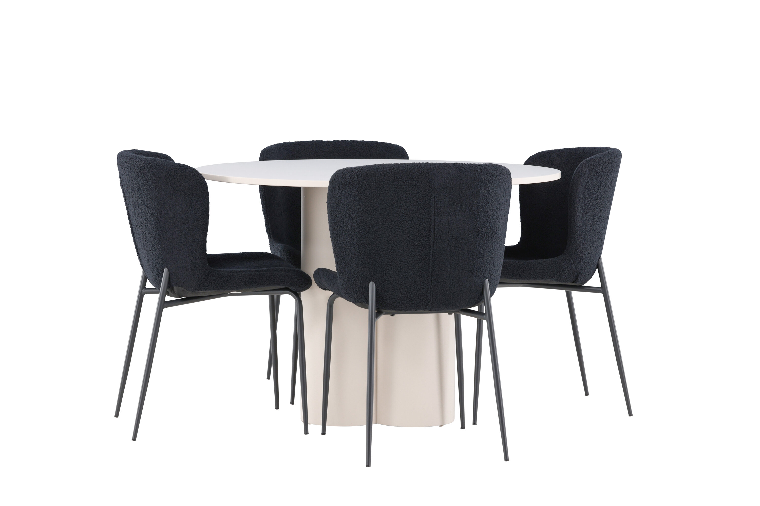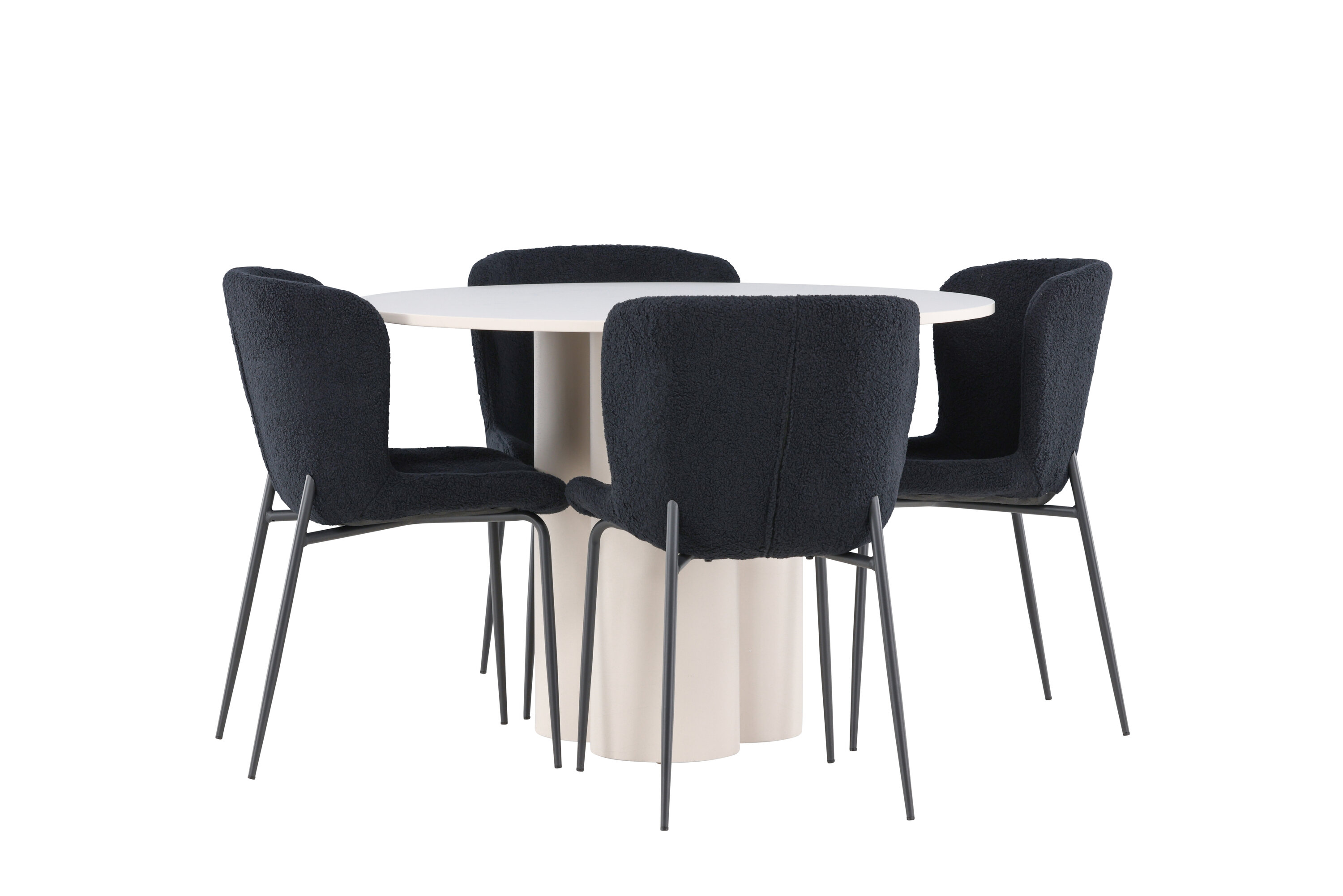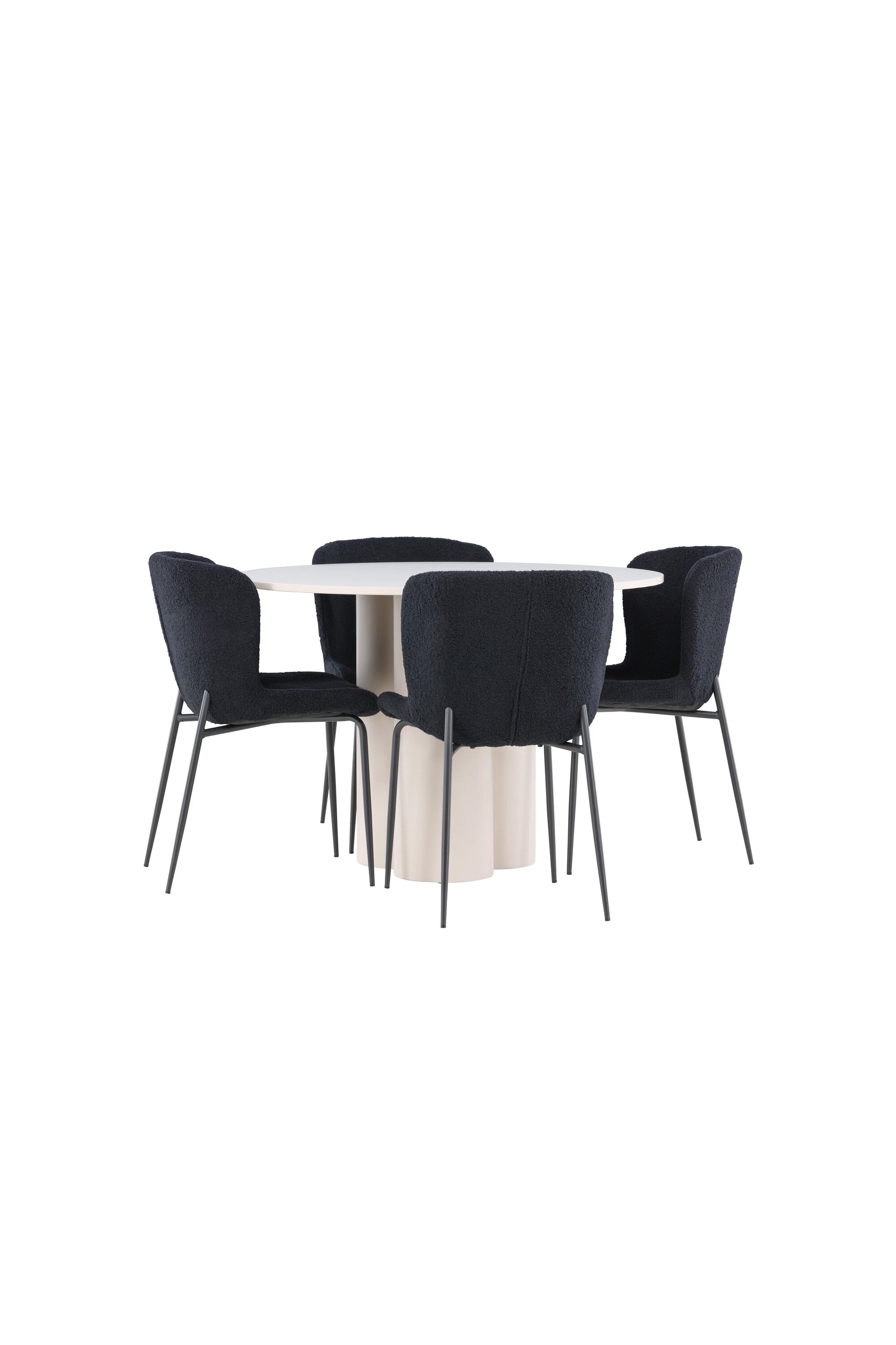 Looge elegantne ja kutsuv söögituba meie keeruka söögigrupiga, mis ühendab Olivia laua elegantsete Modesto toolidega. See söögituba, mis sobib ideaalselt nii igapäevasteks õhtusöökideks kui ka pidulikeks sündmusteks, loob teie söögitoale kaasaegse ja harmoonilise atmosfääri. MDF-st valmistatud Olivia laual on helebeež värv, mis lisab teie söögitoale sooja ja kutsuva tunde. 110 cm läbimõõduga laud pakub rohkelt ruumi söögiks ja vestlusteks, ümar kuju loob aga tasakaalustatud ja sotsiaalse keskkonna. Laua vastupidav konstruktsioon tagab pikaajalise kasutuse ja stabiilsuse. Neli Modesto tooli täiendavad lauda suurepäraselt oma elegantsete musta polüesterkatega kaetud istmetega. Need toolid pakuvad nii mugavust kui ka stiili, muutes need ideaalseks pikaks ja nauditavaks õhtusöögiks pere ja sõpradega. Nende kaasaegne disain koos kõrgete seljatugede ja pehmete istmetega annab teie söögitoale rafineeritud ja kaasaegse ilme. See söögituba on ideaalne kombinatsioon esteetikast ja funktsionaalsusest, mistõttu on see suurepärane valik neile, kes otsivad elegantset ja mugavat söögituba. Täiustage oma söögituba Olivia laua ja Modesto toolide kombinatsiooniga ning looge koht, kus jagatakse mälestusi ja rõõmu.