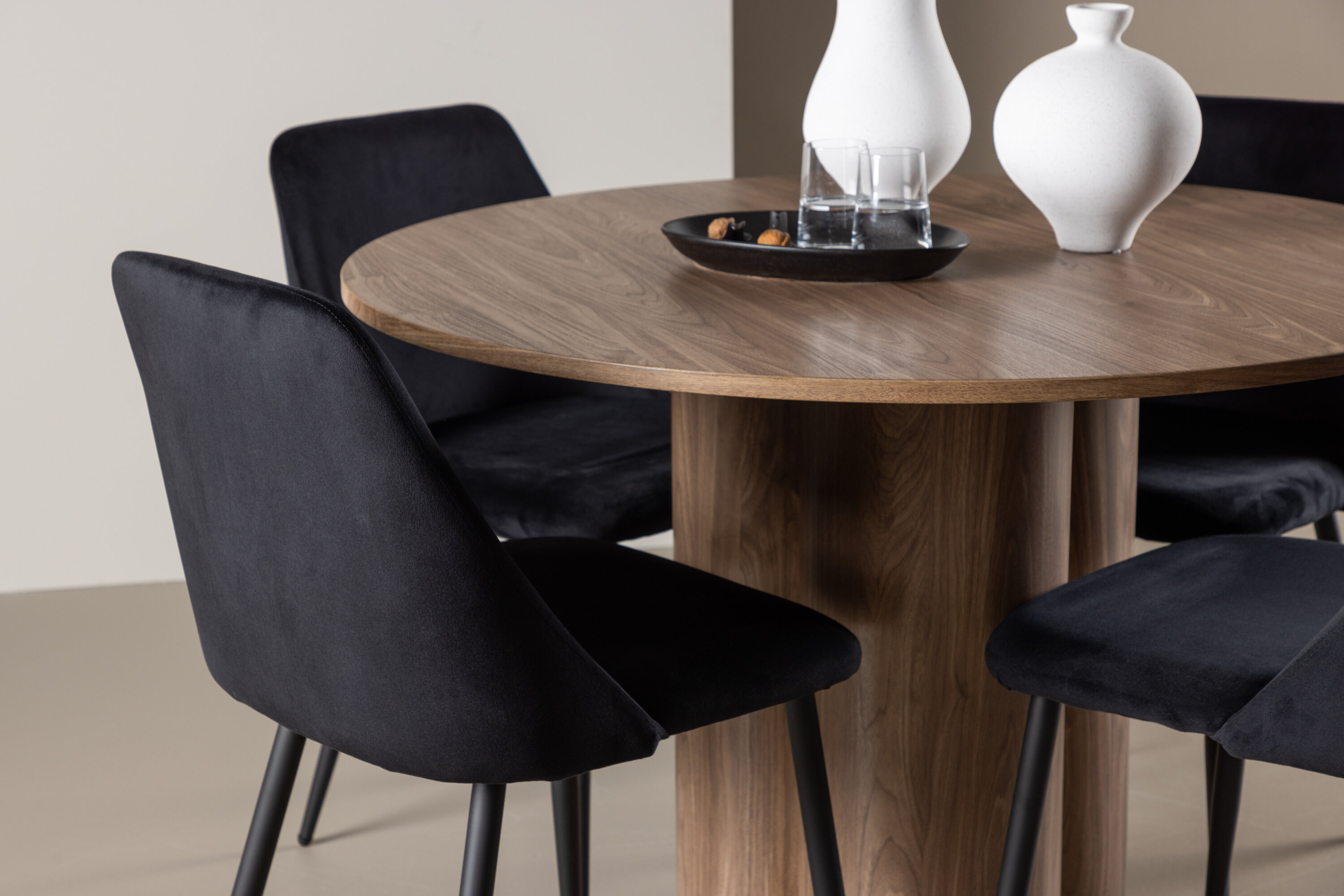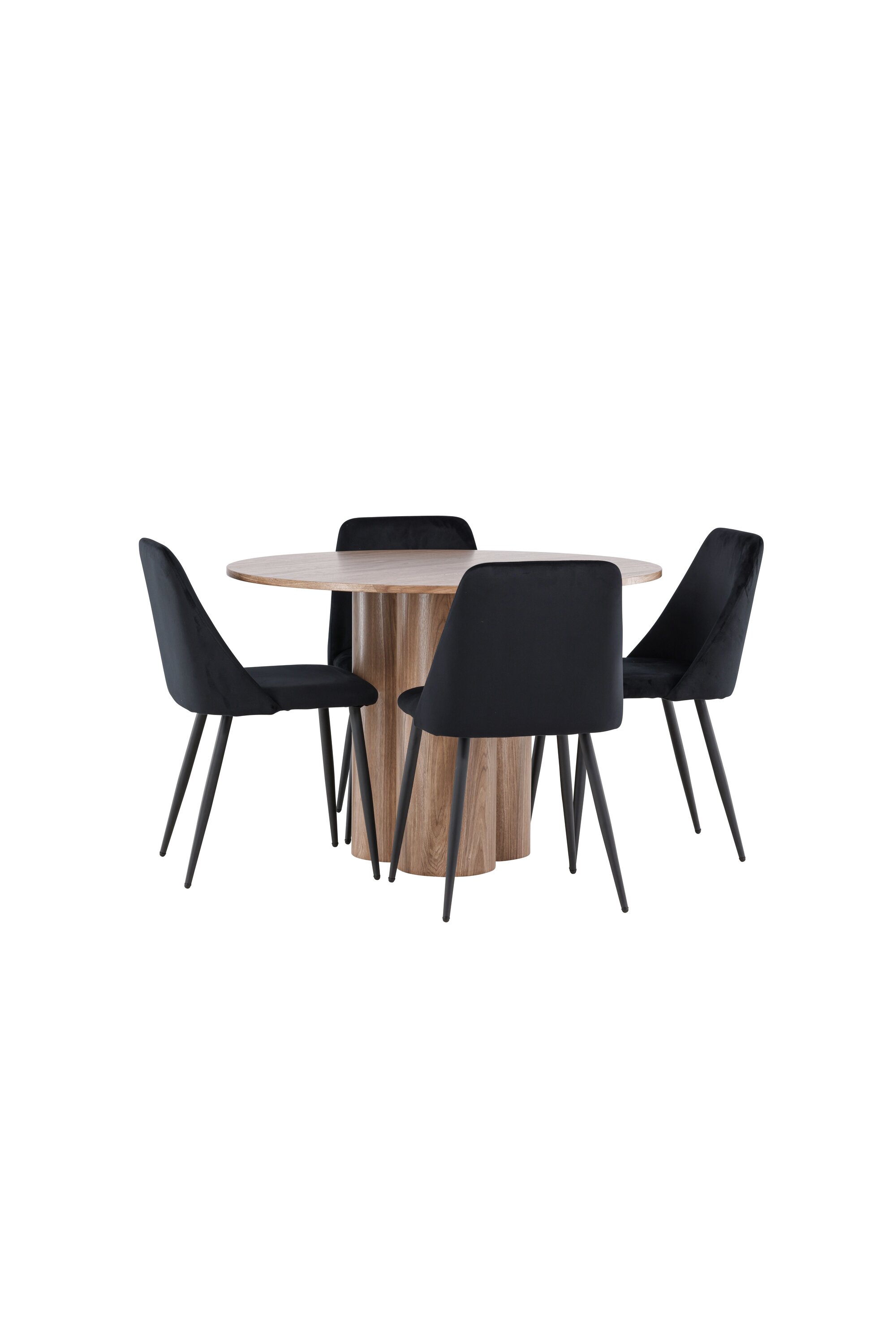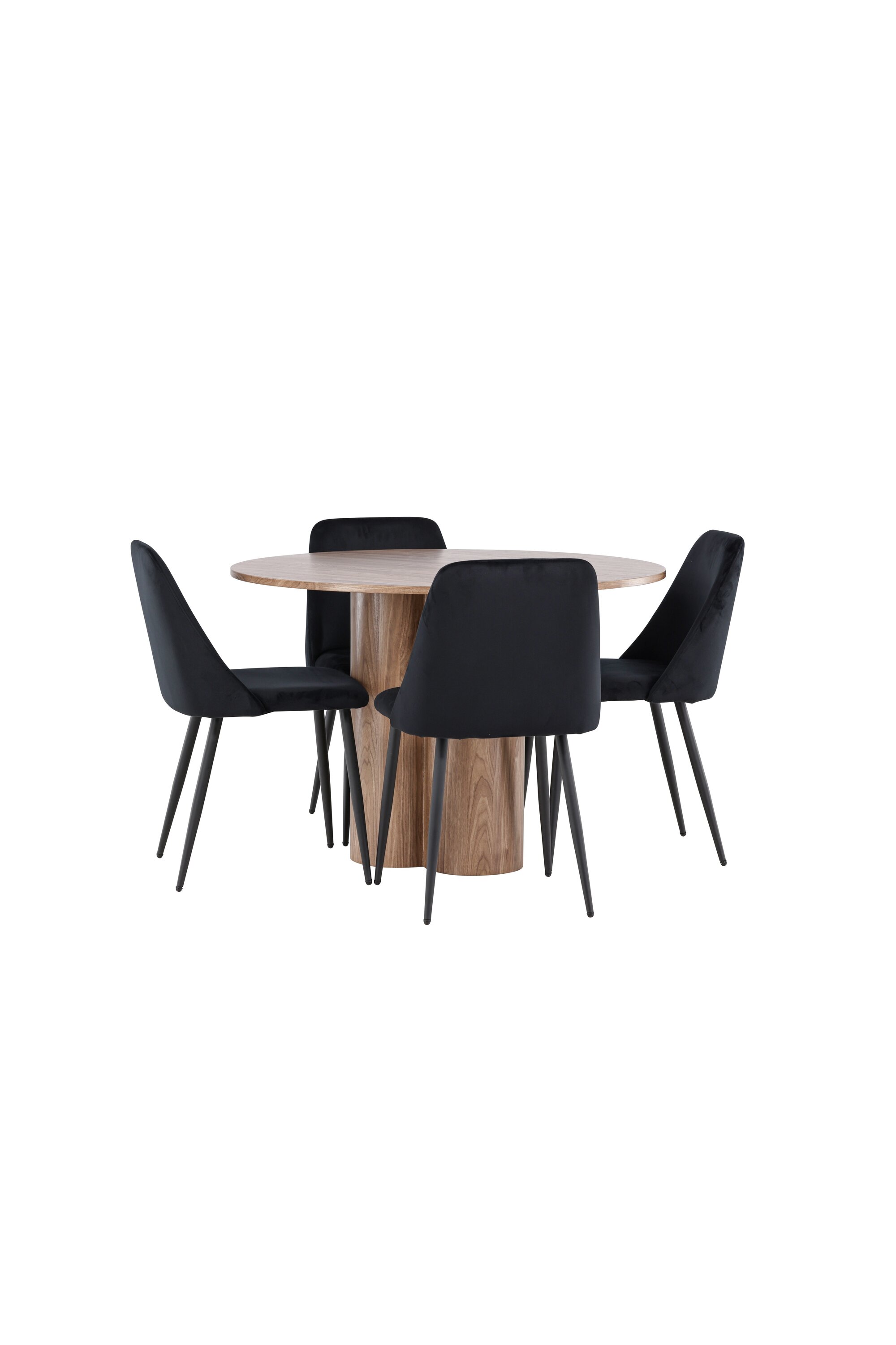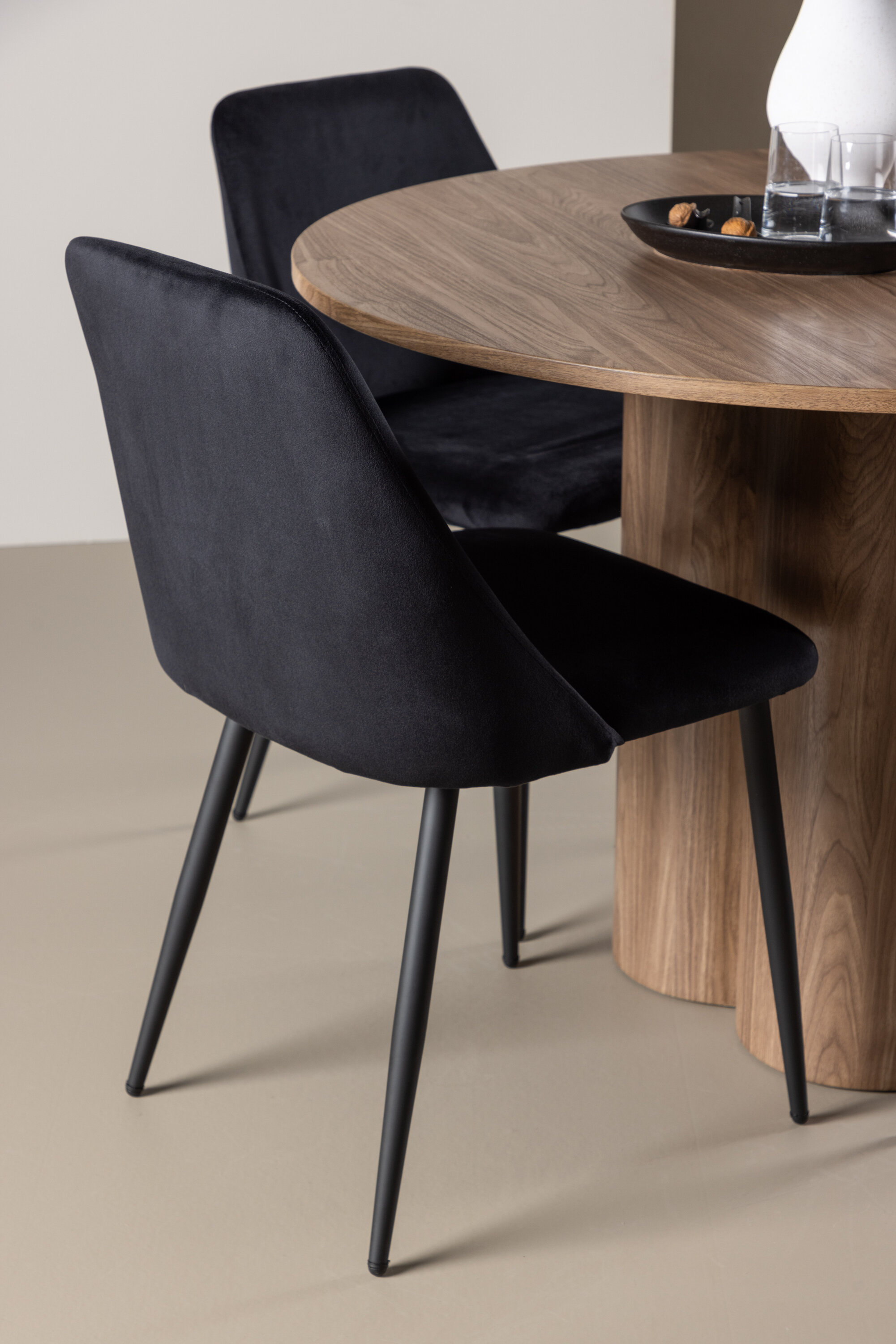 Uuendage oma söögituba keeruka söögikomplektiga, mis sisaldab Olivia lauda ja öötoole. See elegantne moodsa disaini ja luksuslike materjalide kombinatsioon loob ideaalse keskkonna nii igapäevasteks söögikordadeks kui ka pidulikeks sündmusteks. Olivia laud on stiilne ja ajatu lisand teie kodule. Mokavärvi ja MDF-konstruktsiooniga laud jätab sooja ja kutsuva mulje. Lauaplaadi läbimõõt on 110 cm, pakkudes piisavalt ruumi nelja inimese mugavaks istumiseks, olles samas piisavalt kompaktne, et mahutada väiksematesse ruumidesse. Olivia laud seisab tugeval alusel stabiilselt ja seda on lihtne puhastada, muutes selle nii praktiliseks kui ka elegantseks. Öötoolid täiendavad Olivia lauda oma luksusliku disainiga. Need toolid on polsterdatud musta sametiga, pakkudes eksklusiivset ja mugavat istumiskogemust. Pehme samet koos laua mokatooniga loob teie söögituppa harmoonilise ja elegantse atmosfääri. Öötoolid on disainitud nii esteetikat kui ka mugavust silmas pidades, mistõttu on need ideaalsed pikkadeks ja nauditavateks õhtusöökideks. Olivia söögikomplekti ja öötoolidega saate tervikliku söögitoa, mis ühendab funktsionaalsuse elegantse disainiga. Sellest söögikomplektist saab kahtlemata teie kodu keskne punkt, kuhu pere ja sõbrad saavad koguneda veetlevate einete ja meeldiva seltskonna nautimiseks.