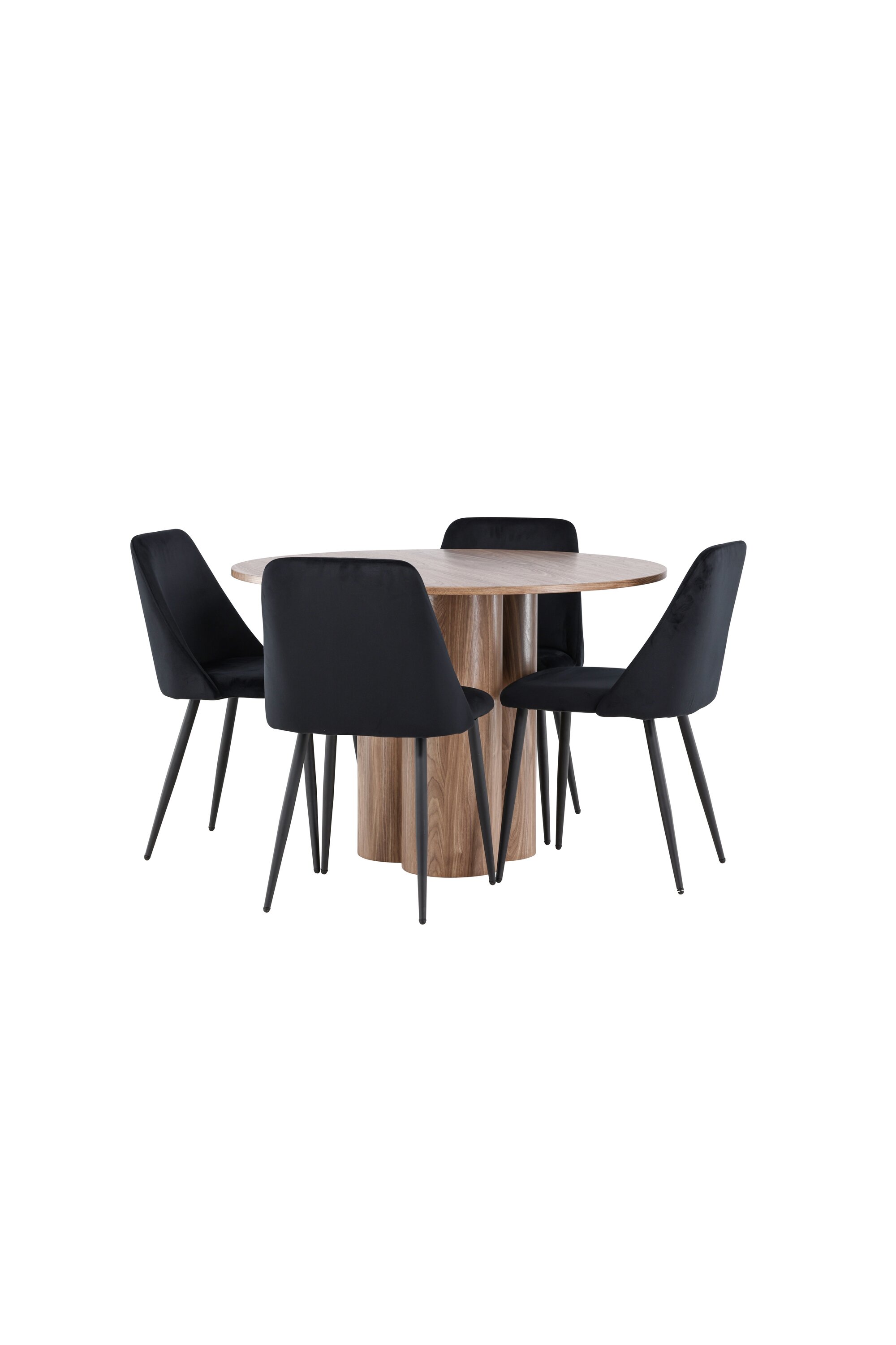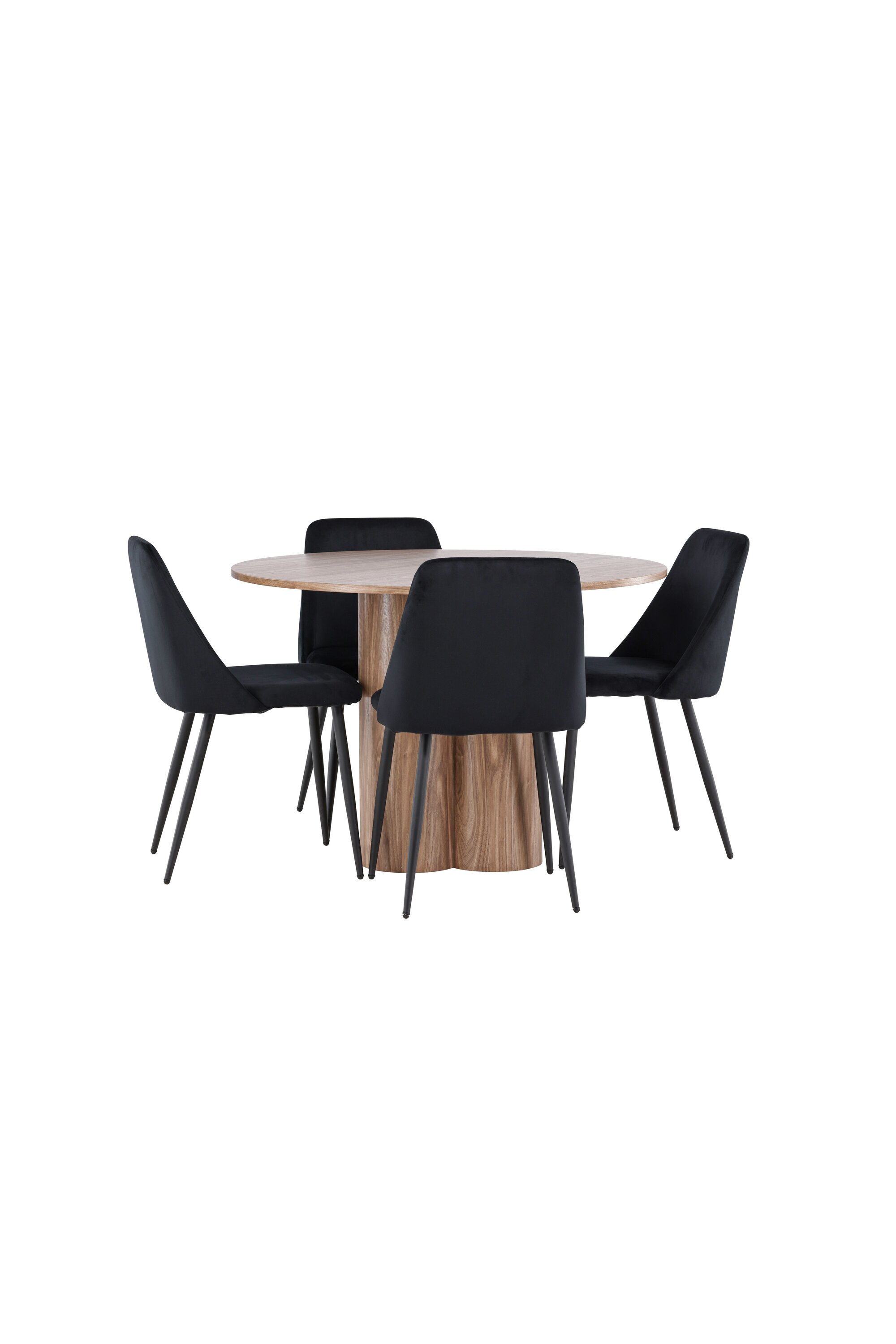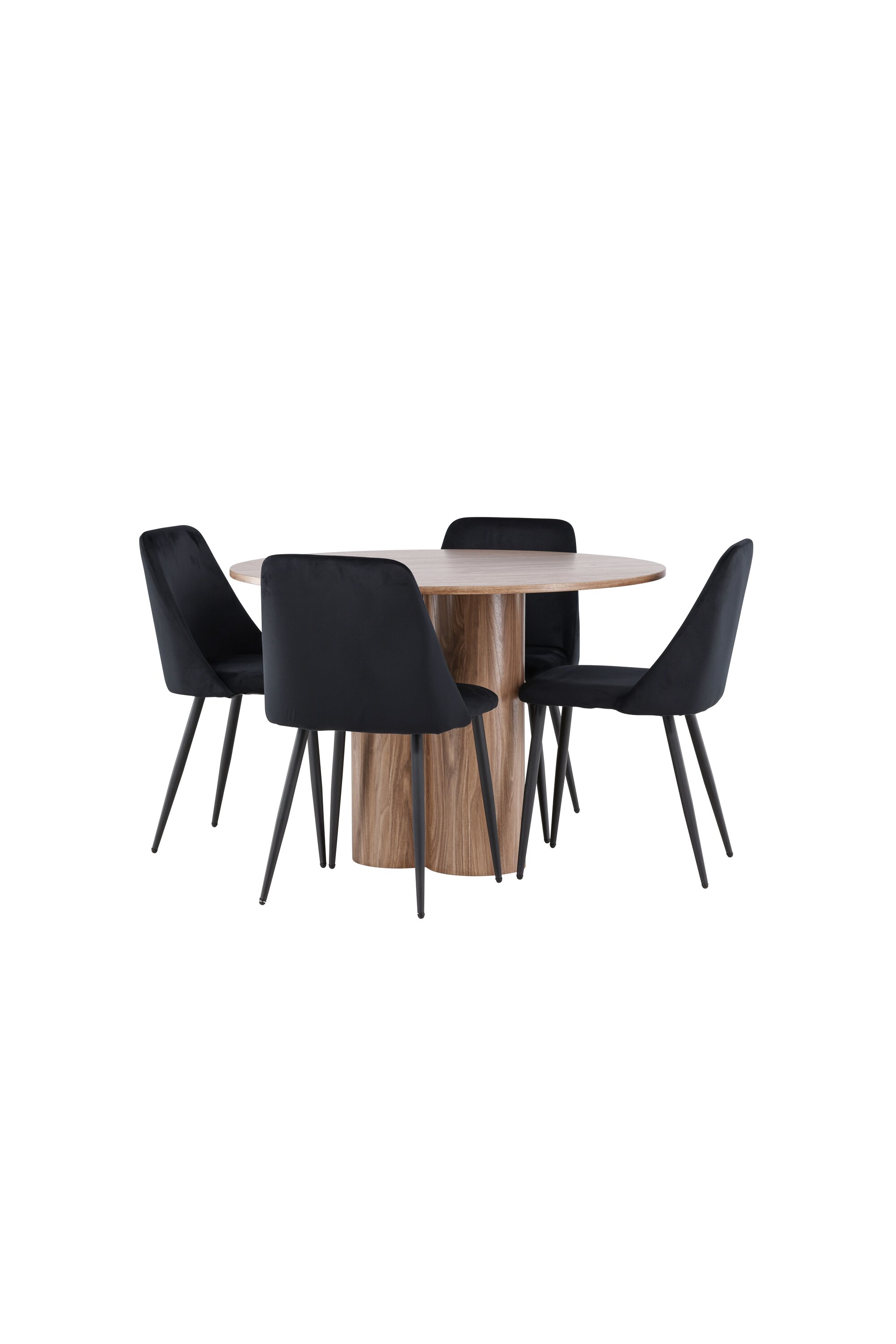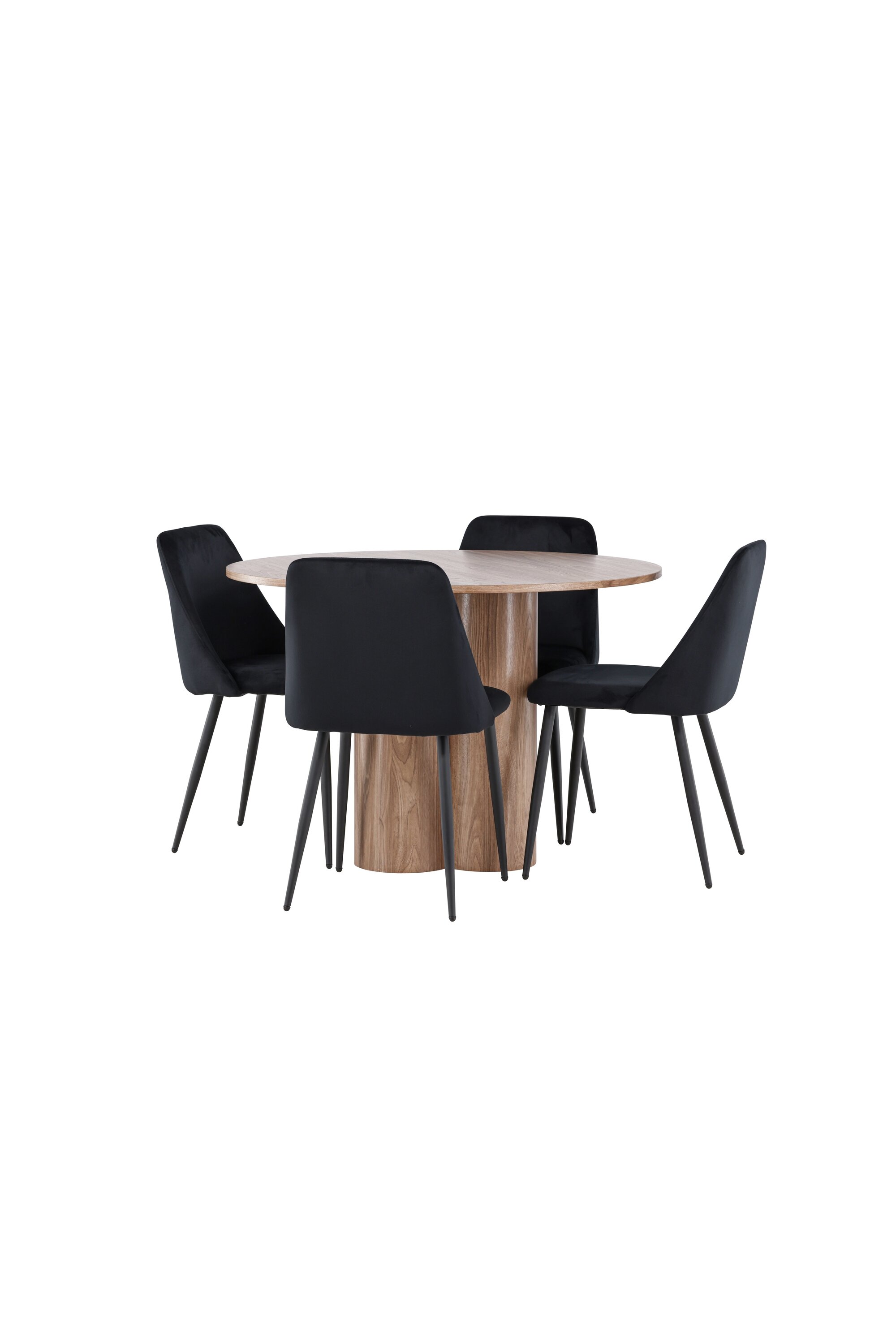 Uuendage oma söögituba keeruka söögikomplektiga, mis sisaldab Olivia lauda ja öötoole. See elegantne moodsa disaini ja luksuslike materjalide kombinatsioon loob ideaalse keskkonna nii igapäevasteks söögikordadeks kui ka pidulikeks sündmusteks. Olivia laud on stiilne ja ajatu lisand teie kodule. Mokavärvi ja MDF-konstruktsiooniga laud jätab sooja ja kutsuva mulje. Lauaplaadi läbimõõt on 110 cm, pakkudes piisavalt ruumi nelja inimese mugavaks istumiseks, olles samas piisavalt kompaktne, et mahutada väiksematesse ruumidesse. Olivia laud seisab tugeval alusel stabiilselt ja seda on lihtne puhastada, muutes selle nii praktiliseks kui ka elegantseks. Öötoolid täiendavad Olivia lauda oma luksusliku disainiga. Need toolid on polsterdatud musta sametiga, pakkudes eksklusiivset ja mugavat istumiskogemust. Pehme samet koos laua mokatooniga loob teie söögituppa harmoonilise ja elegantse atmosfääri. Öötoolid on disainitud nii esteetikat kui ka mugavust silmas pidades, mistõttu on need ideaalsed pikkadeks ja nauditavateks õhtusöökideks. Olivia söögikomplekti ja öötoolidega saate tervikliku söögitoa, mis ühendab funktsionaalsuse elegantse disainiga. Sellest söögikomplektist saab kahtlemata teie kodu keskne punkt, kuhu pere ja sõbrad saavad koguneda veetlevate einete ja meeldiva seltskonna nautimiseks.